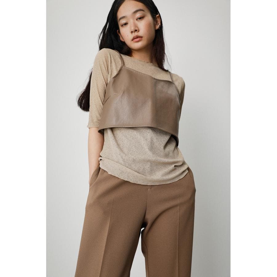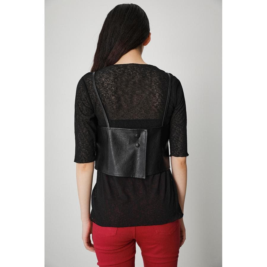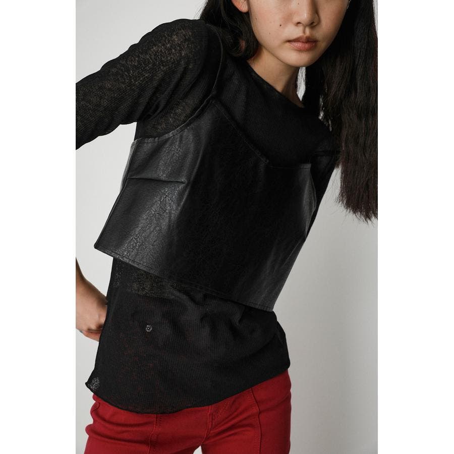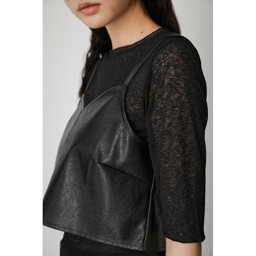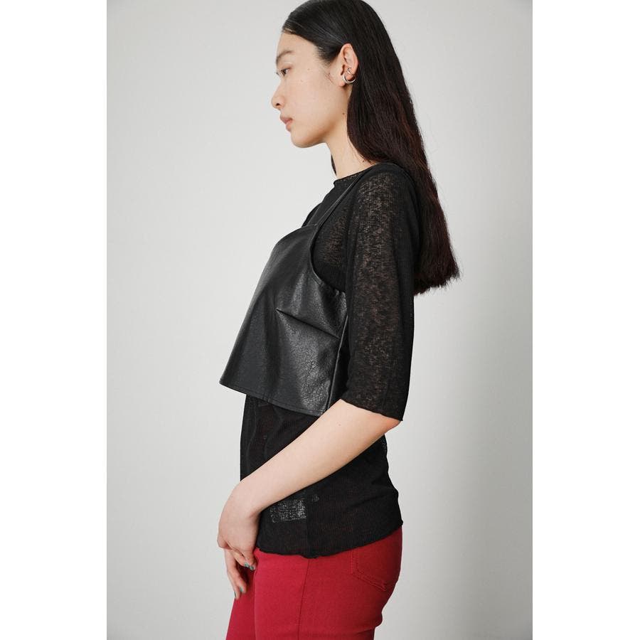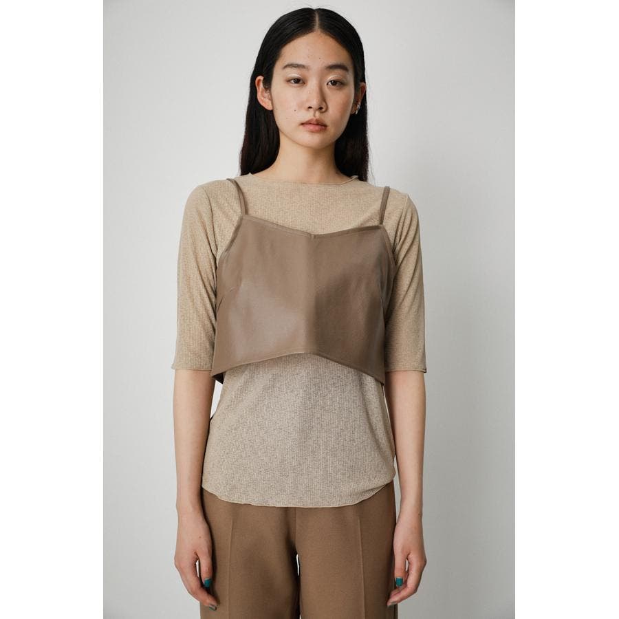 ・表面感のあるシアーなリブカットソーと、合皮のビスチェセットです。