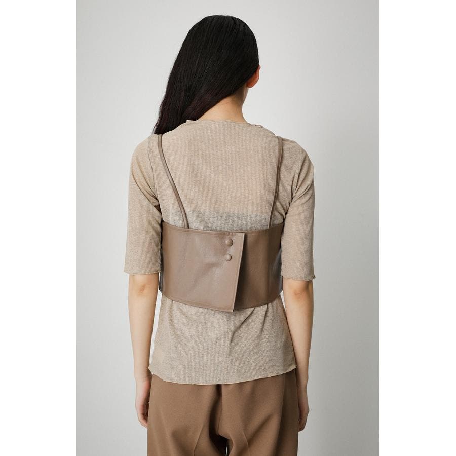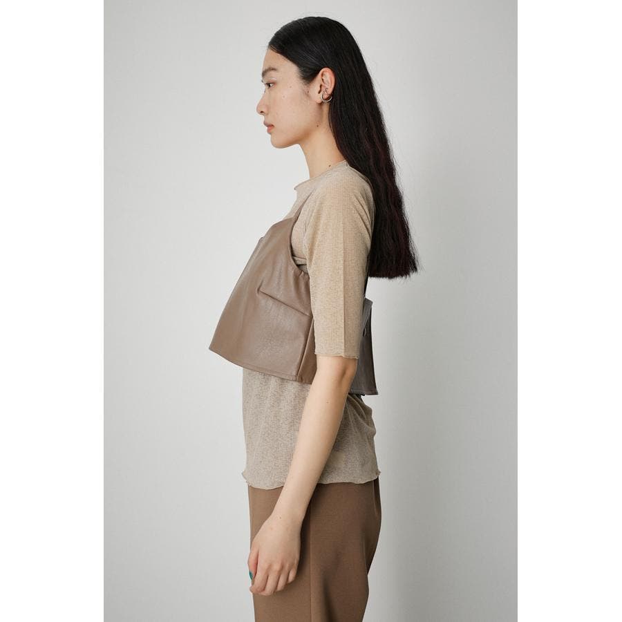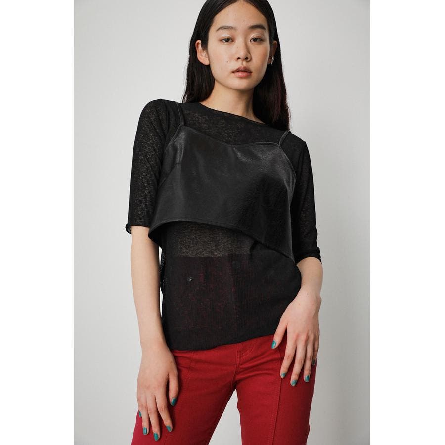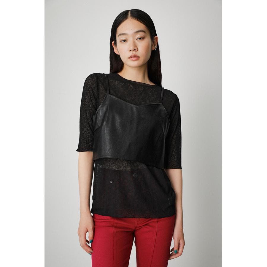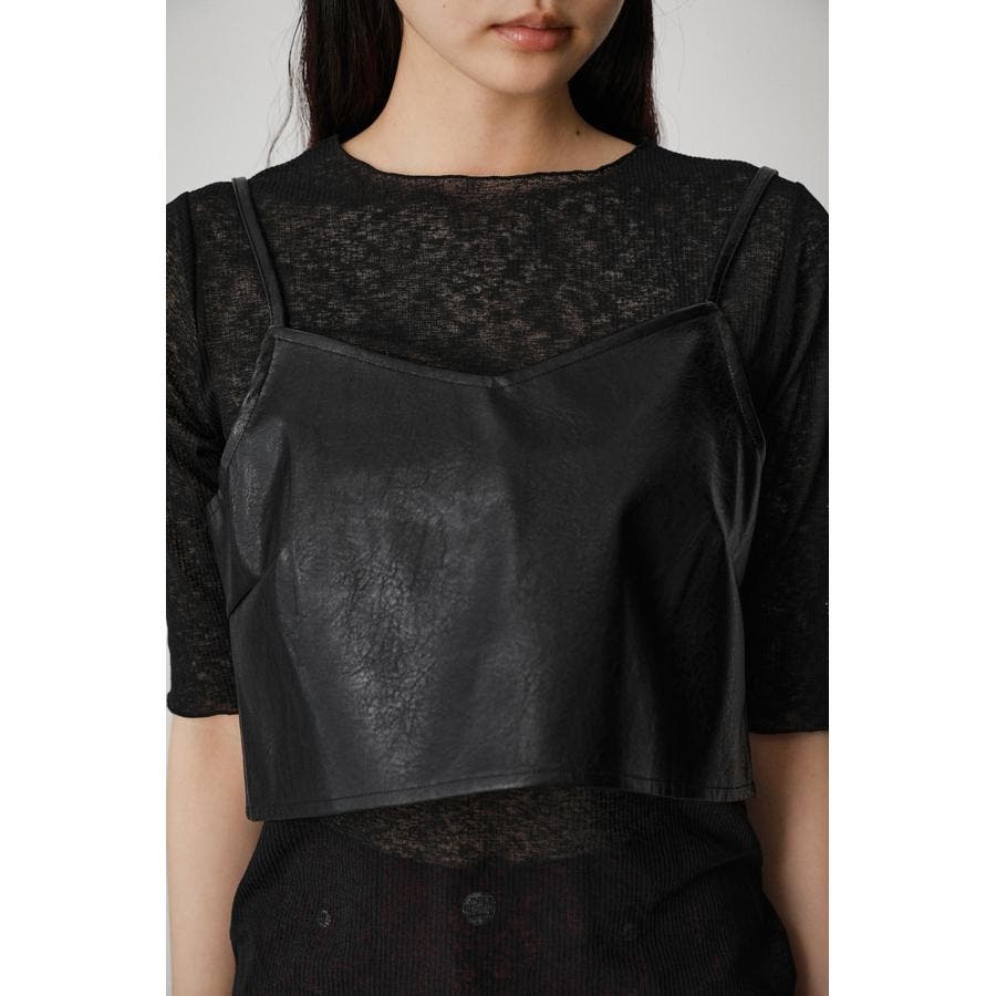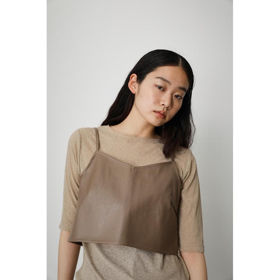 ・表面感のあるシアーなリブカットソーと、合皮のビスチェセットです。