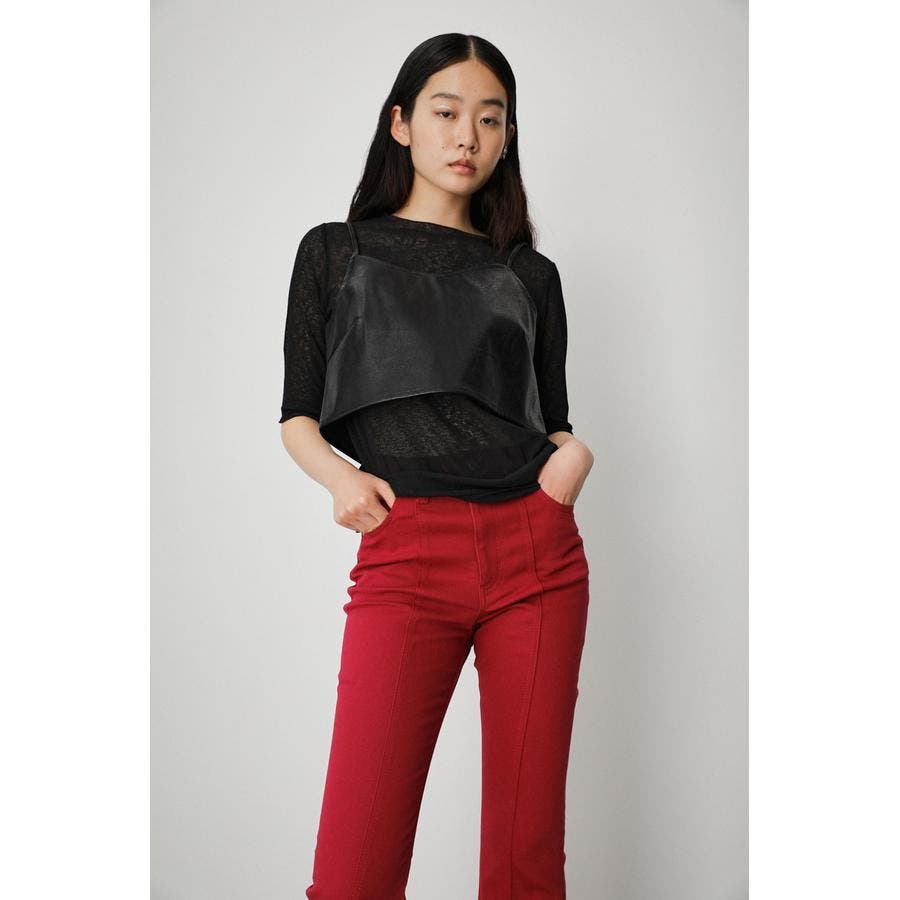 ・トレンドのシアートップスは合議素材のアイテムとレイヤードすることでぐっとクールさプラスしトレンドライクな印象に仕上げます。