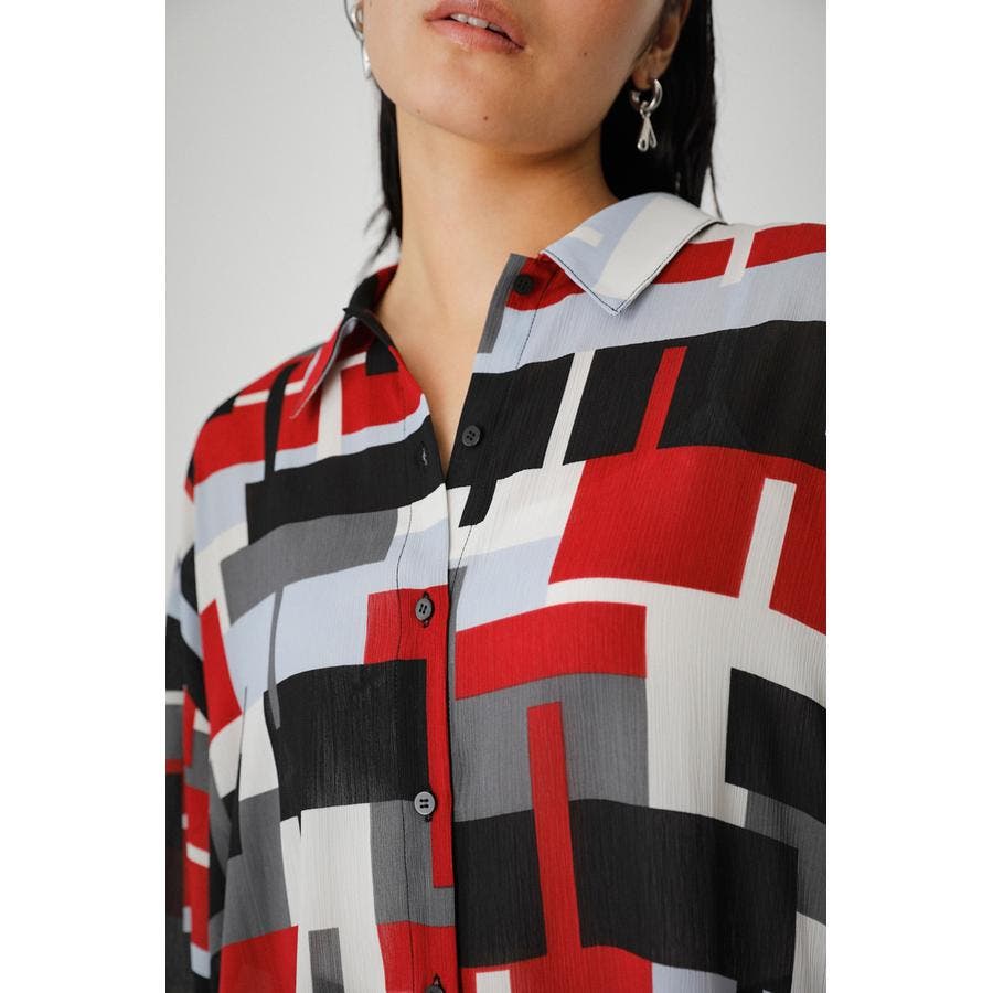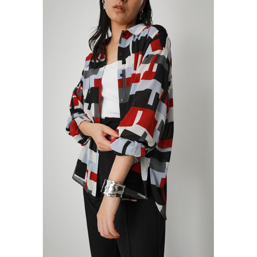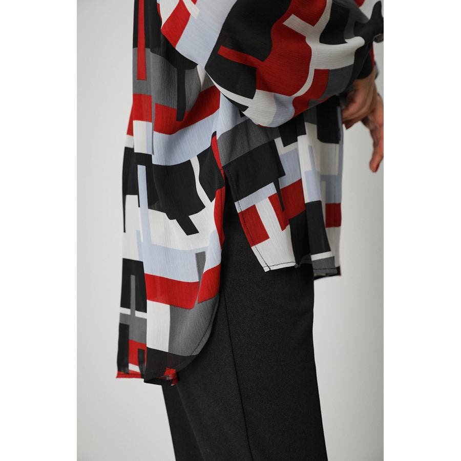 ・ポリエステルの楊柳素材にプリントを施していて、オリジナルの幾何学柄で見た目のインパクトがあります。
