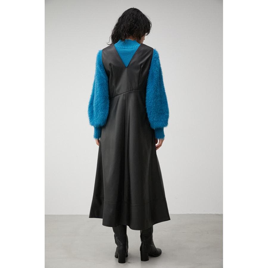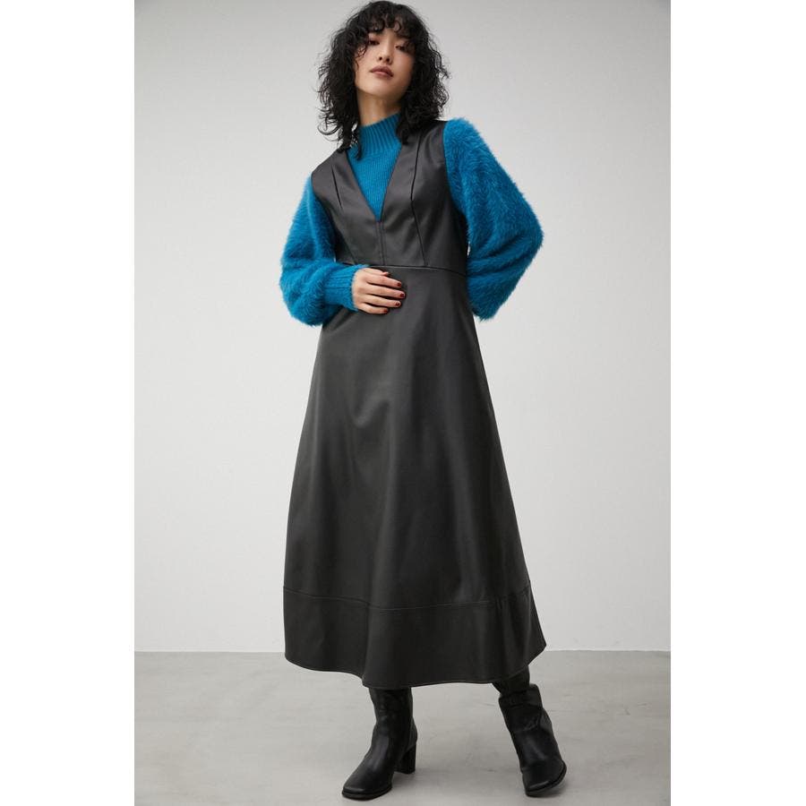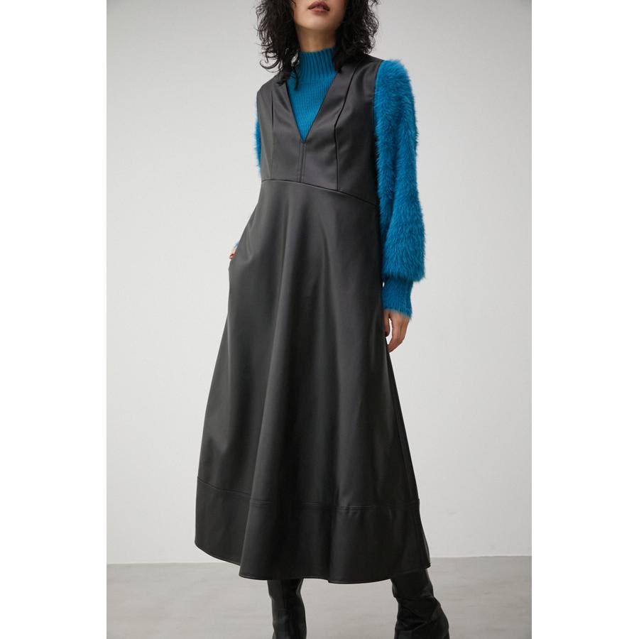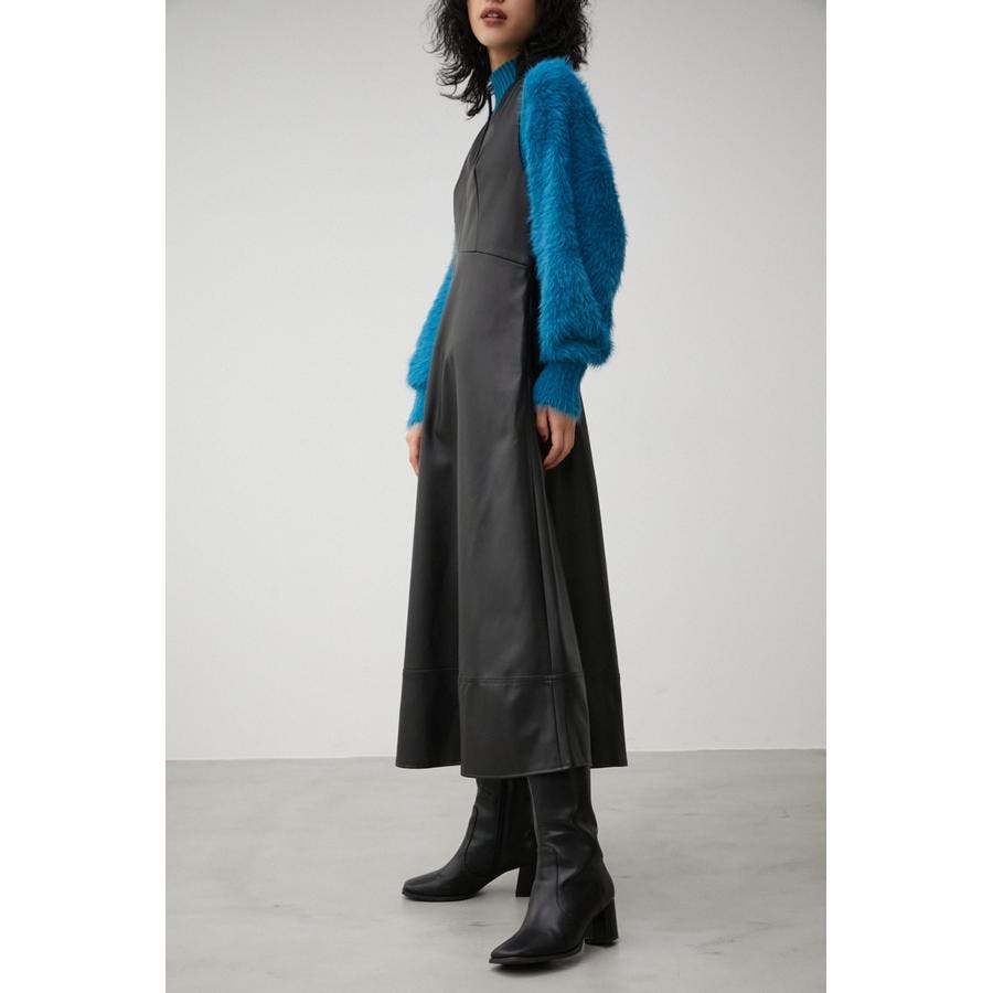 ・フェイクレザーのフレアワンピースです。
