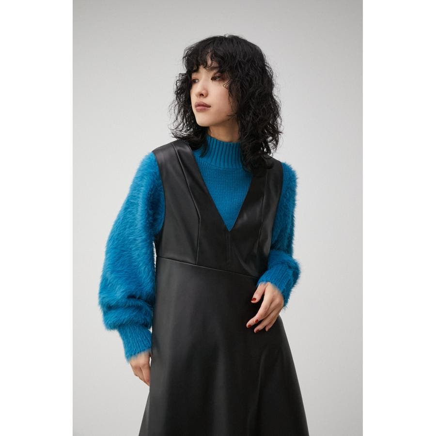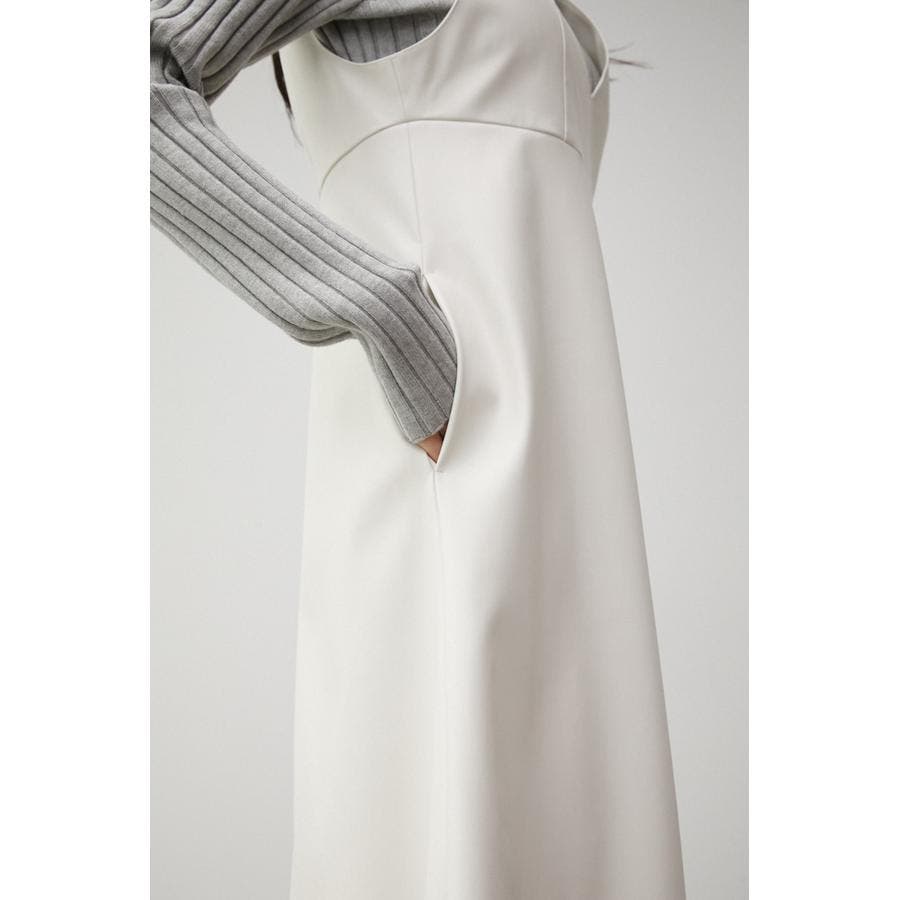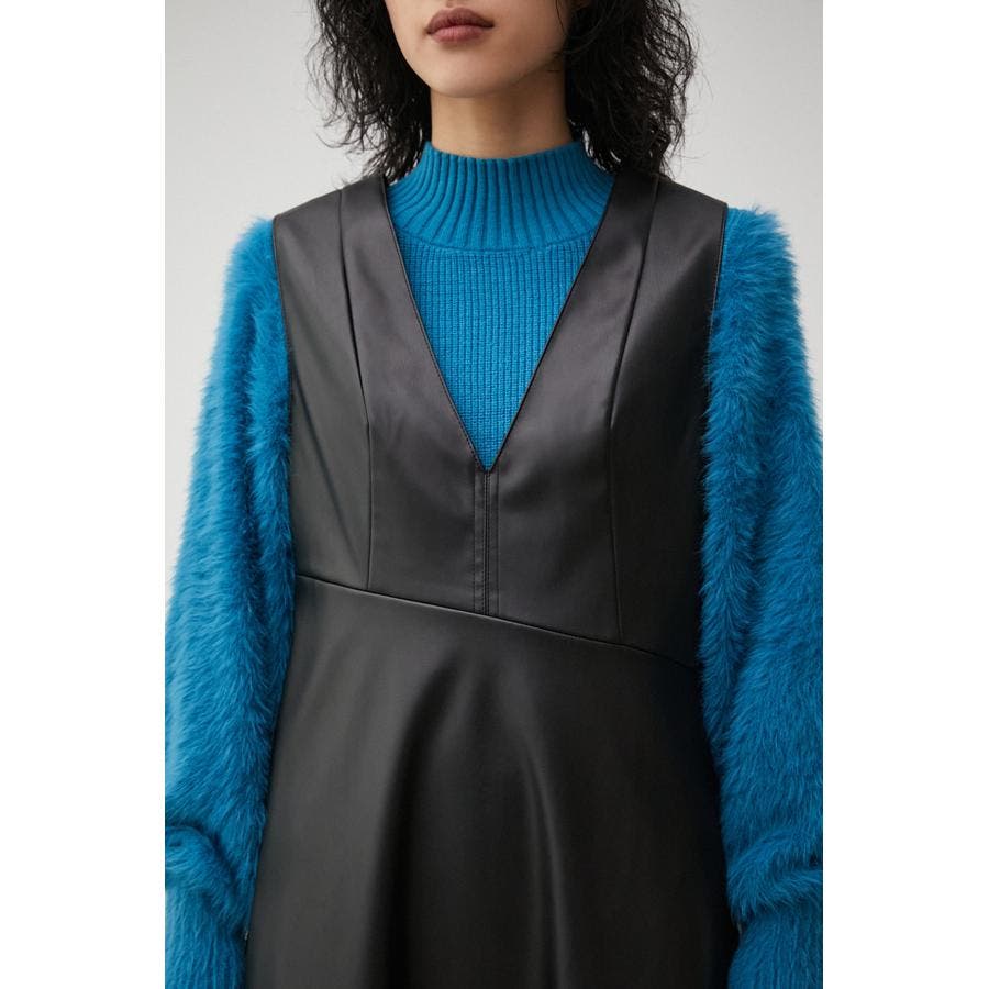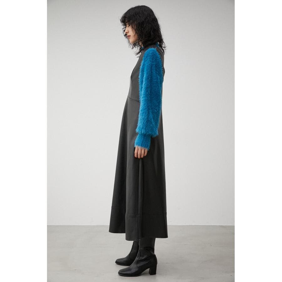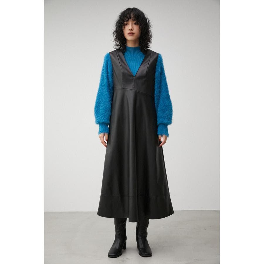 ・フェイクレザーのフレアワンピースです。