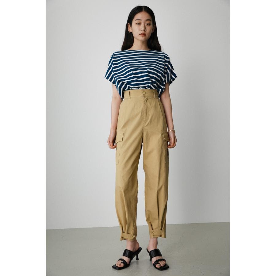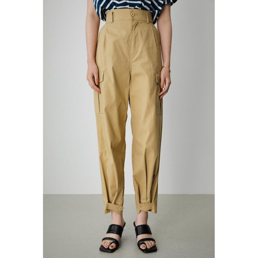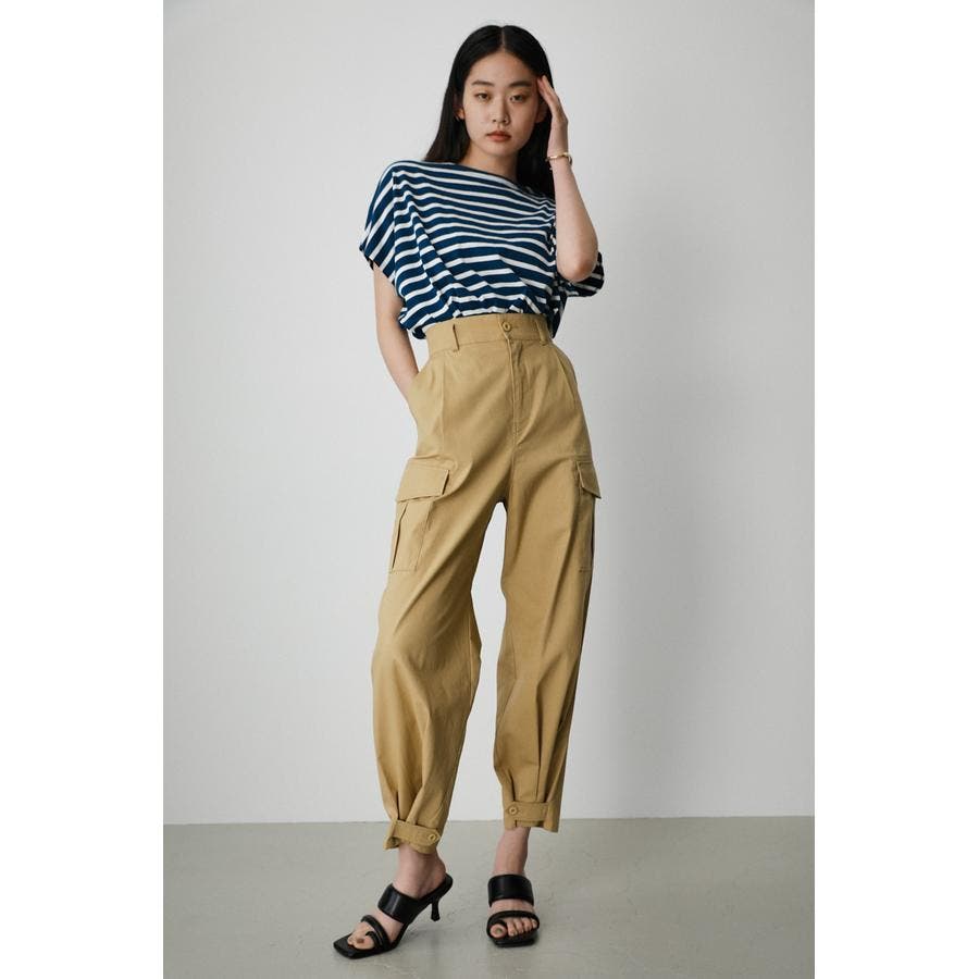 ハイウエストで裾も絞れるためミリタリー感が出にくく綺麗めに履けるカーゴです。生地もサラッとした綿で厚すぎないので真冬以外は履けそう。