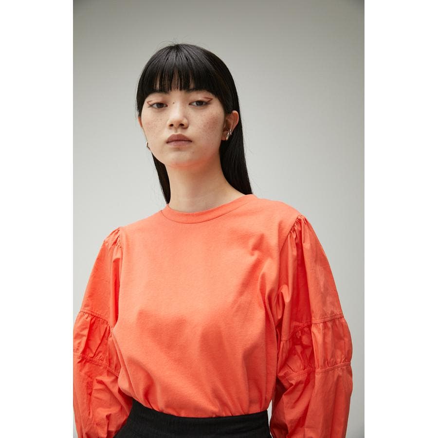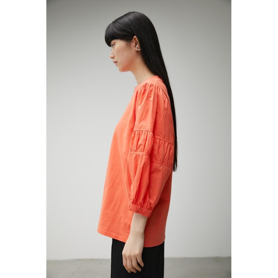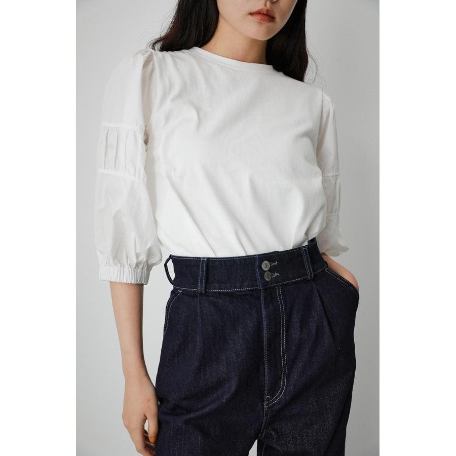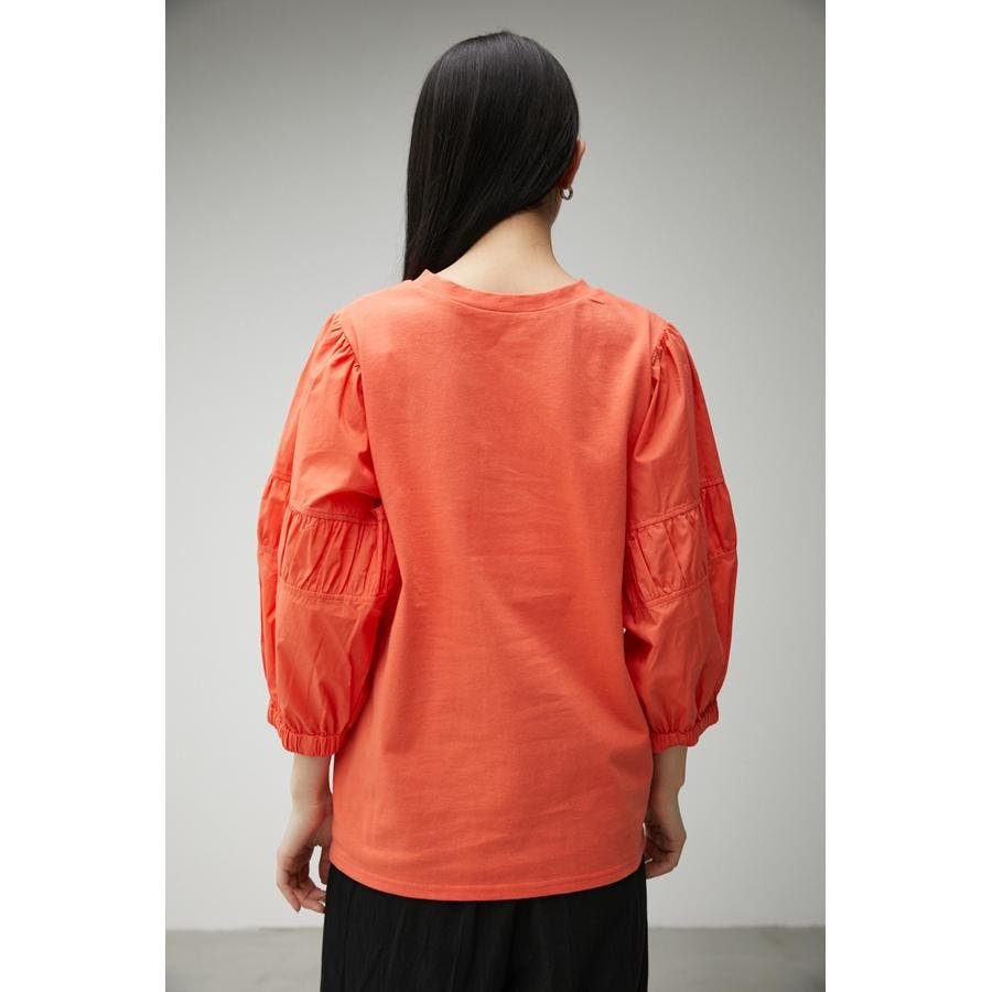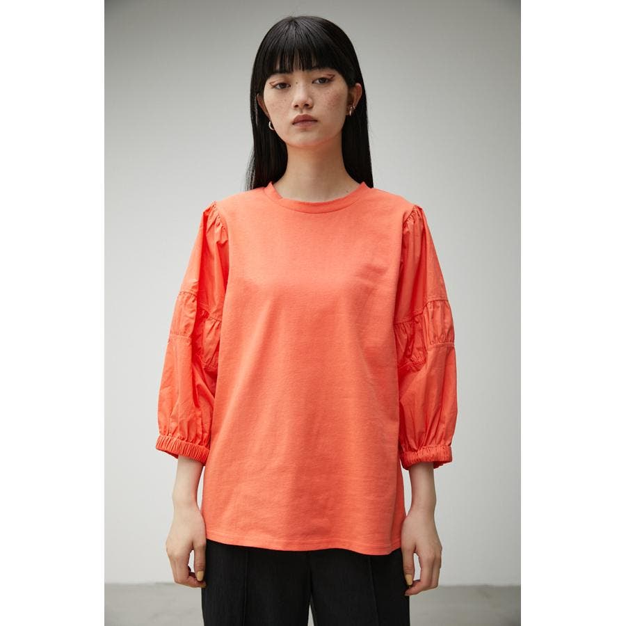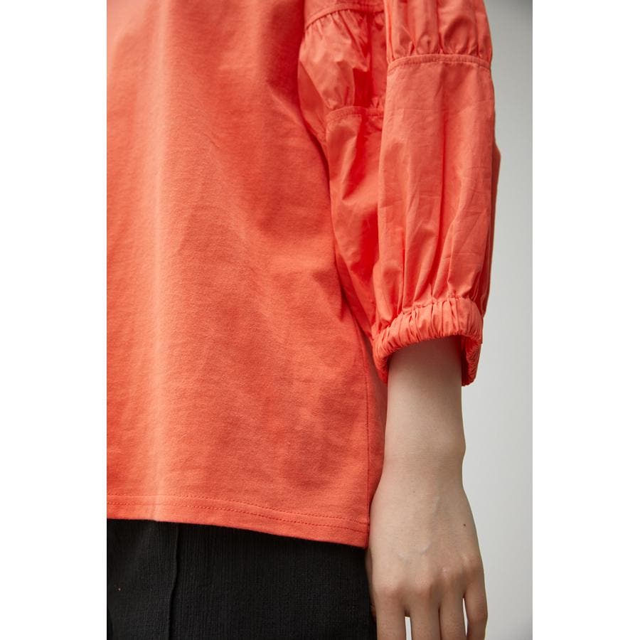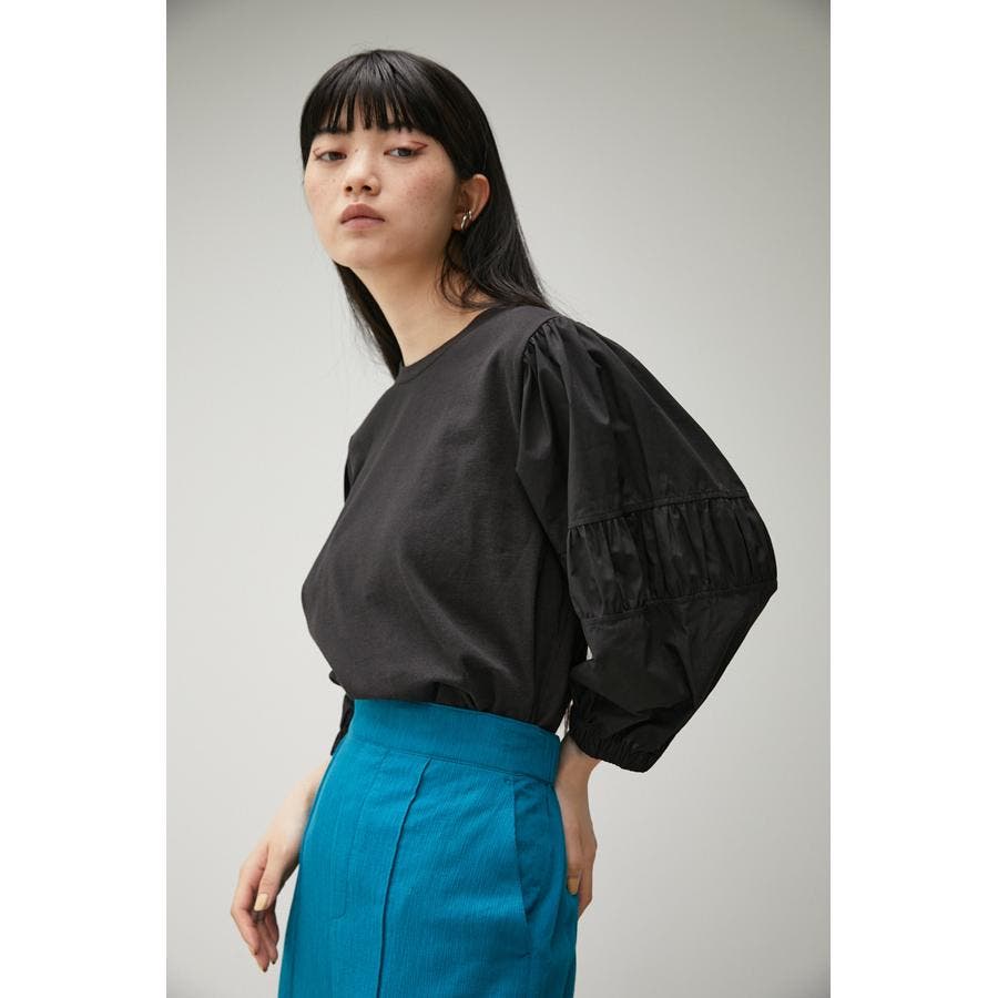 ・袖は布帛素材、ボディー部分はカットソーのドッキングのトップスになっています。