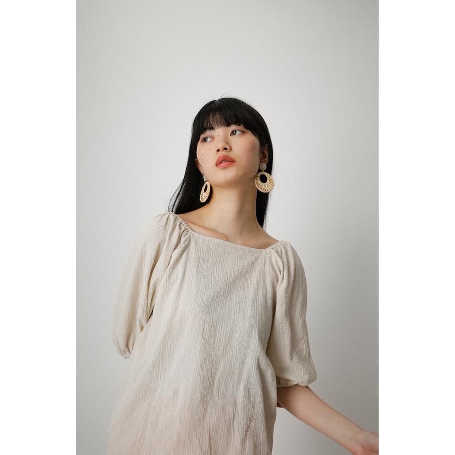 ・綺麗にデコルテを見せてくれるネックデザインと、袖のボリュームデザインでメリハリのある女性らしい印象に仕上げてくれます。