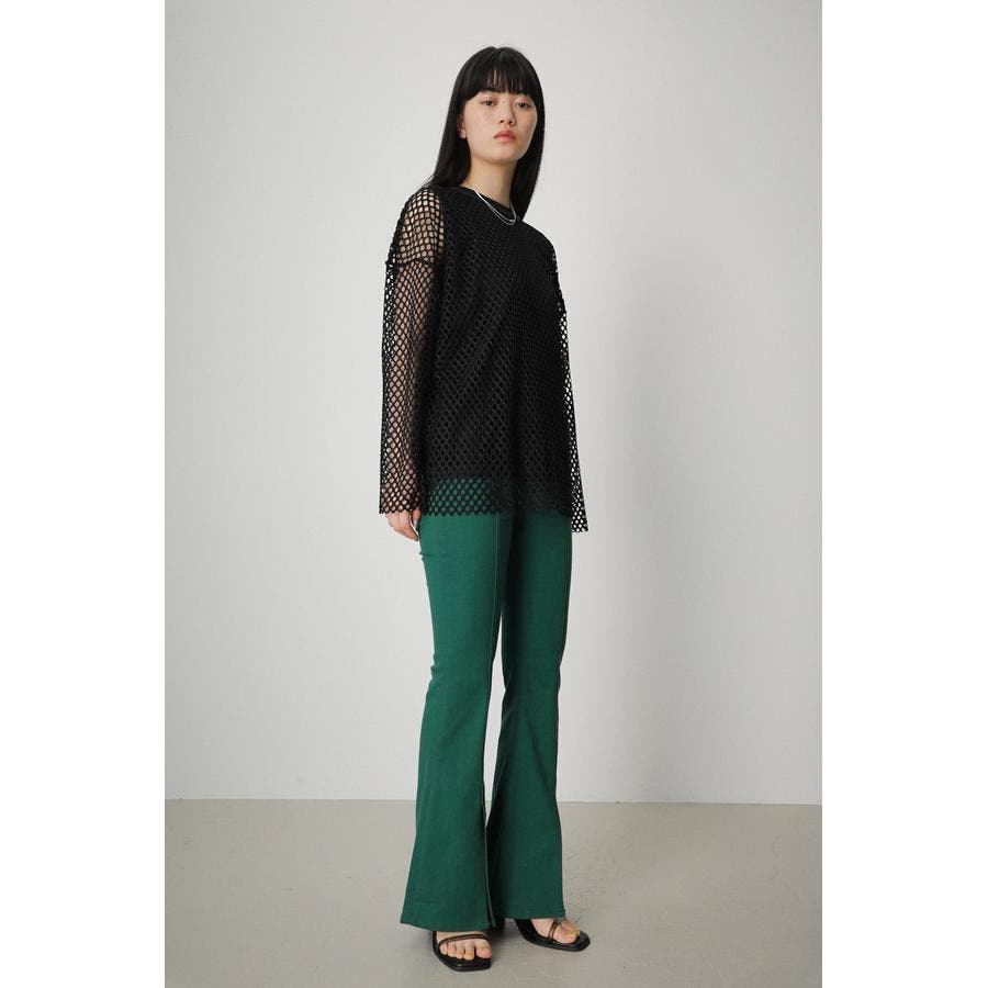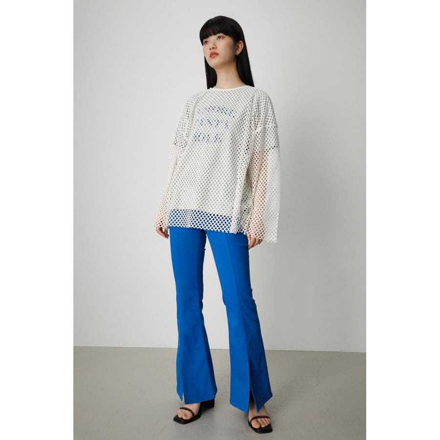 ・メッシュトップスと合わせてトレンドライクなスタイルに。
