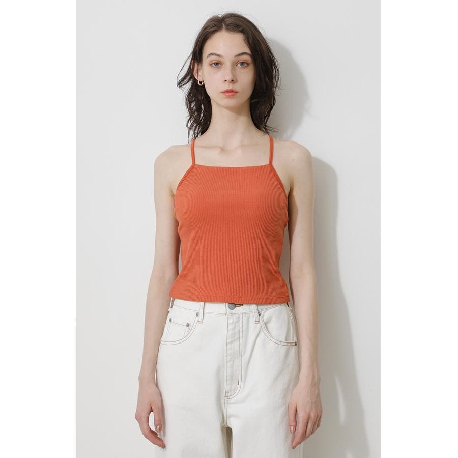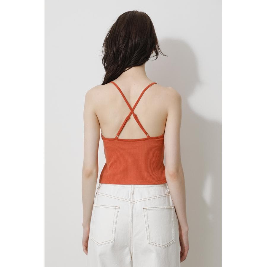 ・トレンドのキャミのフロント部分が高めに設定されたバッククロスデザインのキャミソール。