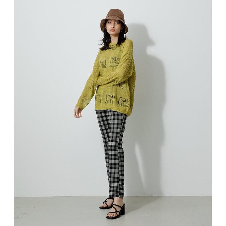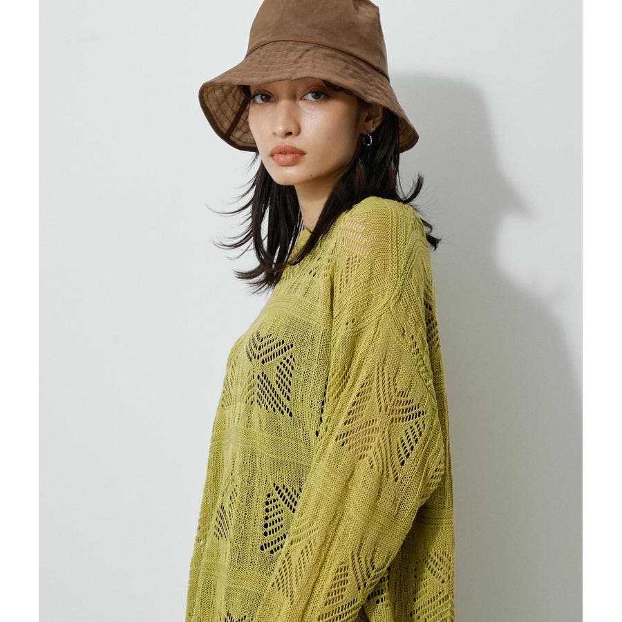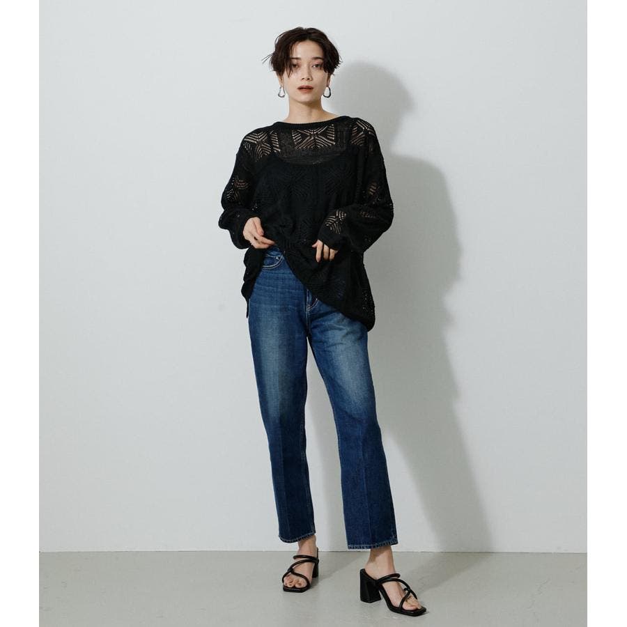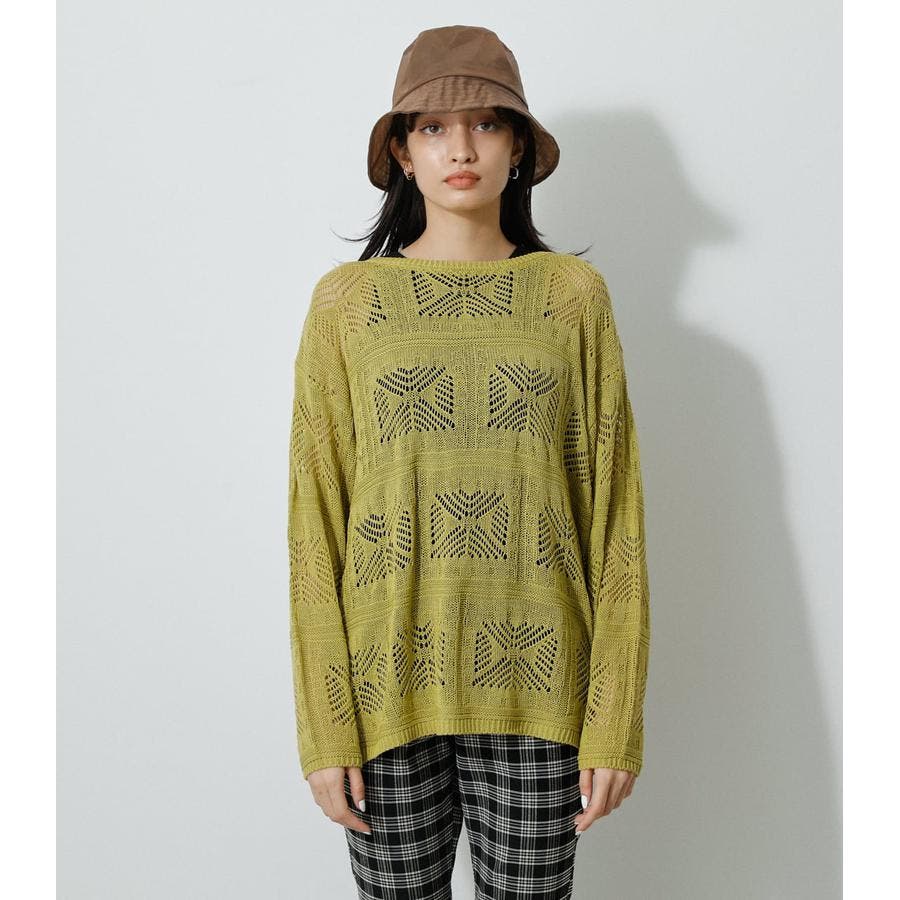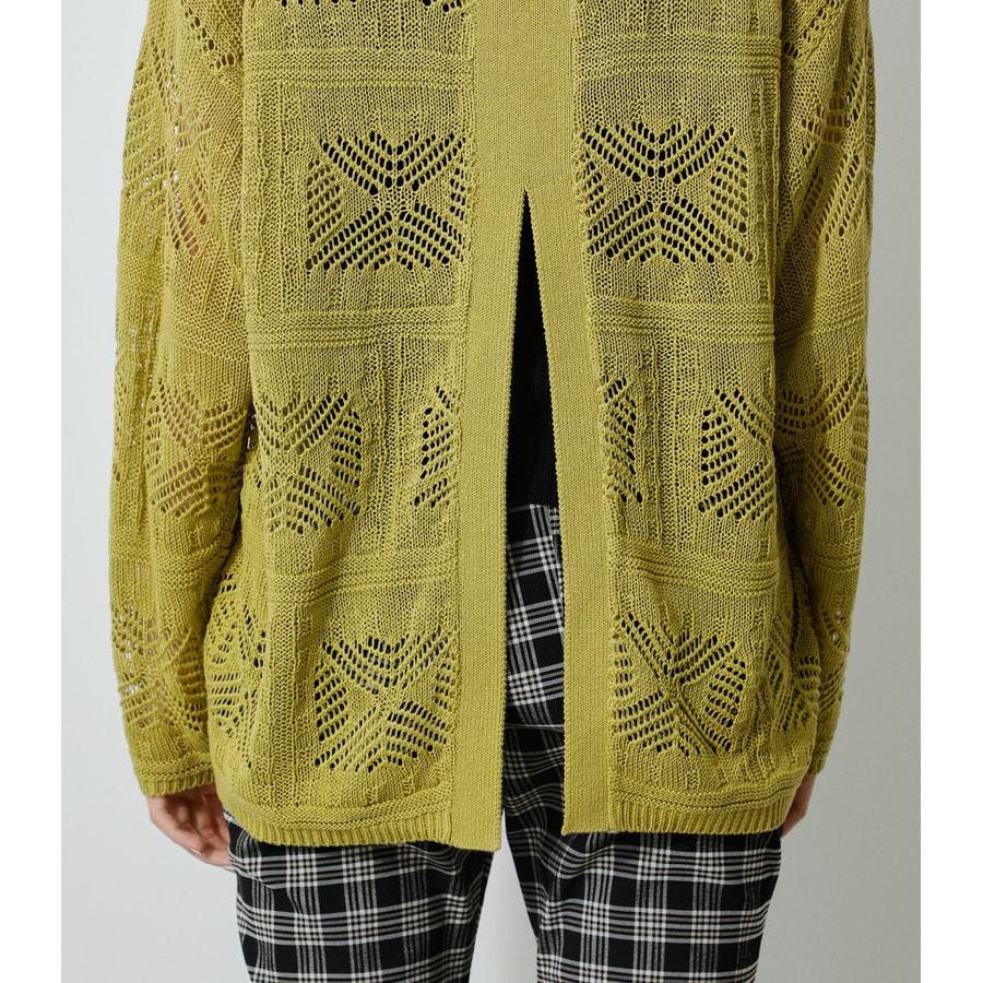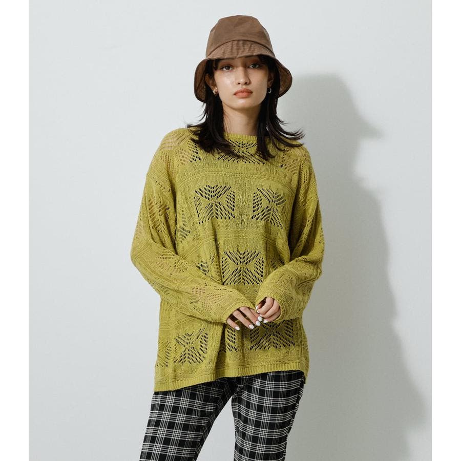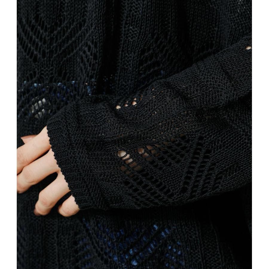 ・幾何学柄を施したクロシェ編みニットです。・深く入ったバックスリットが抜け感を演出し、トレンドライクな印象に。・程よくルーズなシルエットなので、細身のパンツはもちろん、トレンドのフレアパンツと合わせメリハリのあるスタイルに仕上げてあげるのがおすすめ。