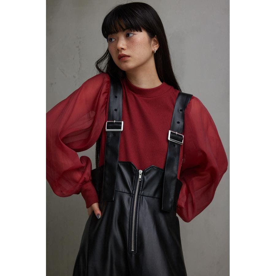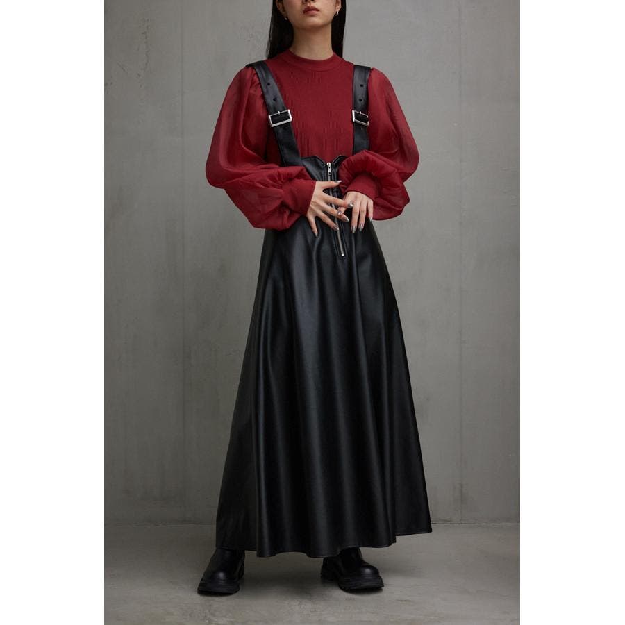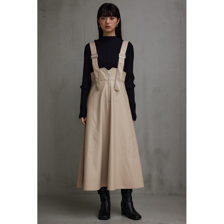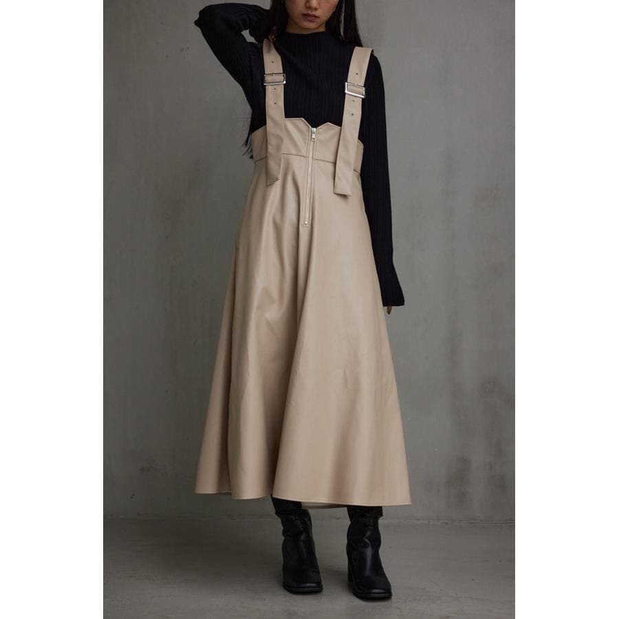 ・合成皮革とテンセルレーヨンポリウレタン素材を使用したジャンパースカートです。