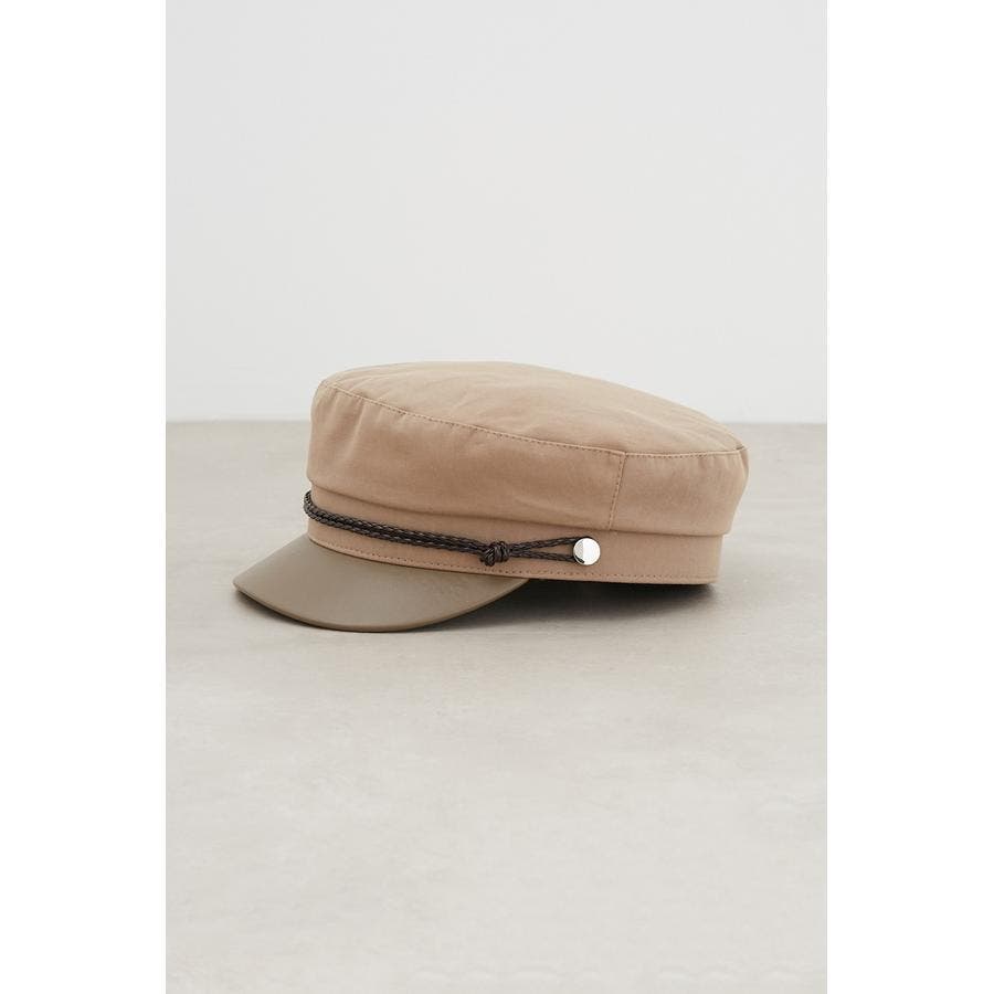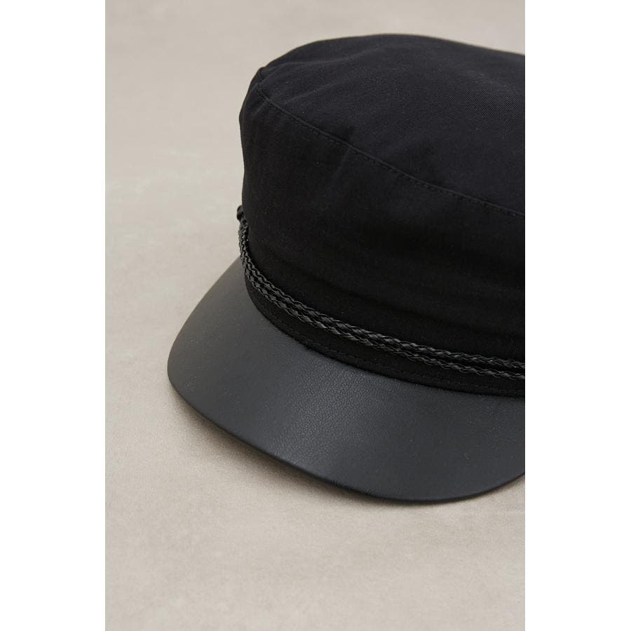 ・合皮の編み込みロープのアクセントが効いたキャスケットです。