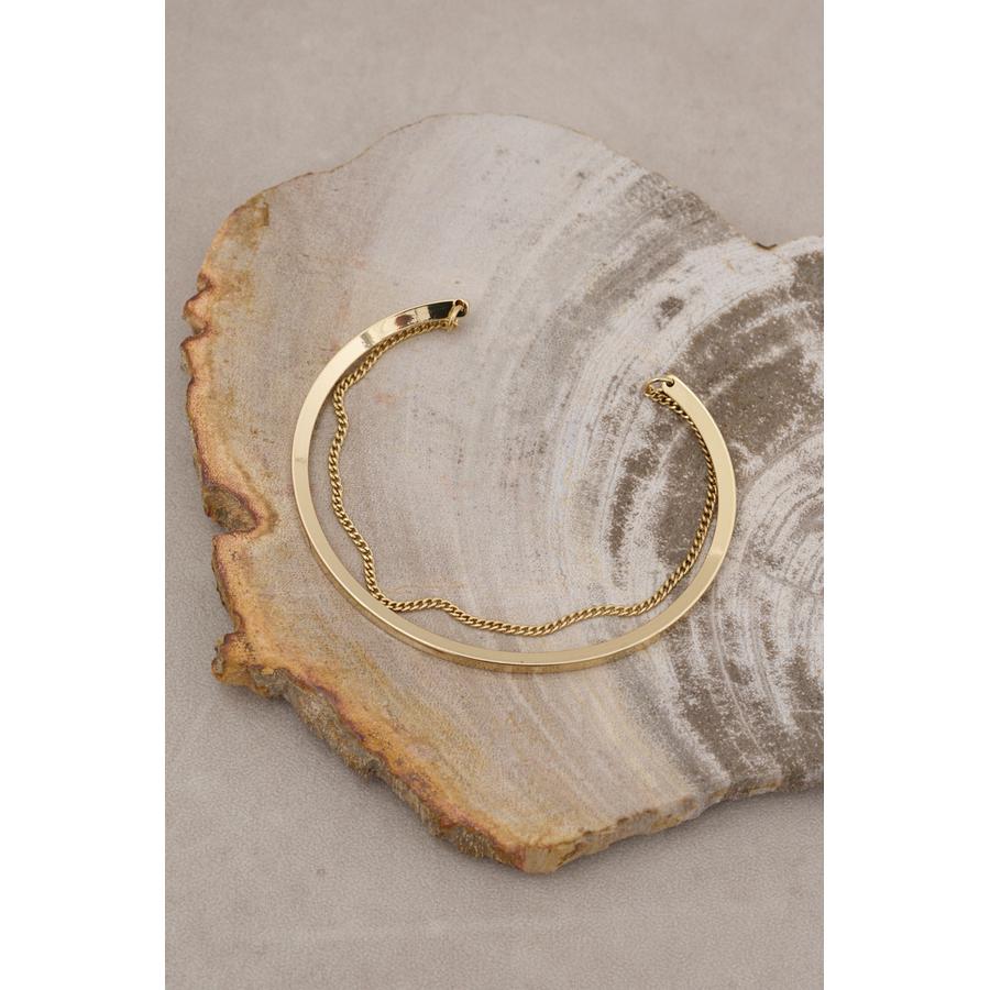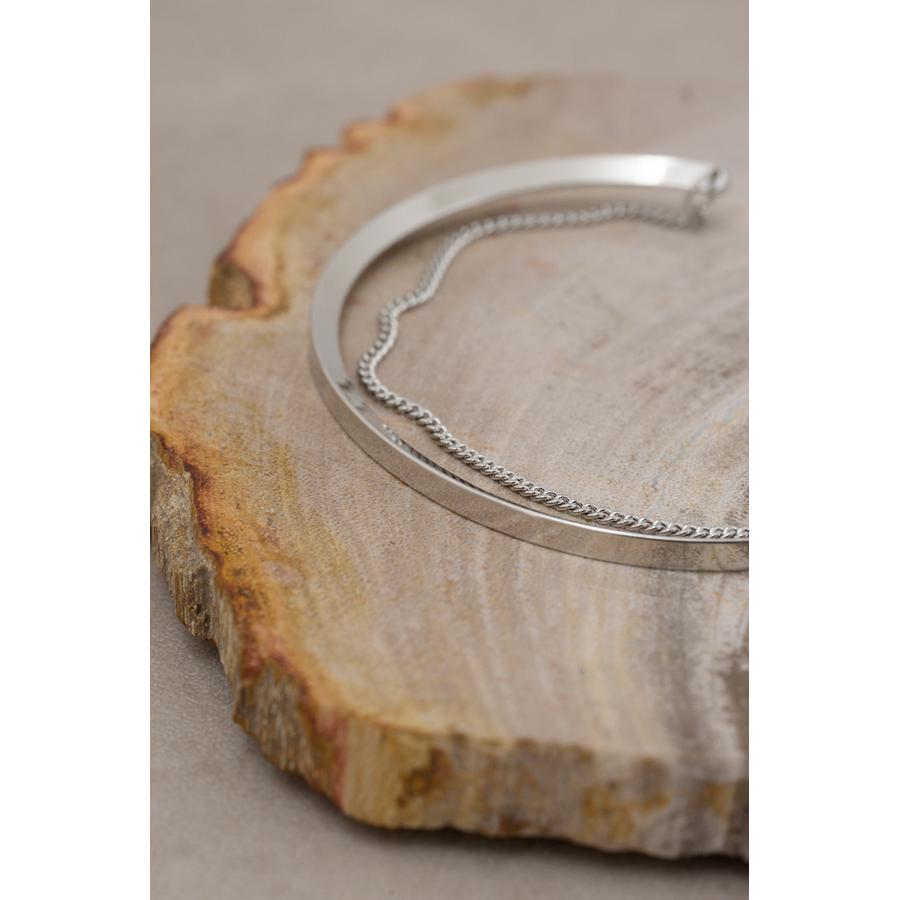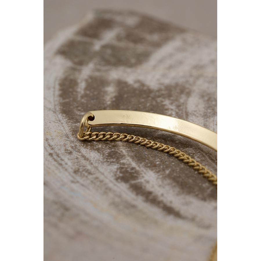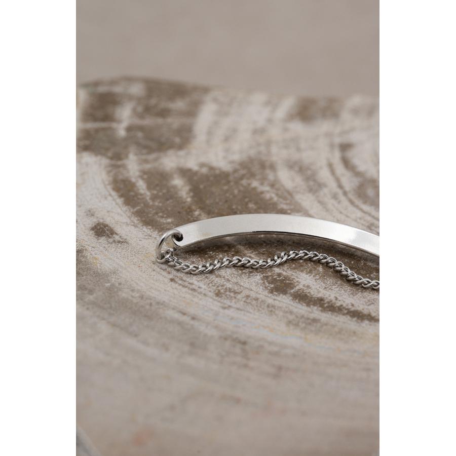 ・プレーンなプレートと、腕に寄り添うチェーンのカーブラインの絶妙なコンビネーションを楽しめます。