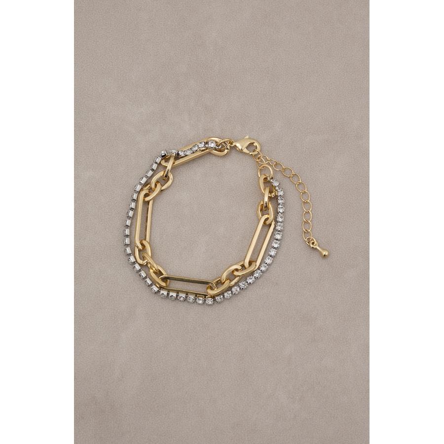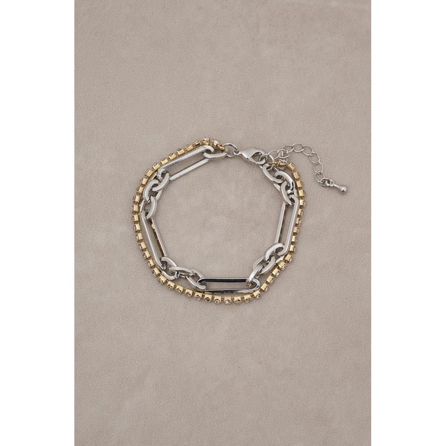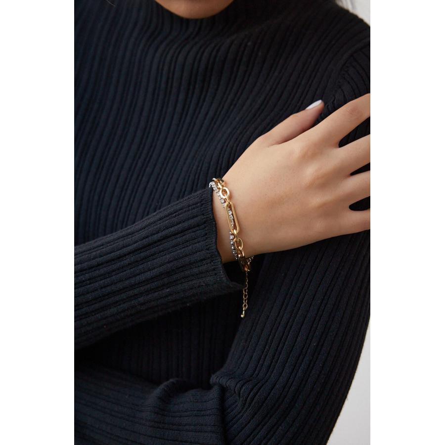 ・ボリューム感のあるマルチチェーンの今年注目のラインストーンの組み合わせが他にない新しいデザインの2連ブレスレットです。