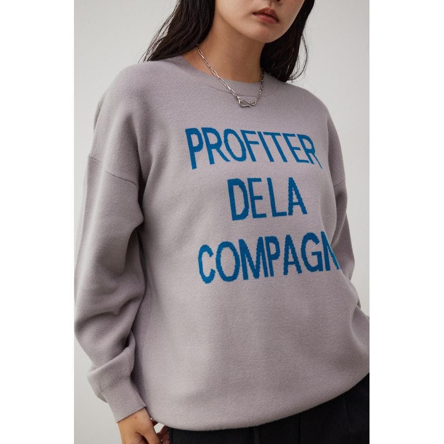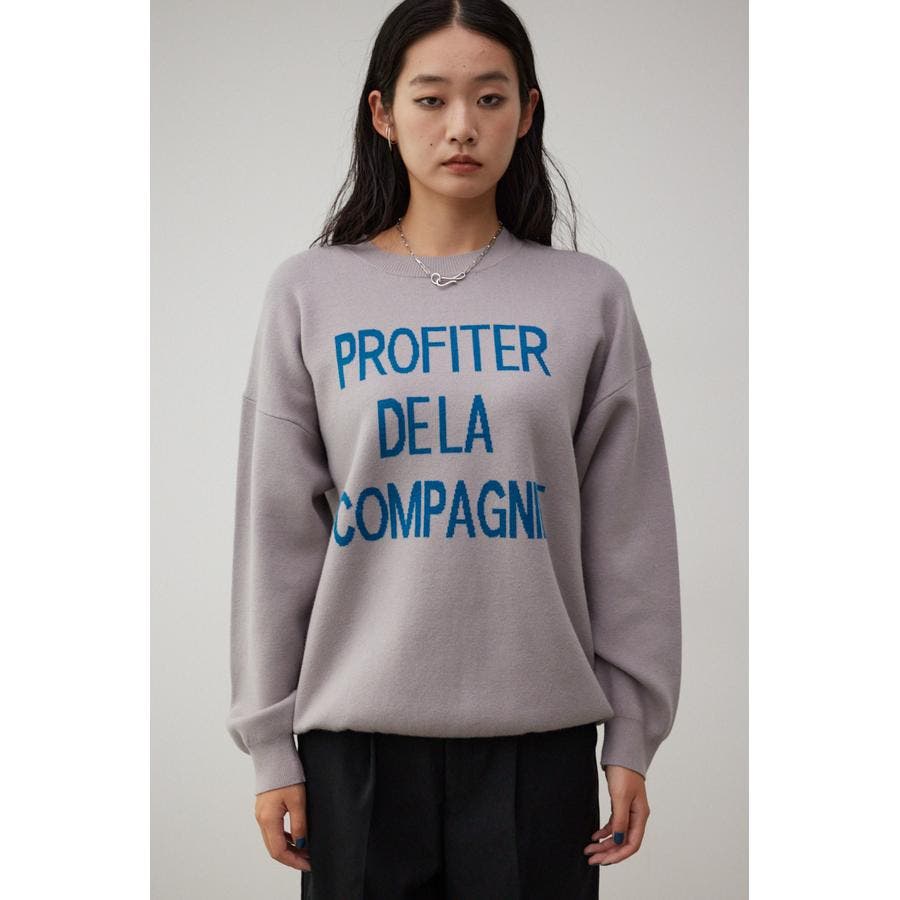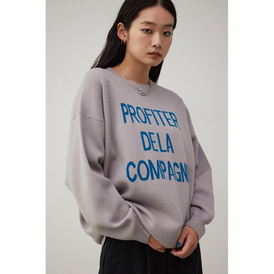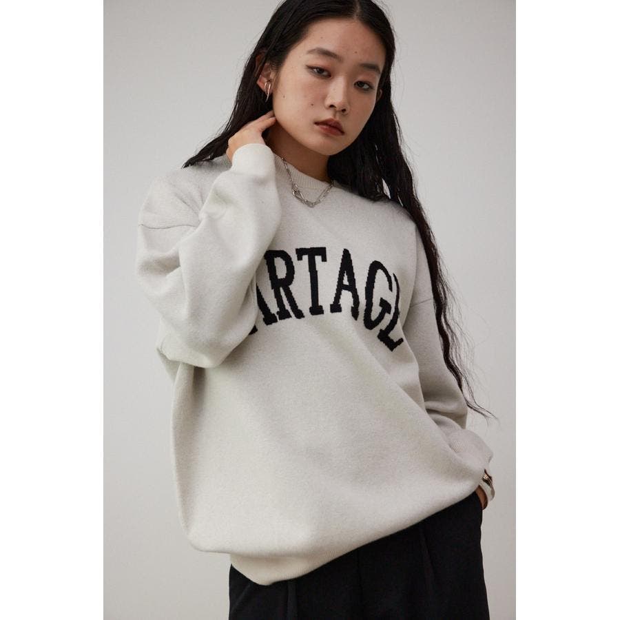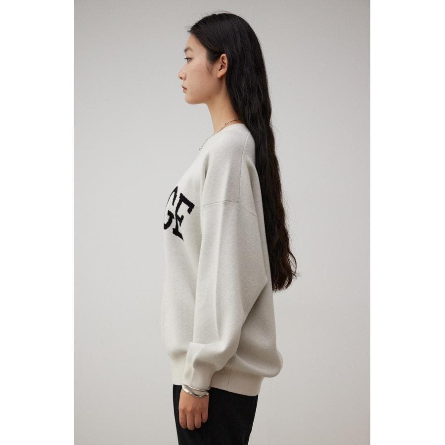 ・大人カジュアルに着られるロゴニットは、ジャガードで編み立てた印象的な1枚。