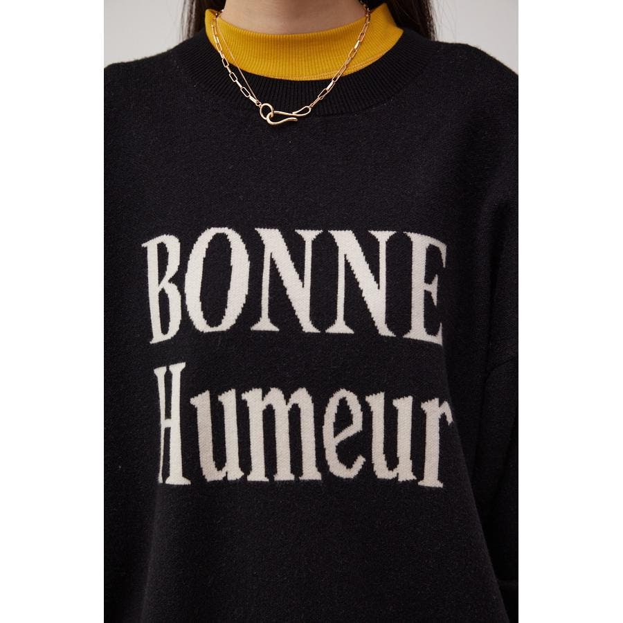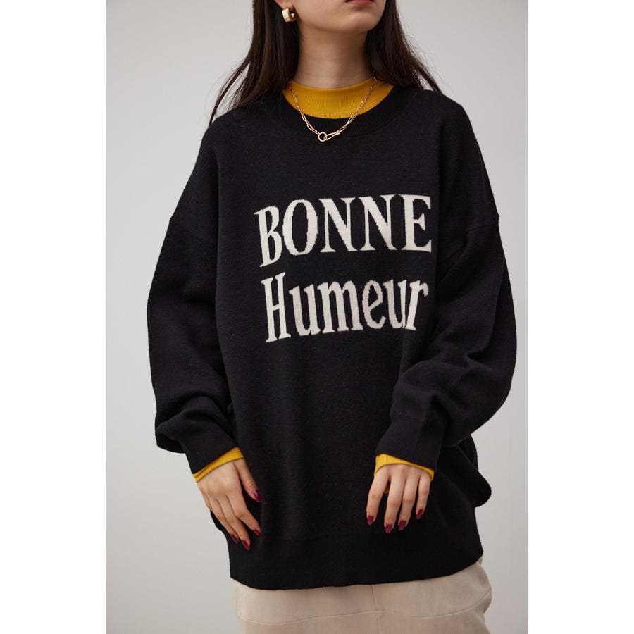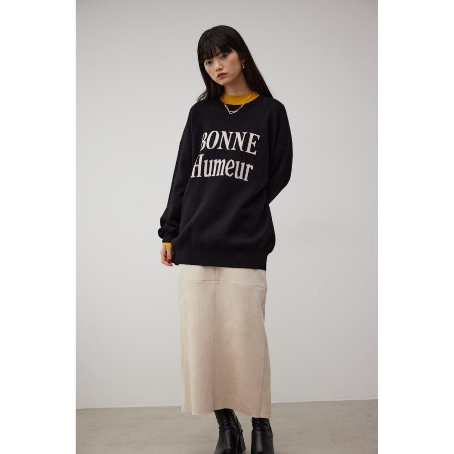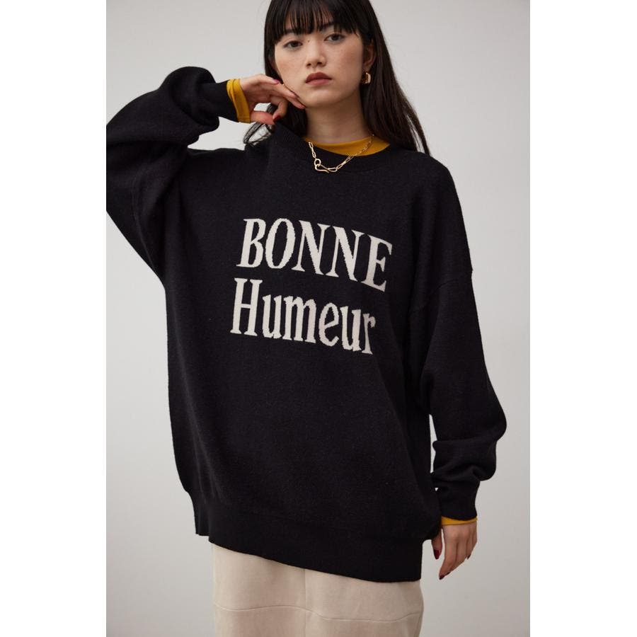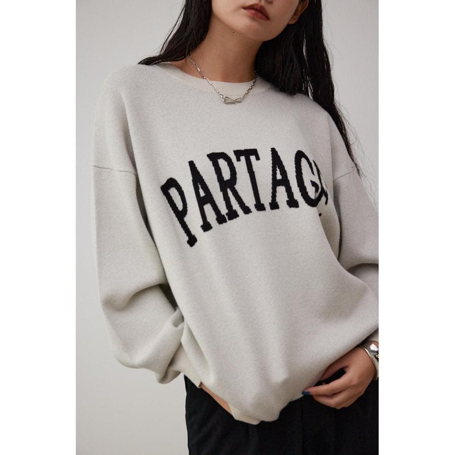 ・大人カジュアルに着られるロゴニットは、ジャガードで編み立てた印象的な1枚。