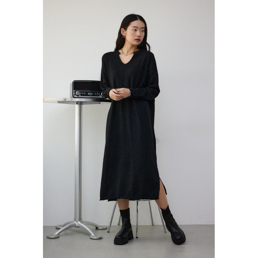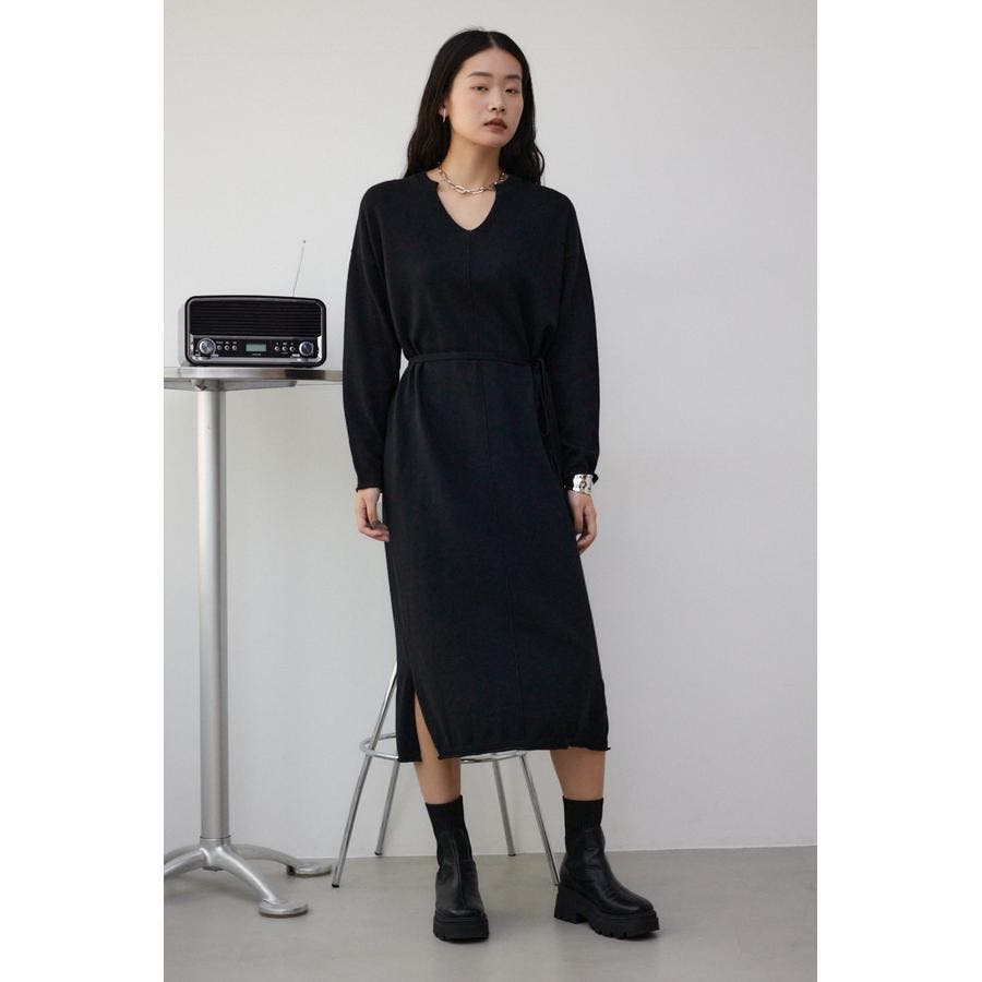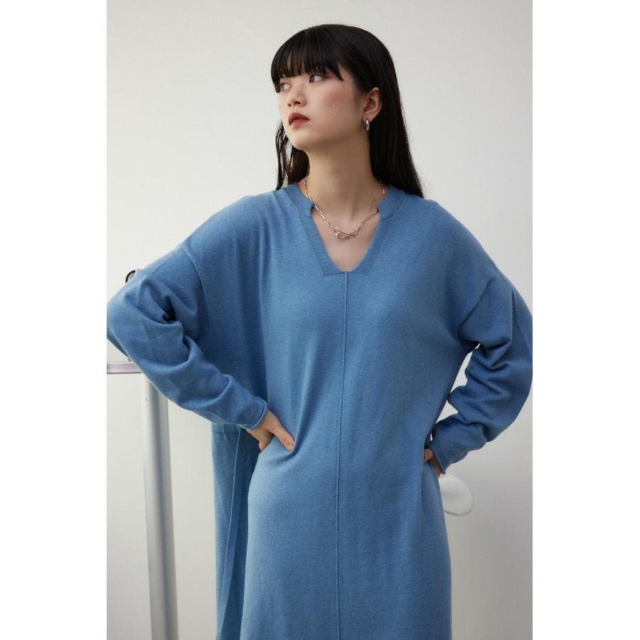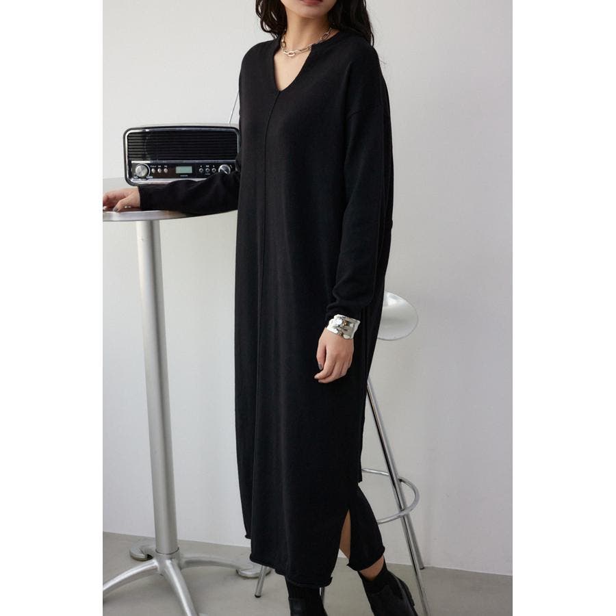 スキッパーロングニットワンピース