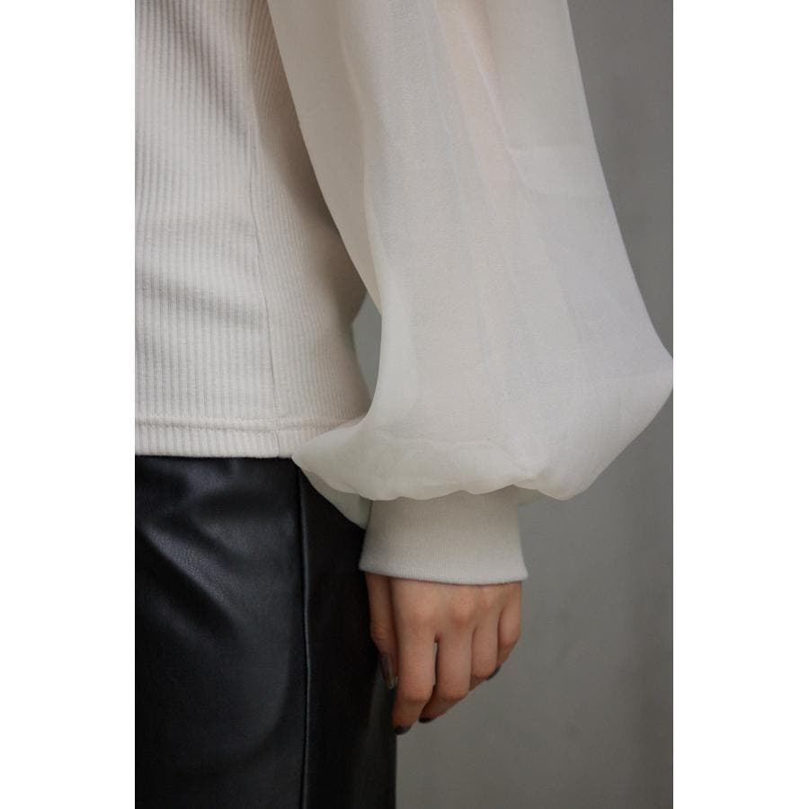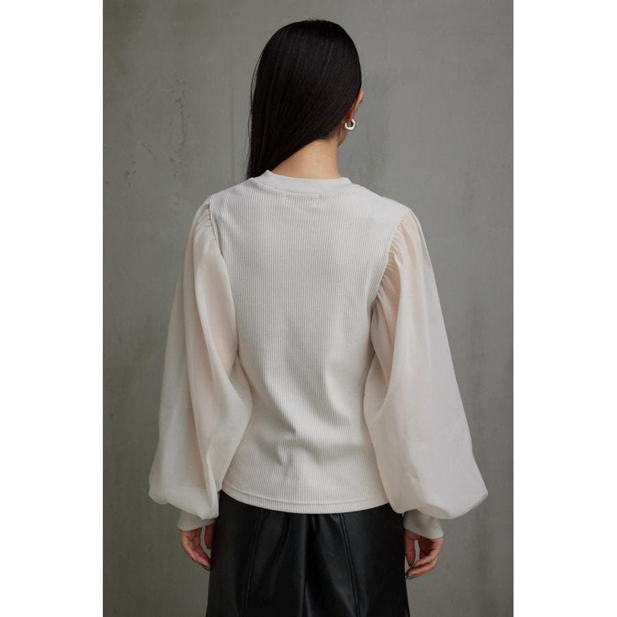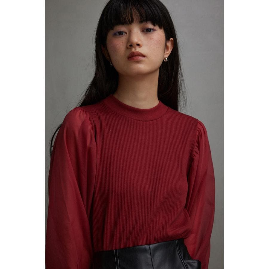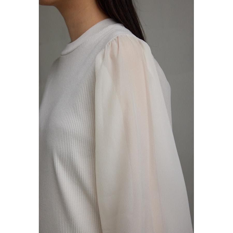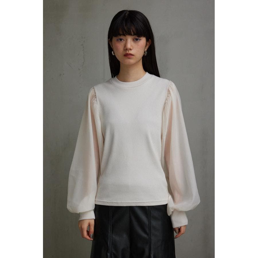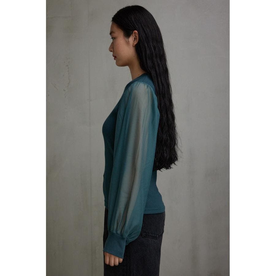 袖シアー袖リブトップス