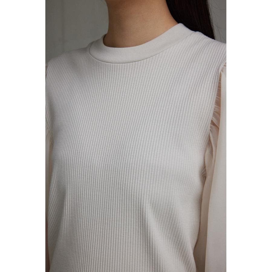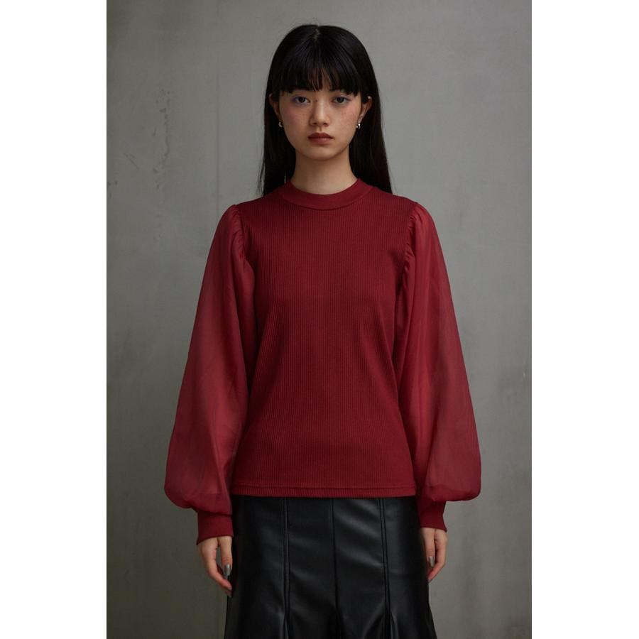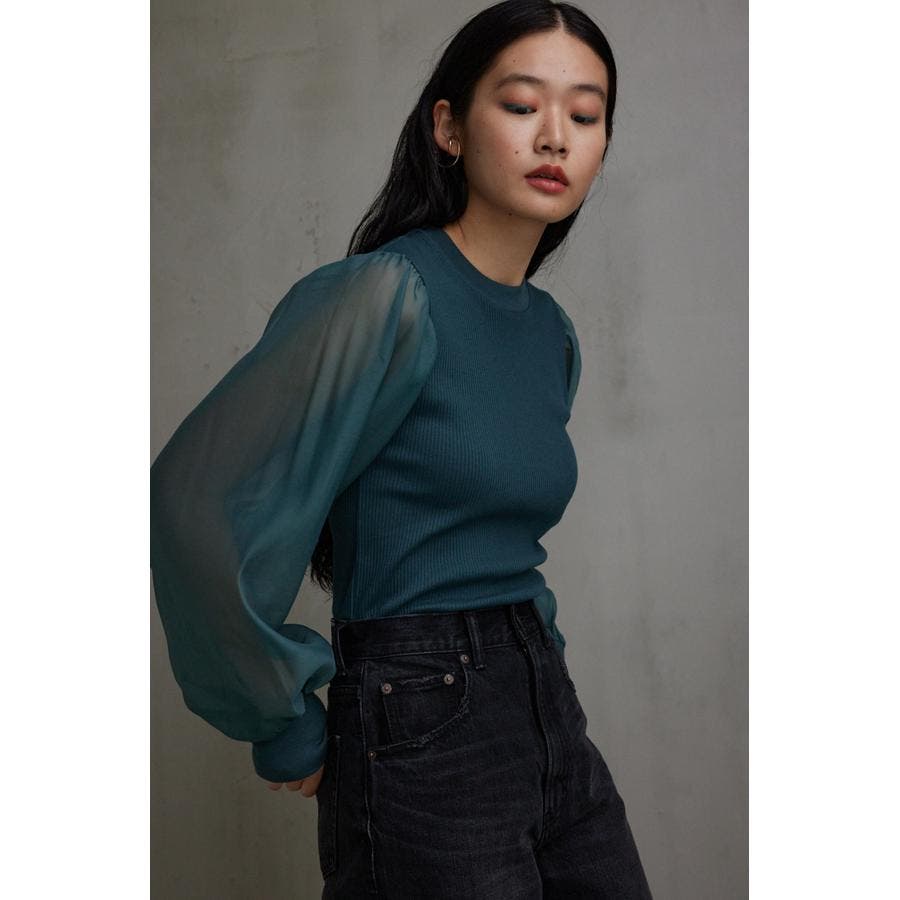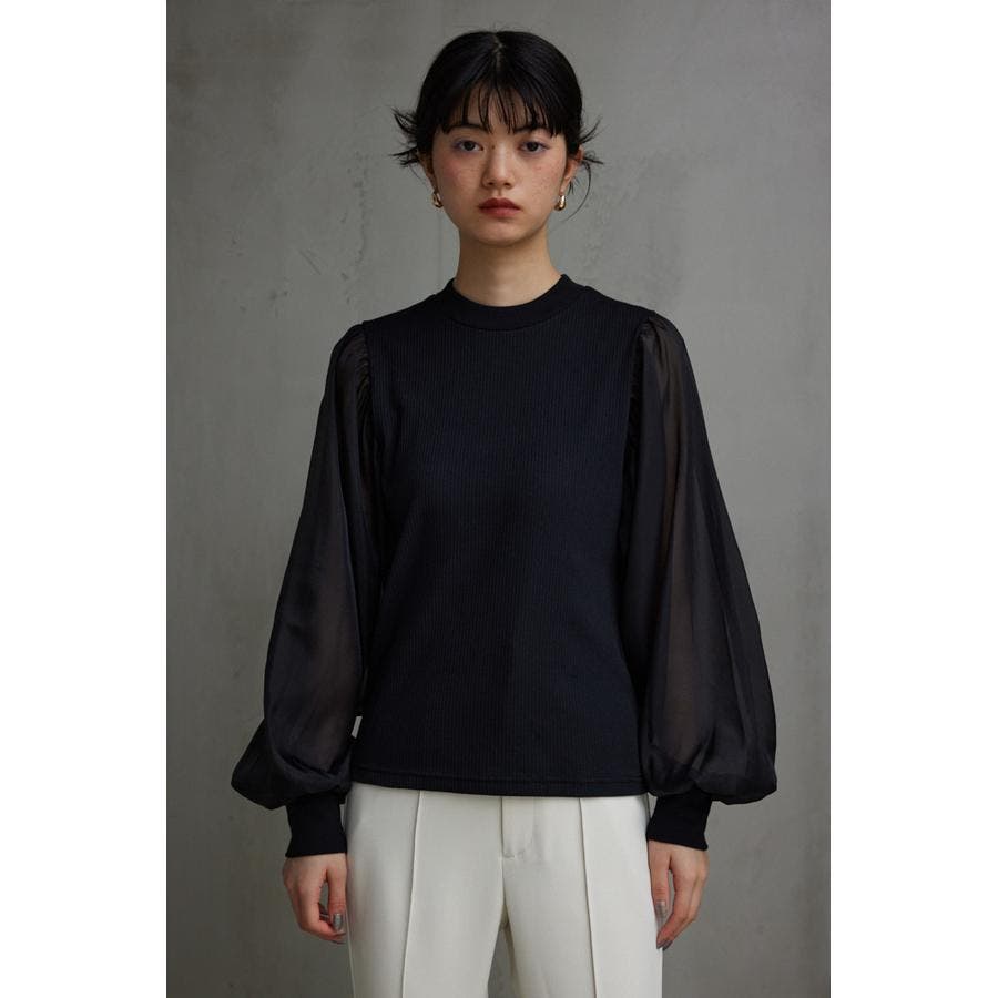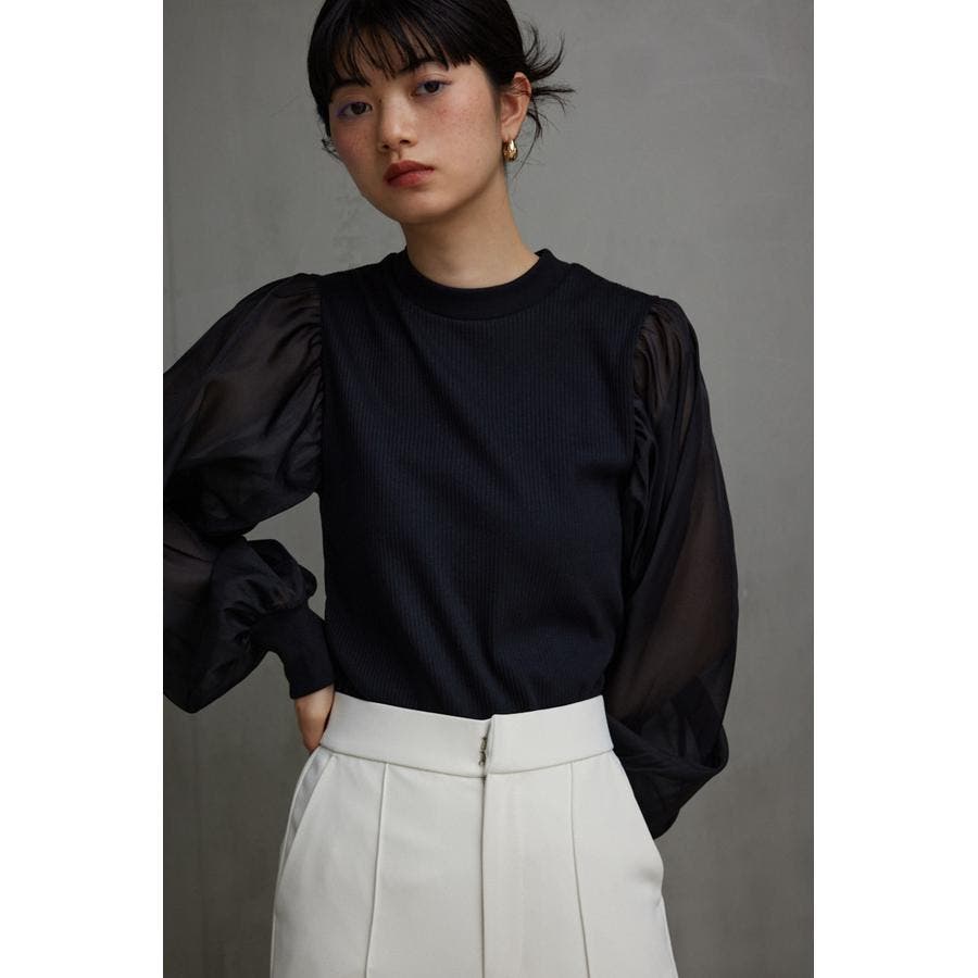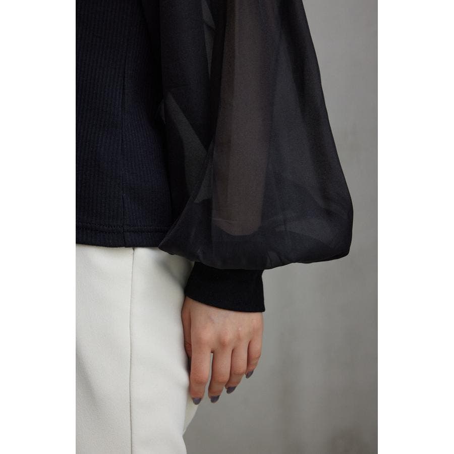 袖シアー袖リブトップス