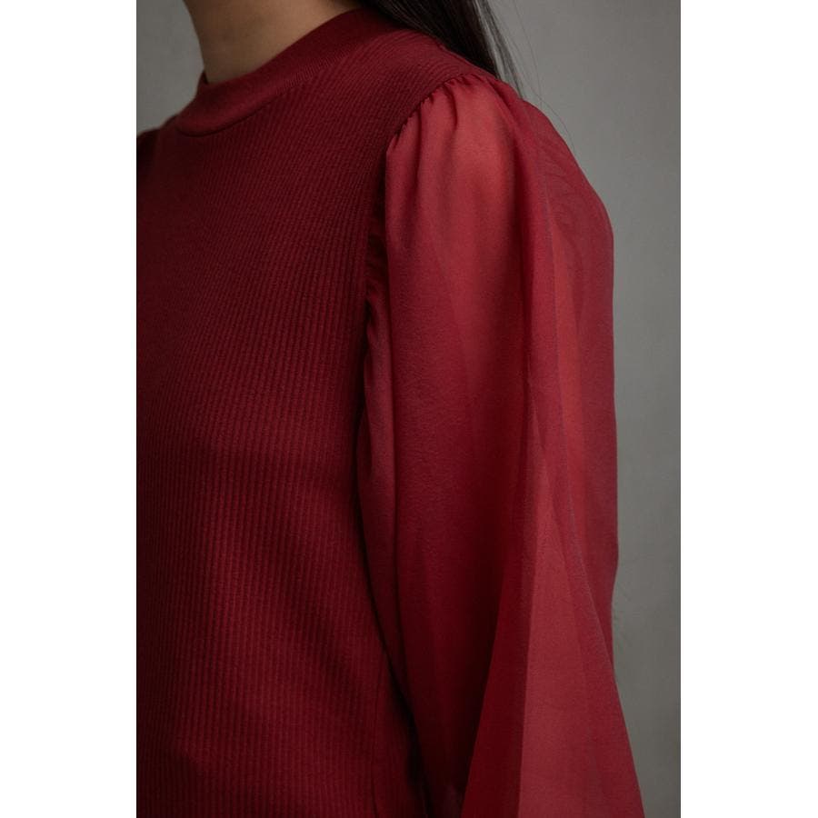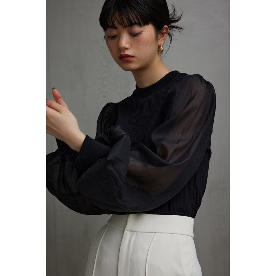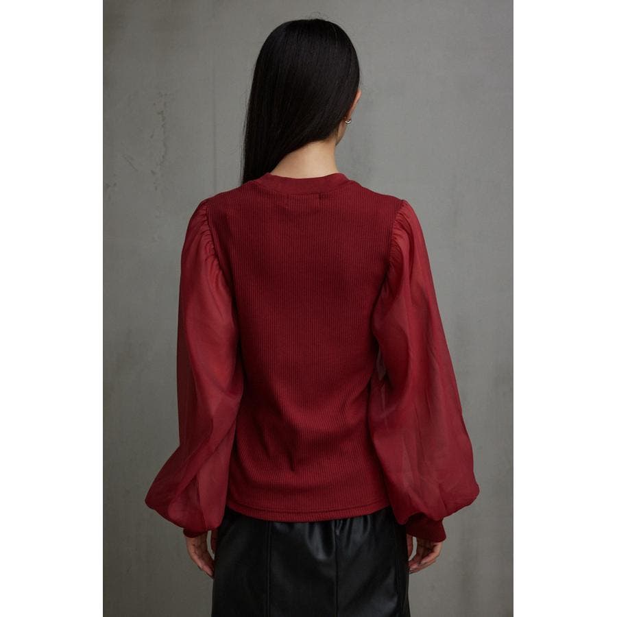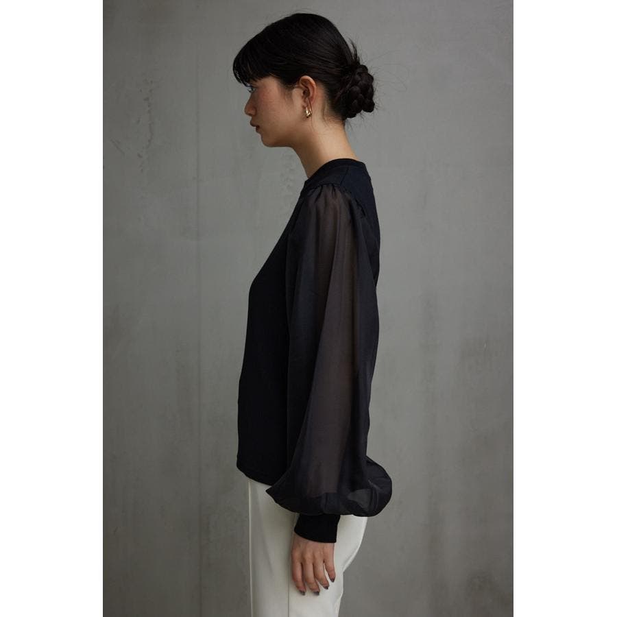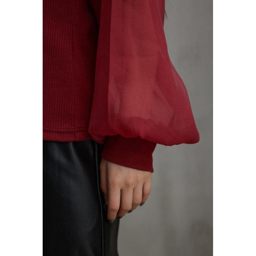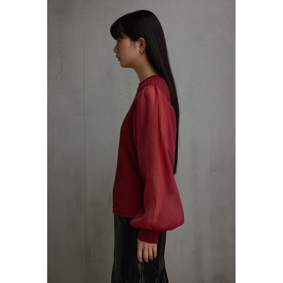 袖シアー袖リブトップス