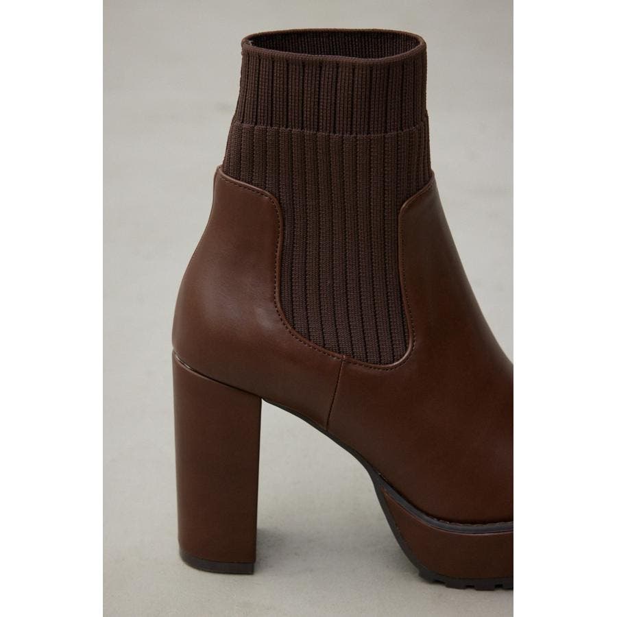 ・ナチュラルな光沢のある素材にリブニットをドッキングしたソックスタイプのショートブーツです。