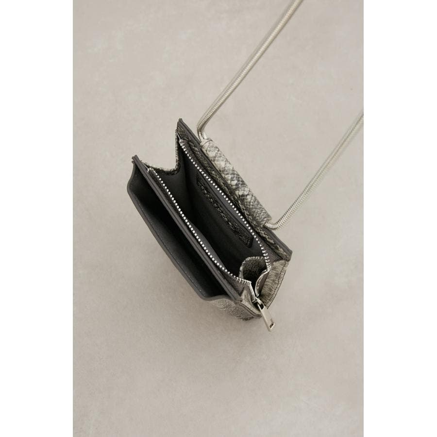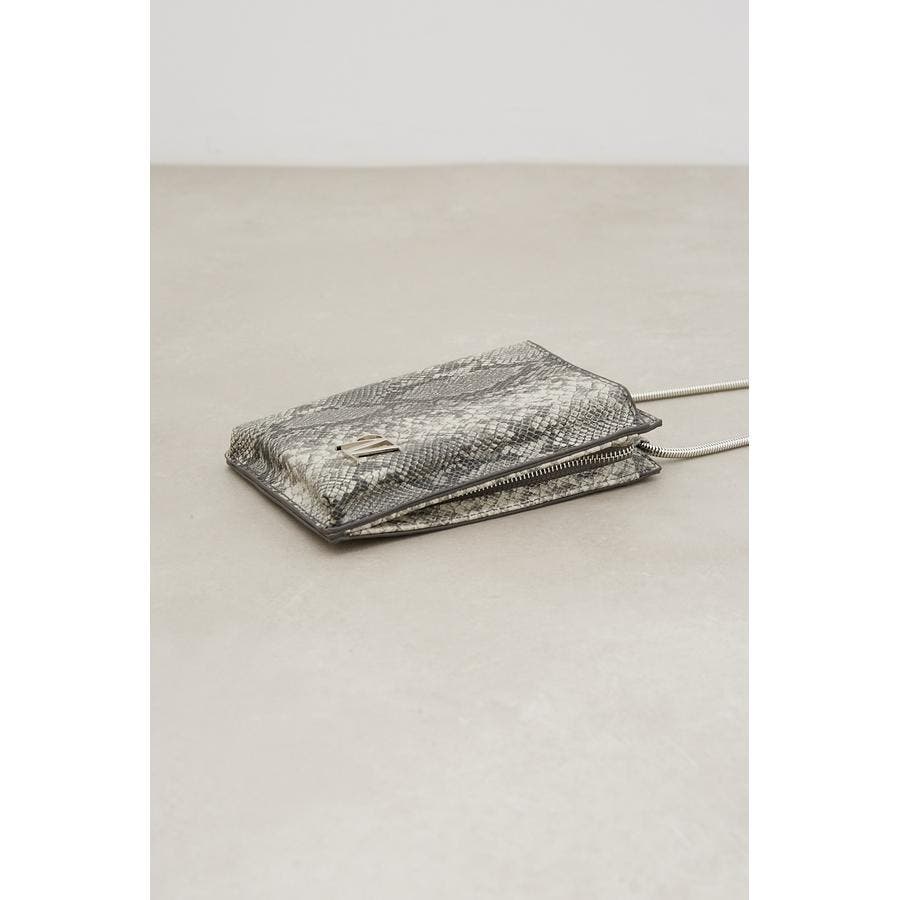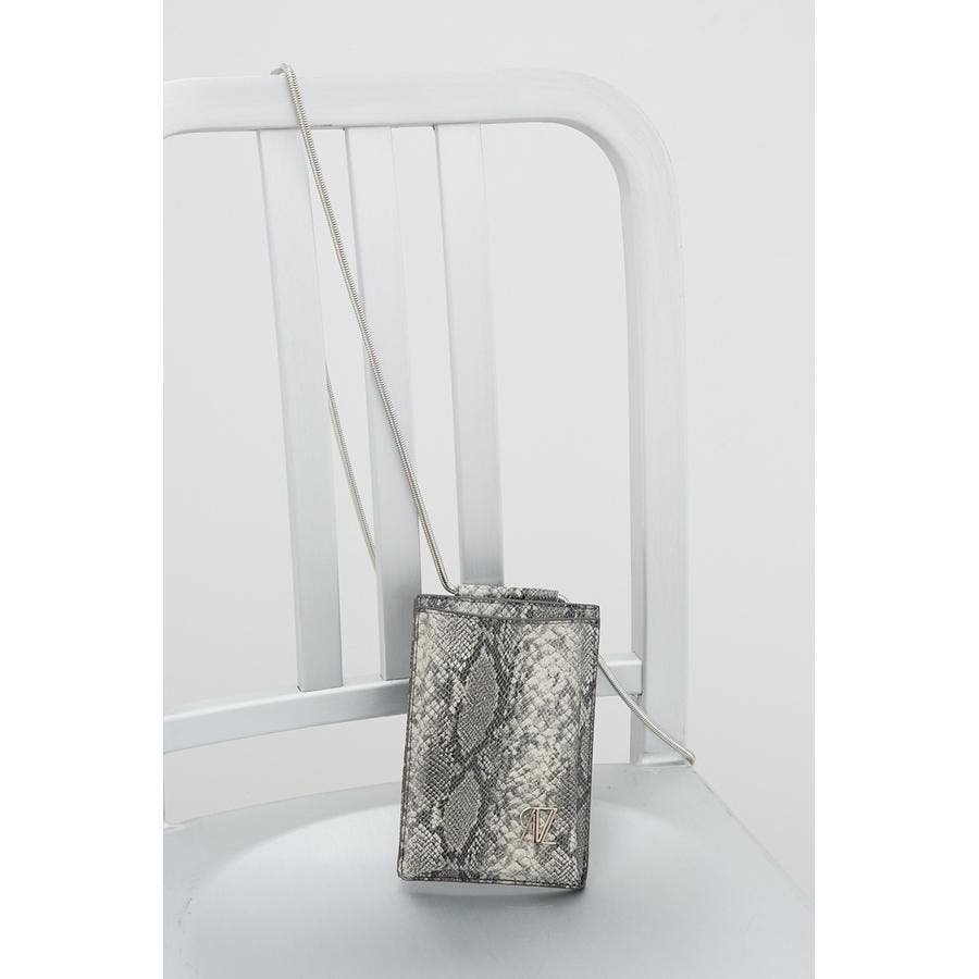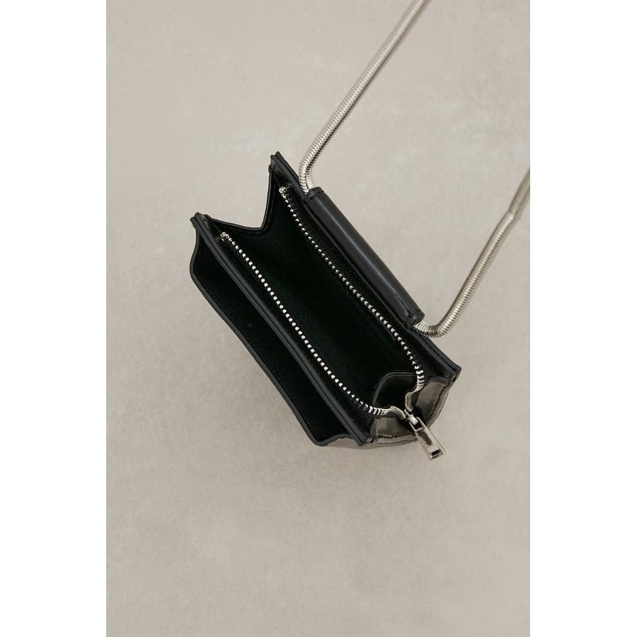 ・艶感のある合皮やスネークチェーンがモード感を演出。