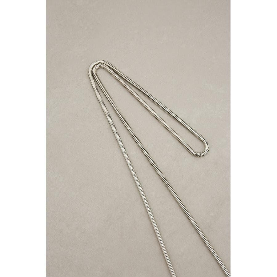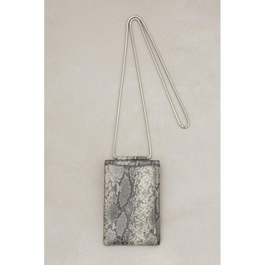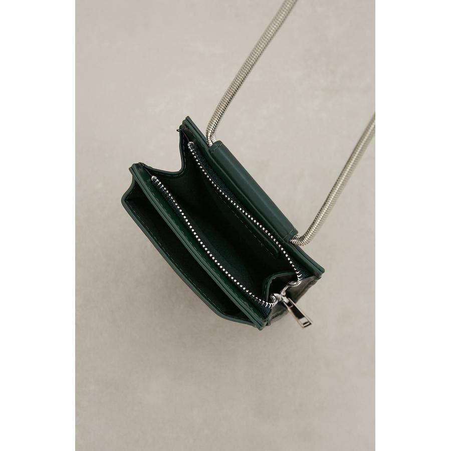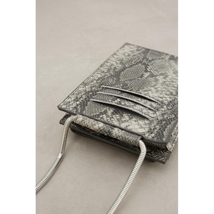 ・艶感のある合皮やスネークチェーンがモード感を演出。