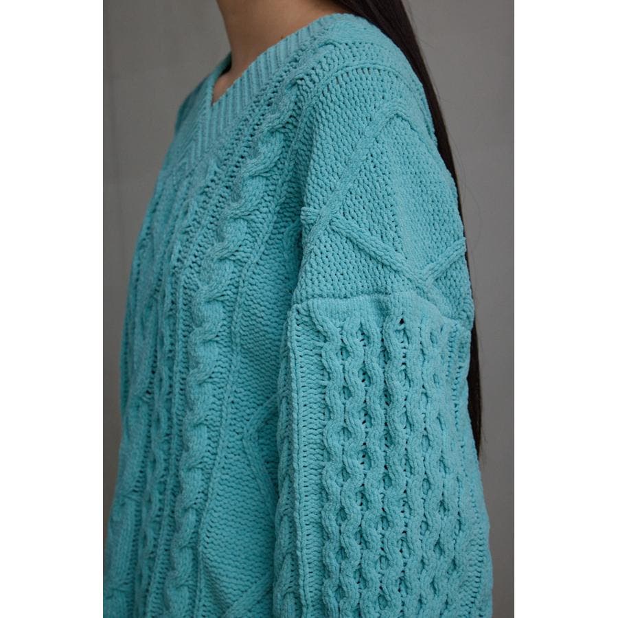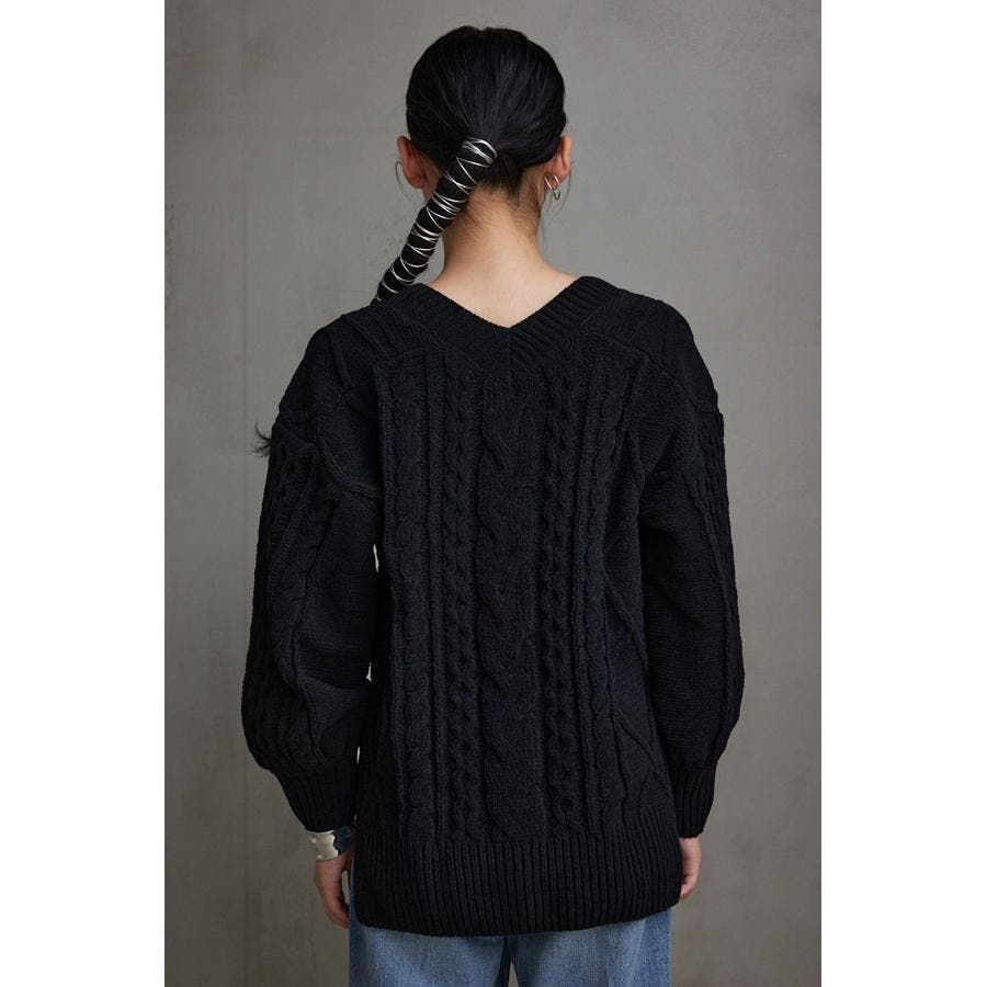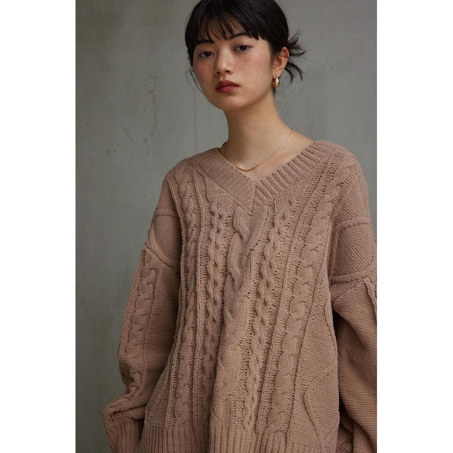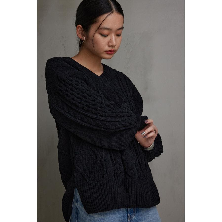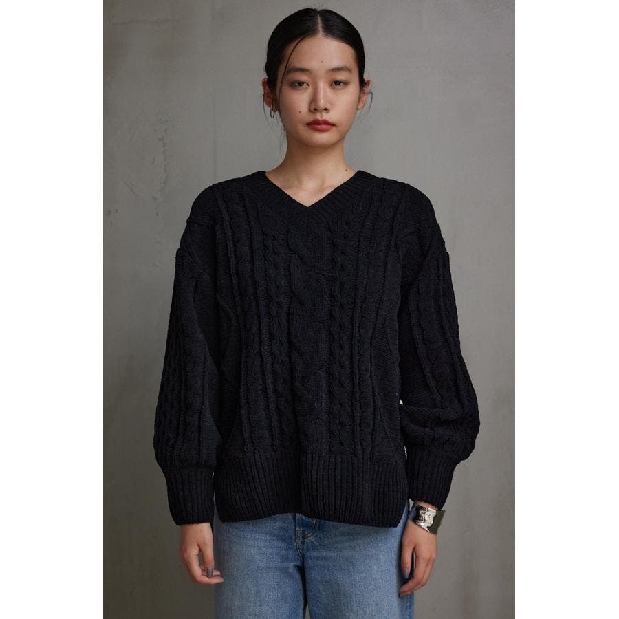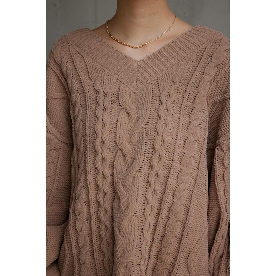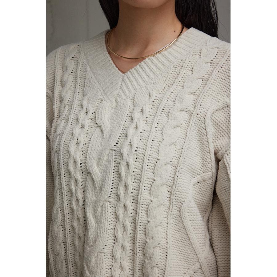 シェニールケーブルVネックニットトップス