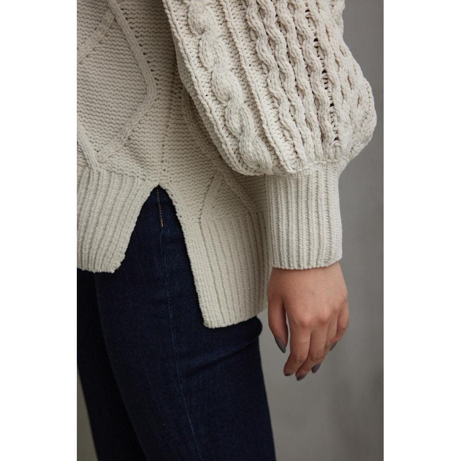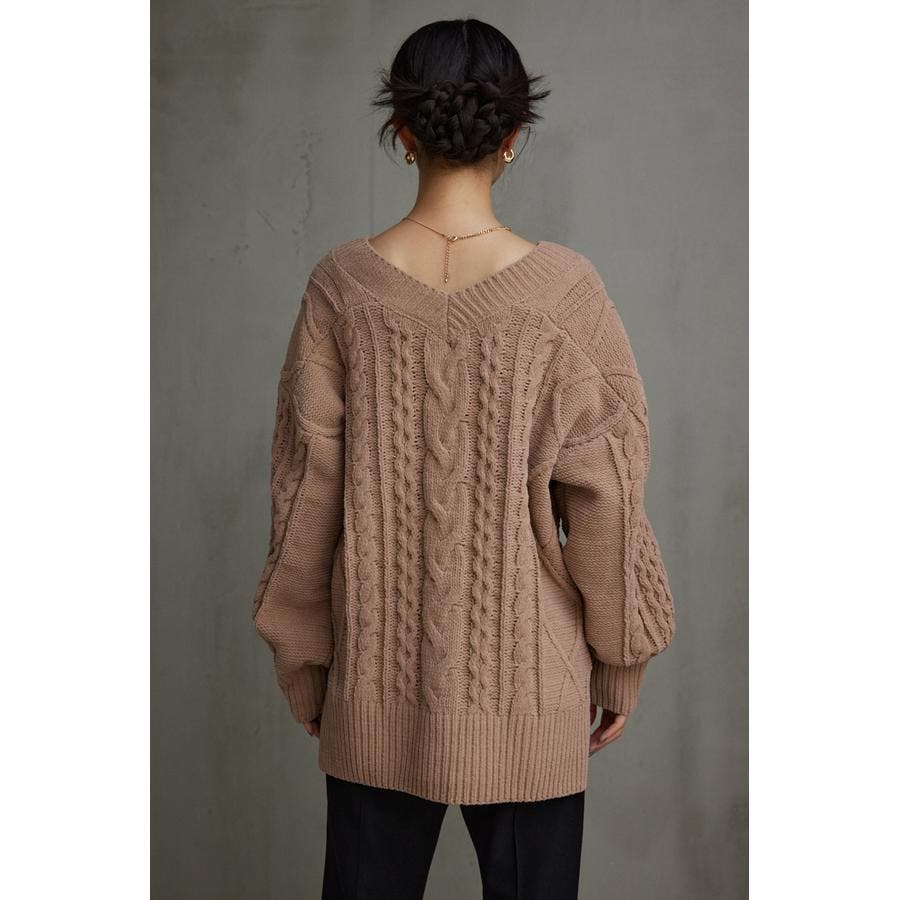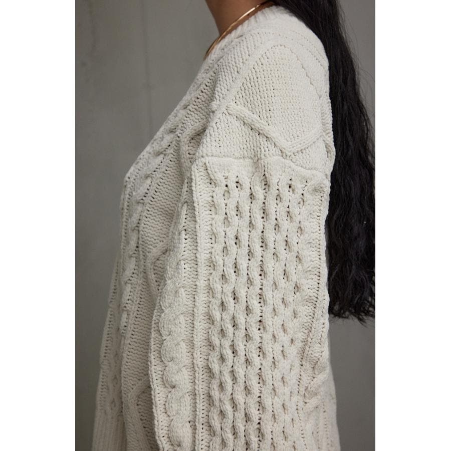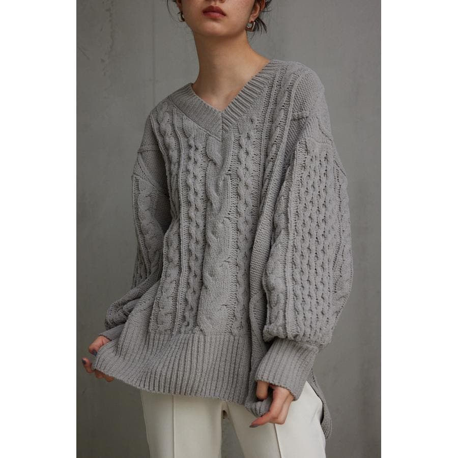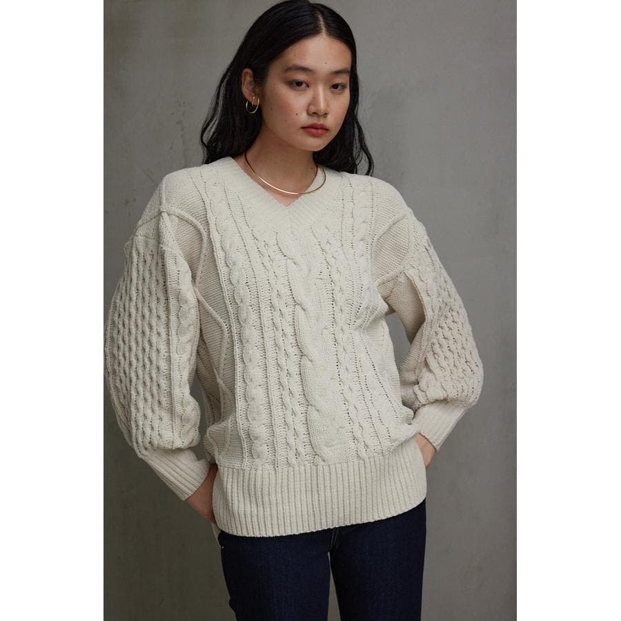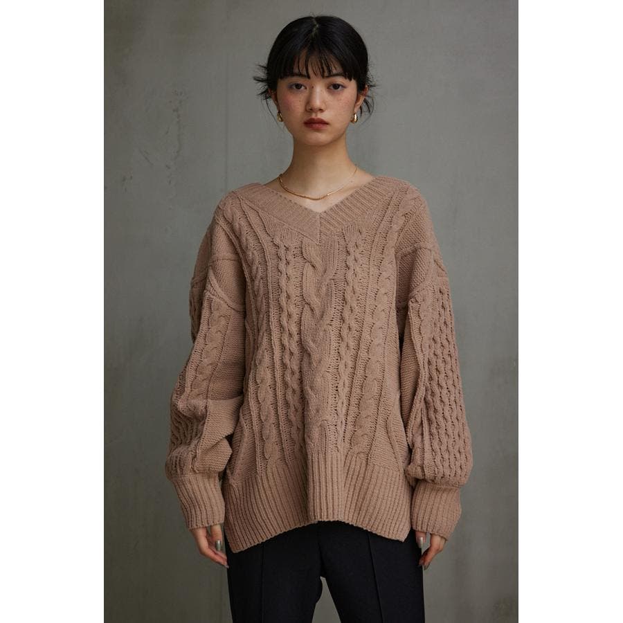 シェニールケーブルVネックニットトップス