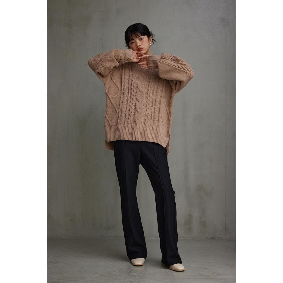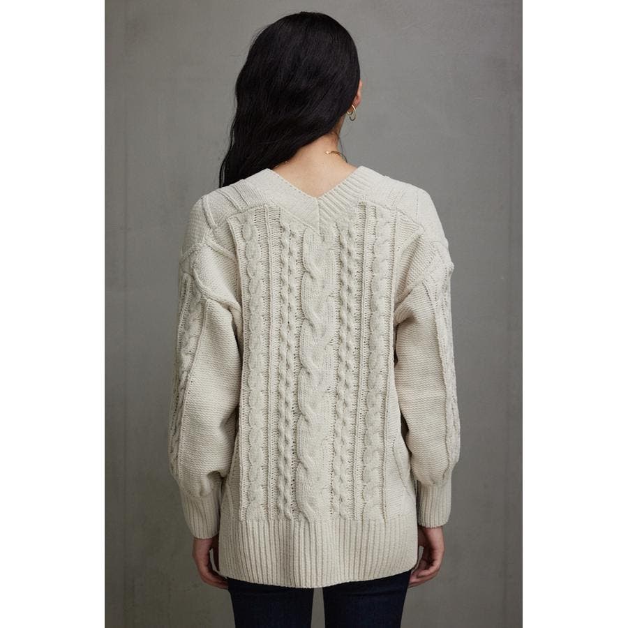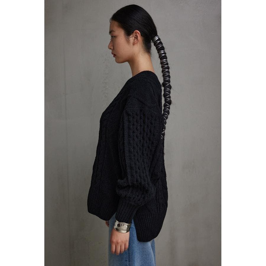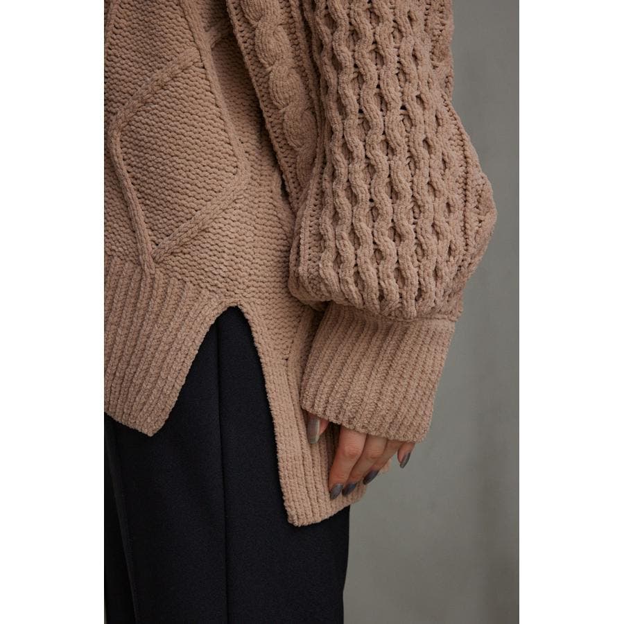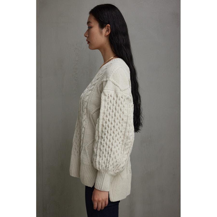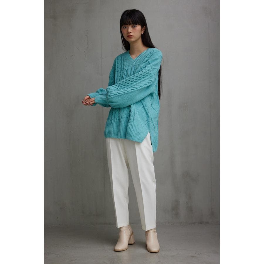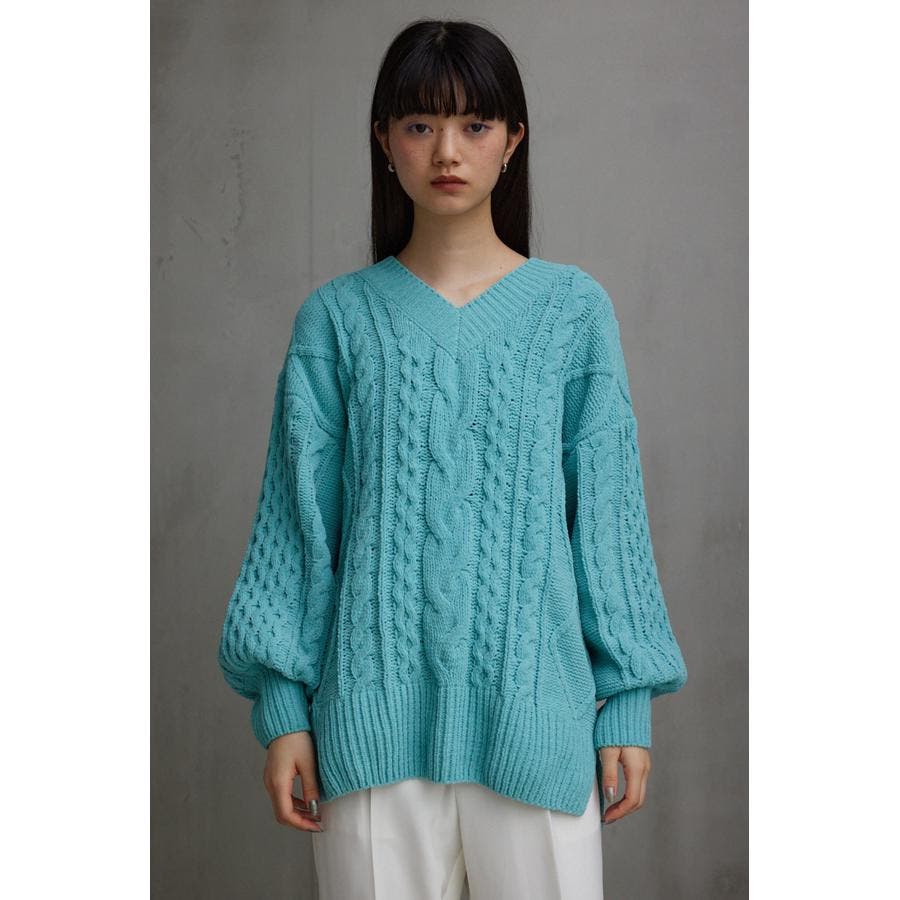 シェニールケーブルVネックニットトップス