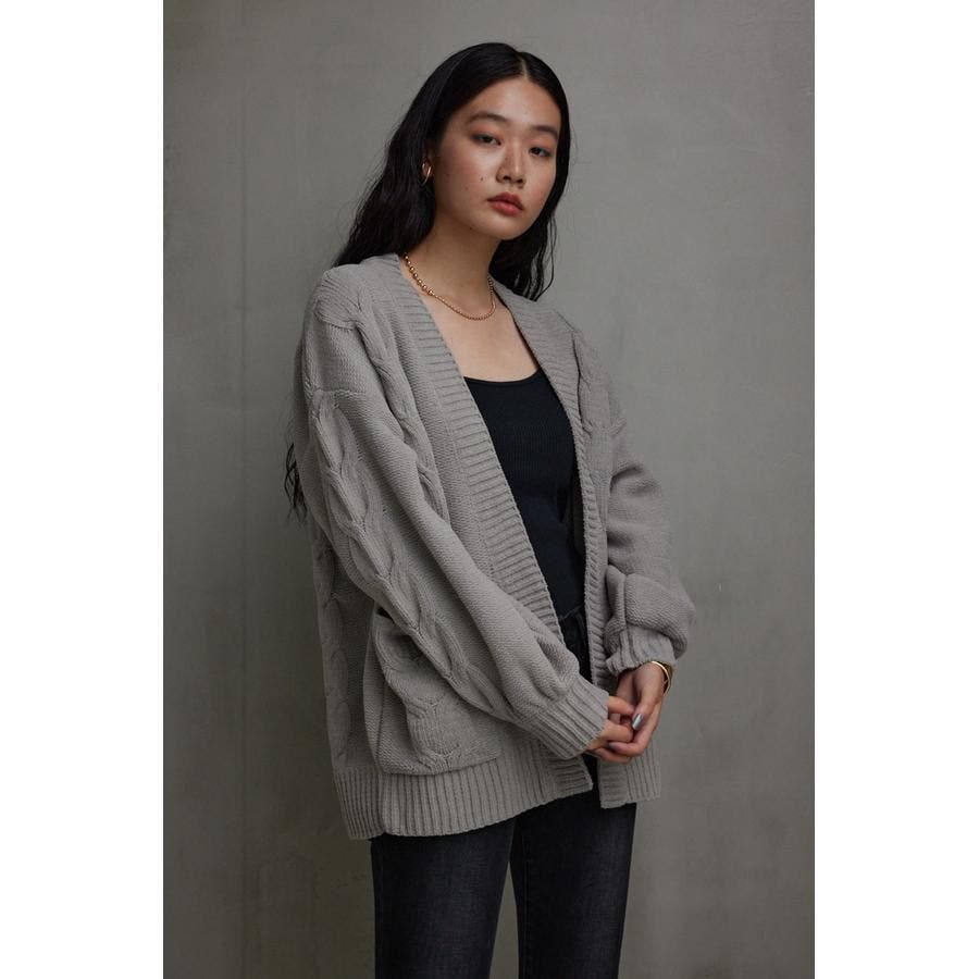シェニールケーブルニットカーディガン