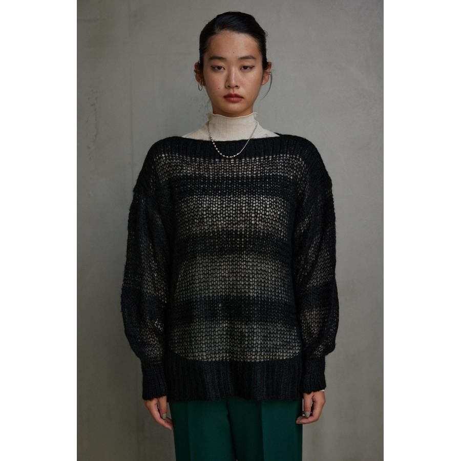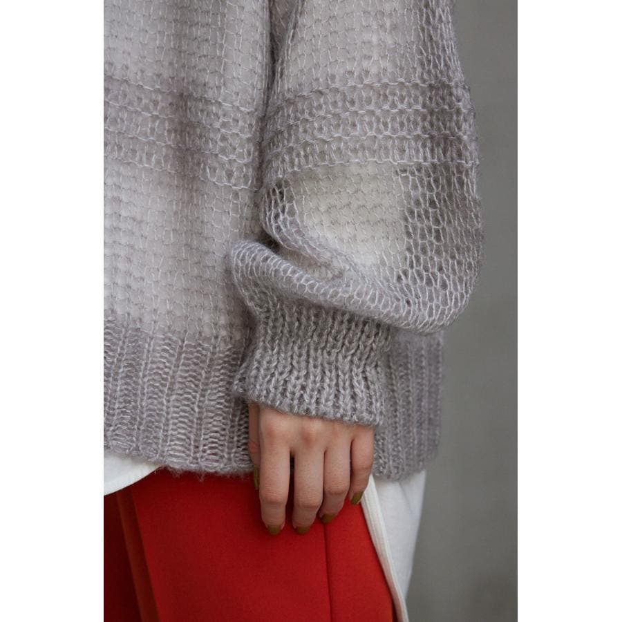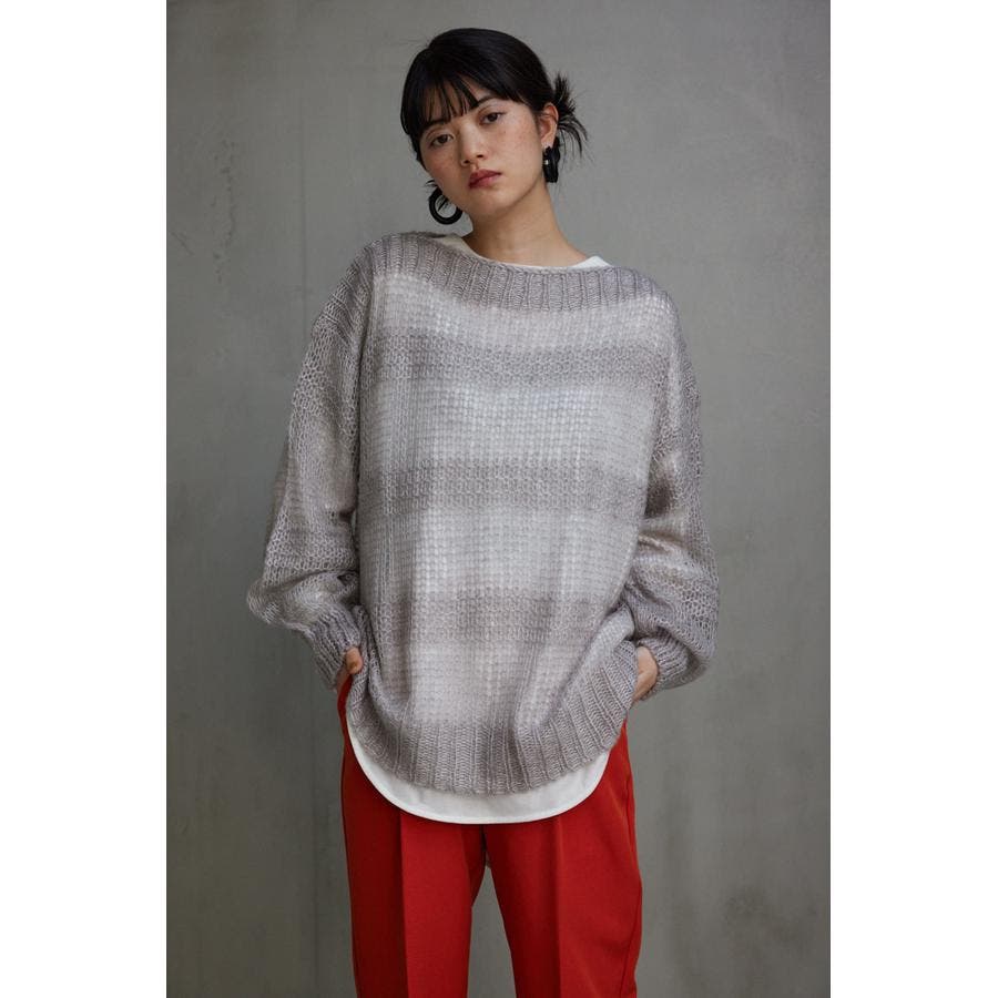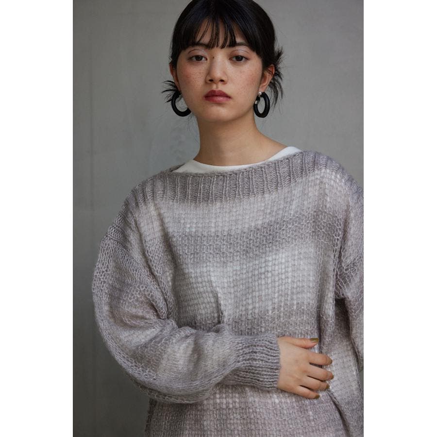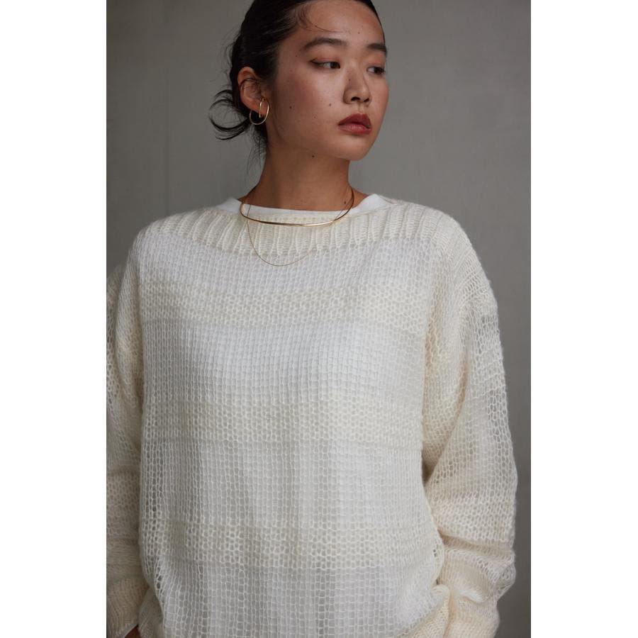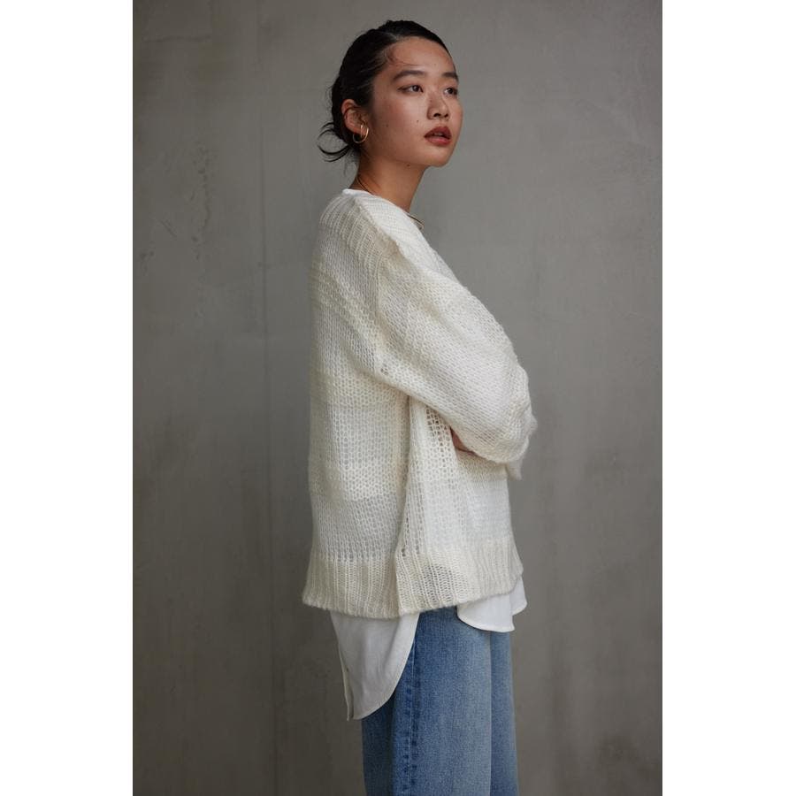 ・今期トレンドであるモヘヤライクで透け感の変化が出せるように、ボーダーの編地でデザインしています。