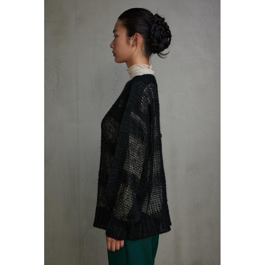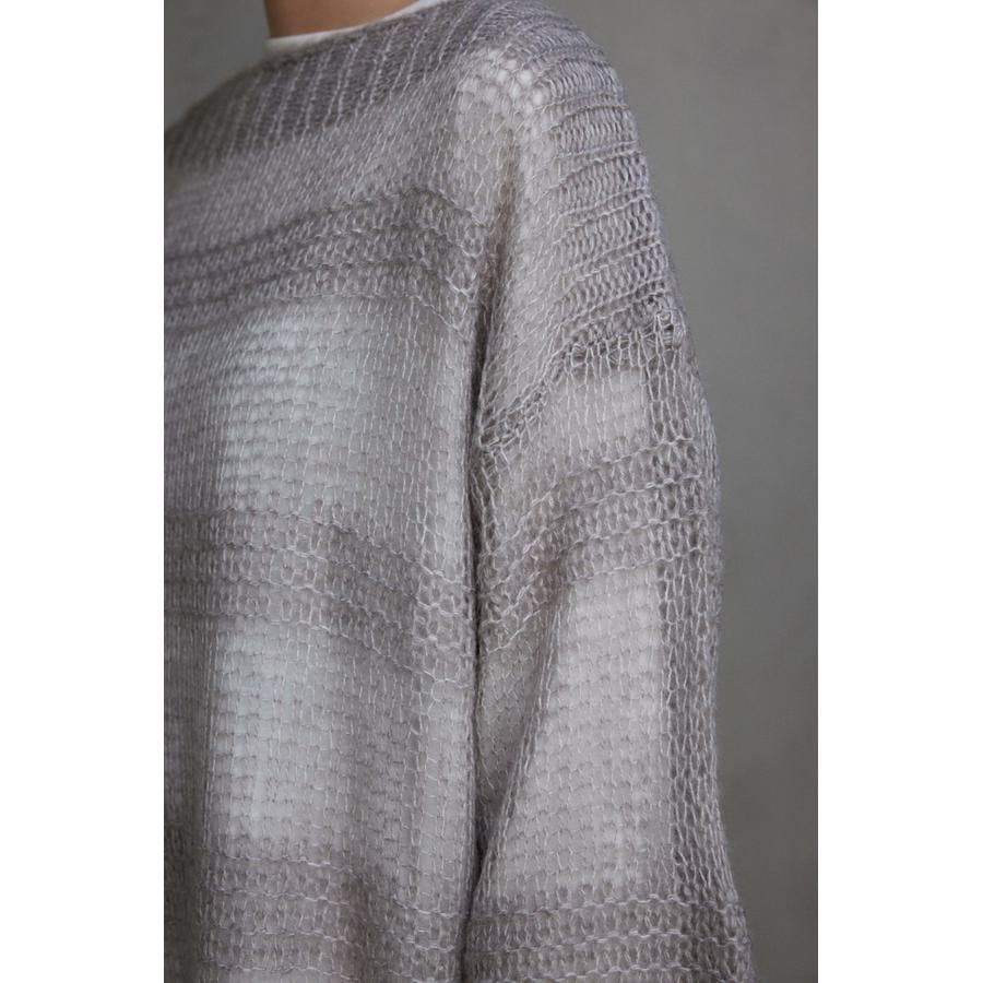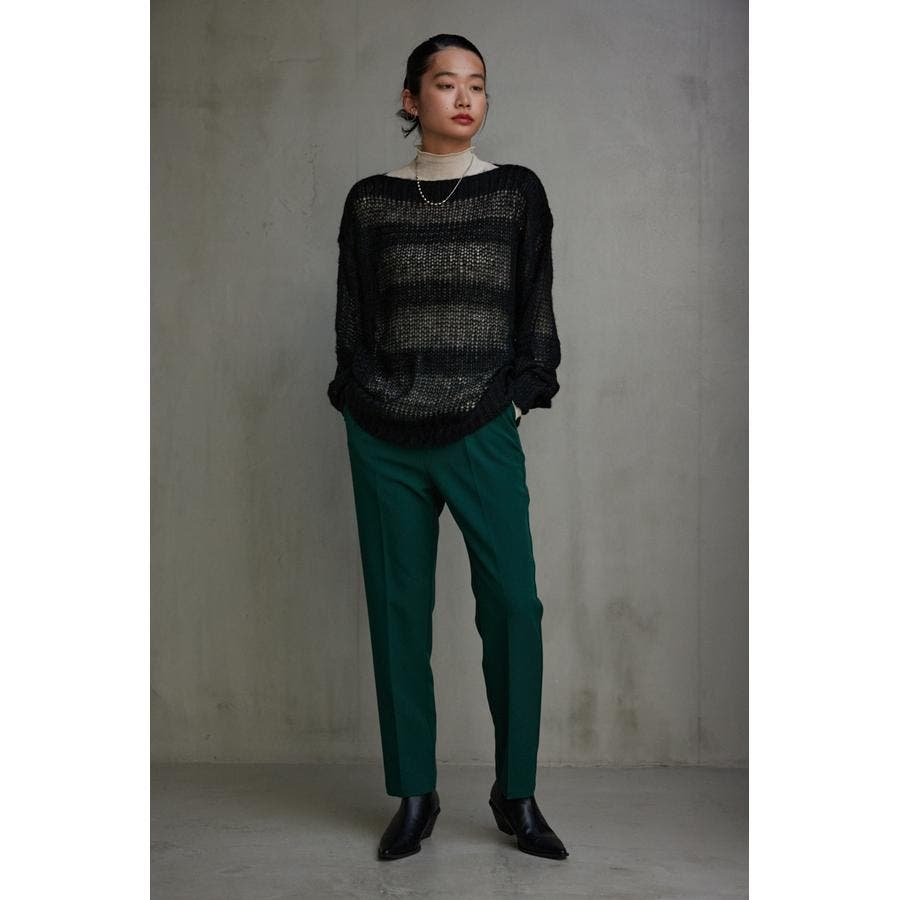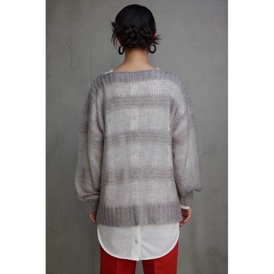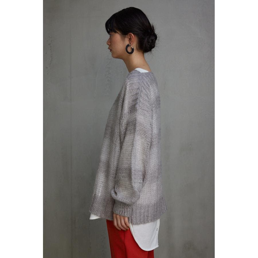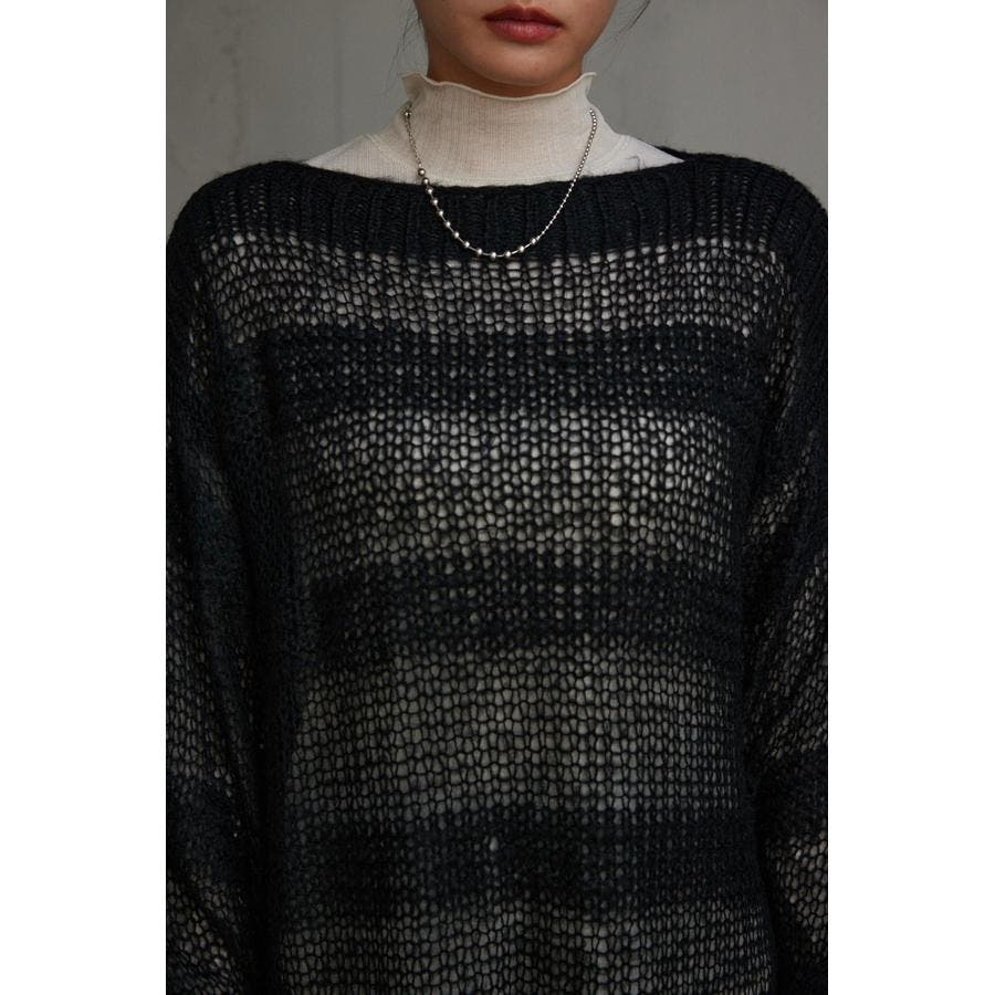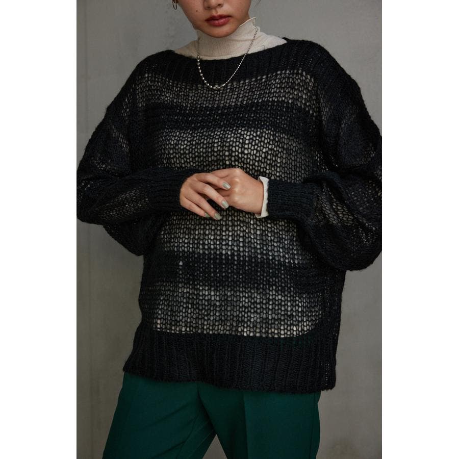 ・今期トレンドであるモヘヤライクで透け感の変化が出せるように、ボーダーの編地でデザインしています。