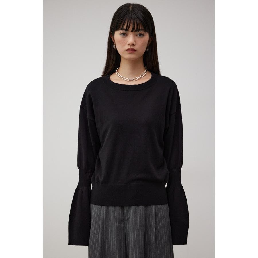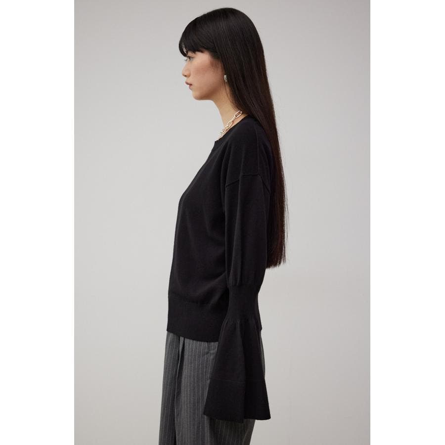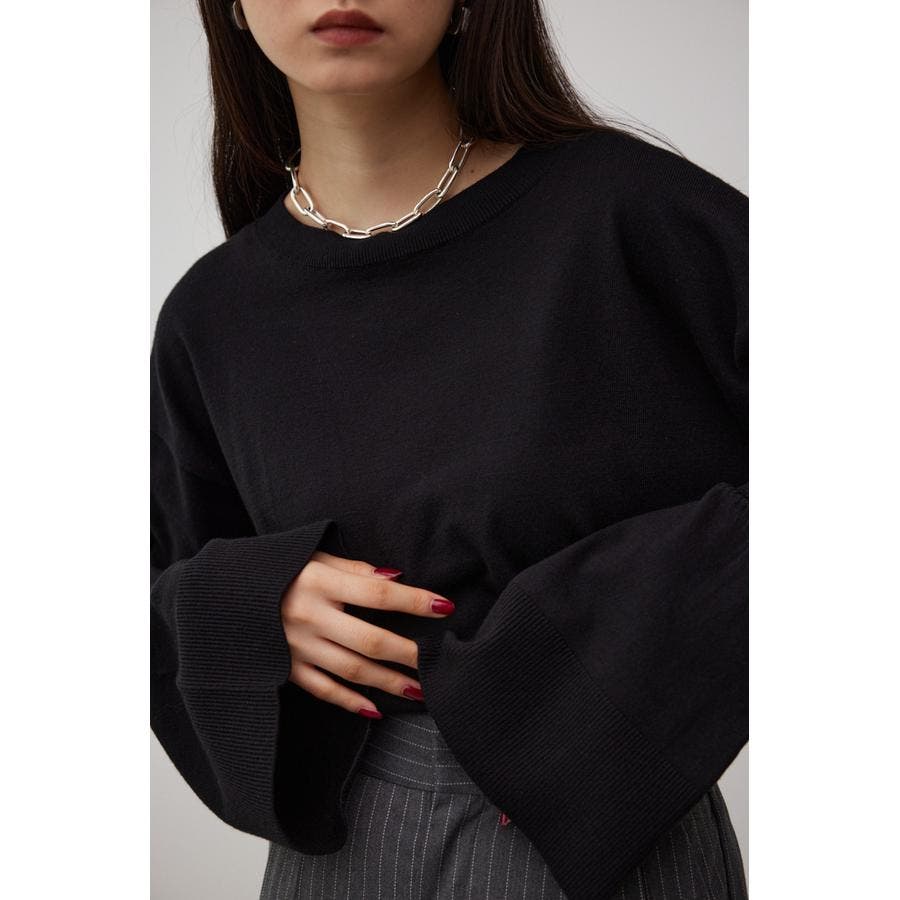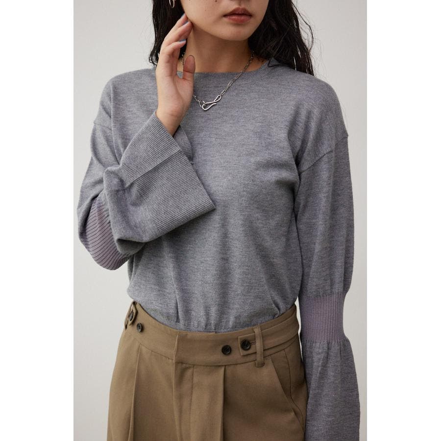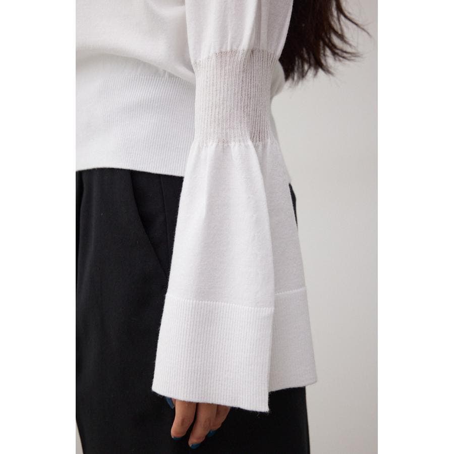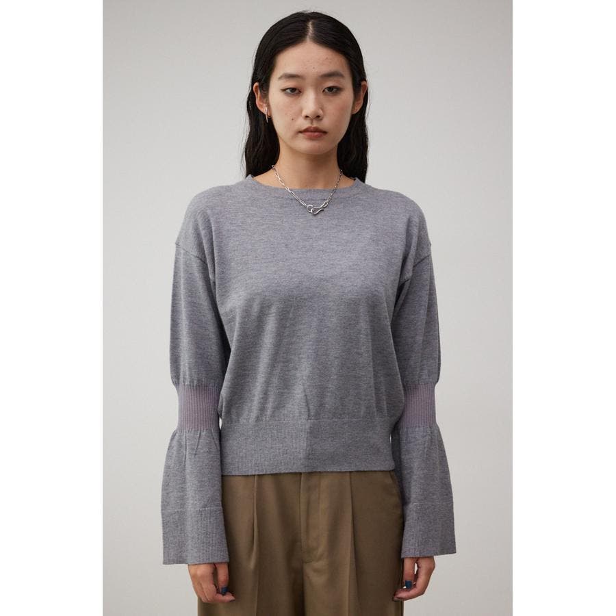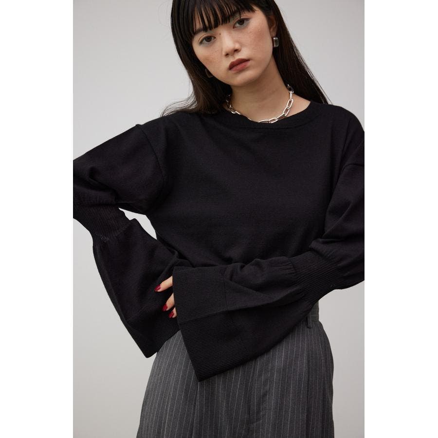・袖口の大ぶりなキャンディスリーブが甘く、華やかな雰囲気にしてくれるニットです。