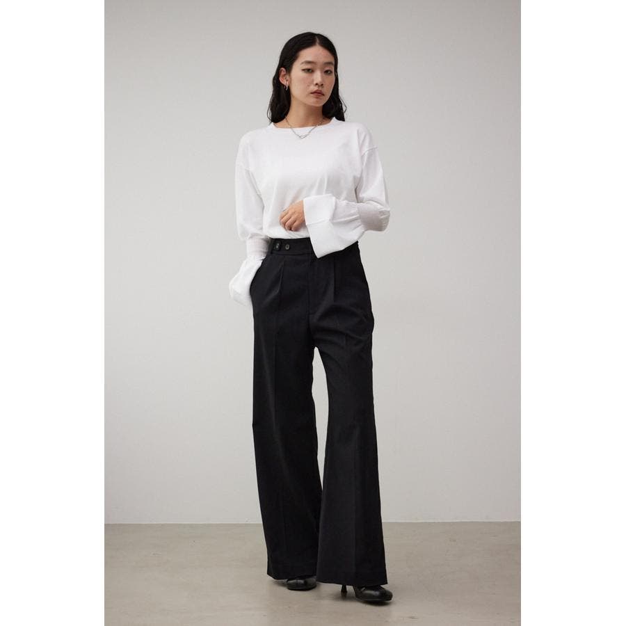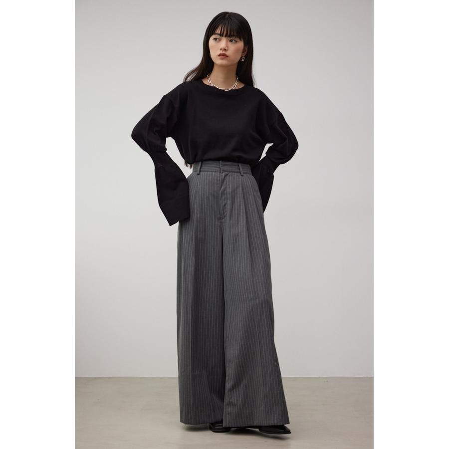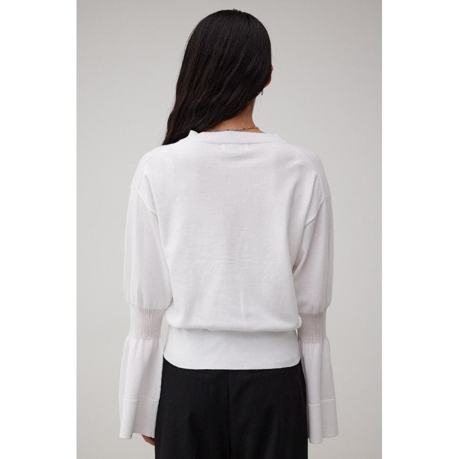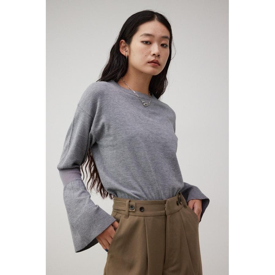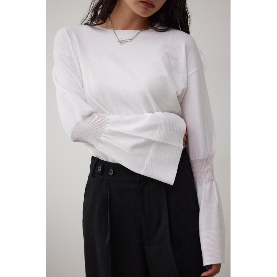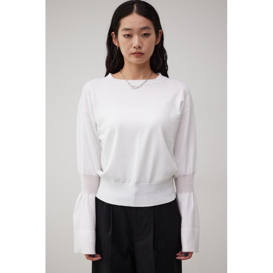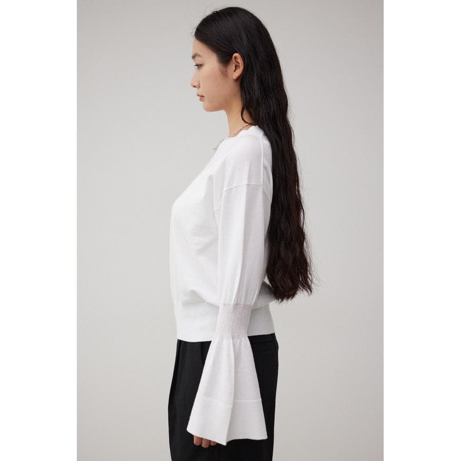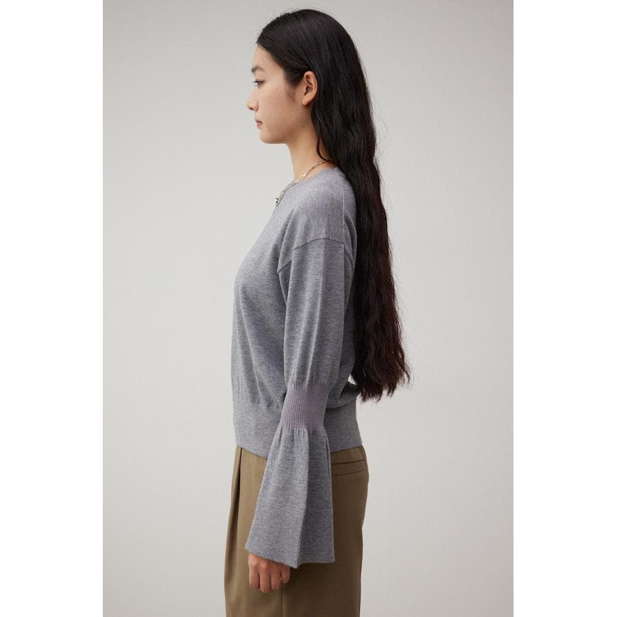 ・袖口の大ぶりなキャンディスリーブが甘く、華やかな雰囲気にしてくれるニットです。