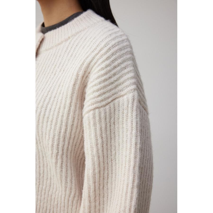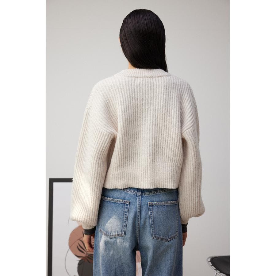 ・ 毛羽感と膨らみが特徴の糸を度詰めに編む事により、しっかりと厚みのある編地に仕上げています。