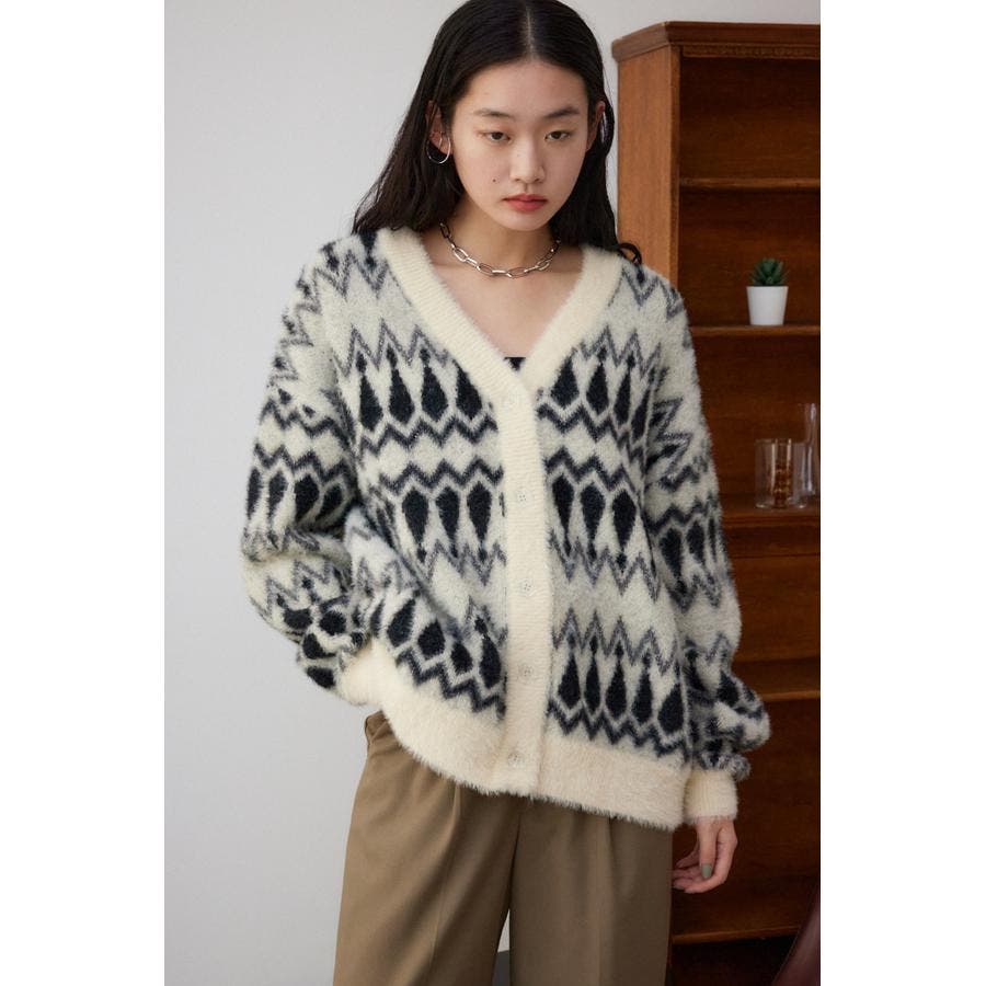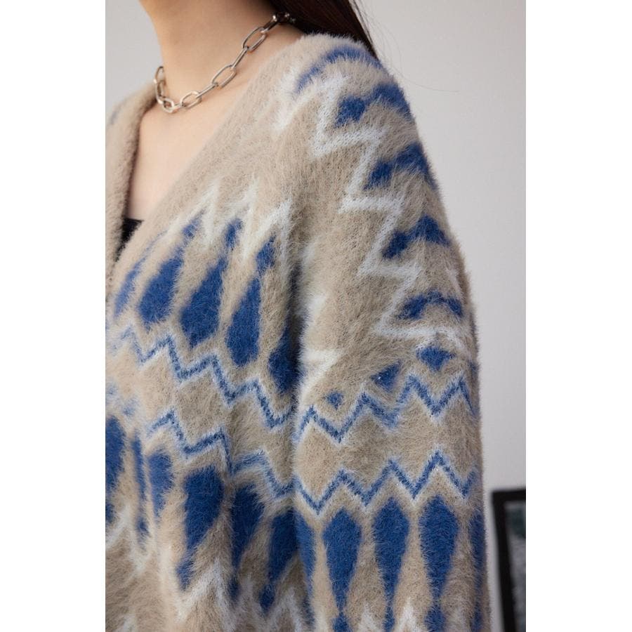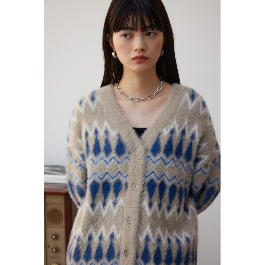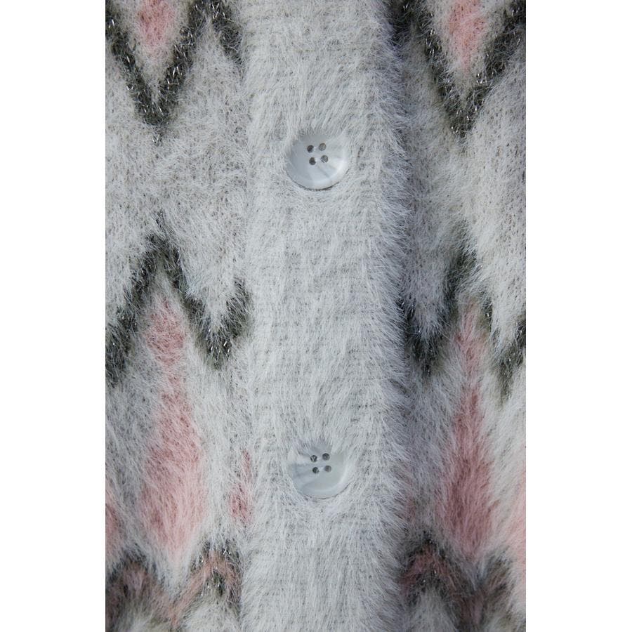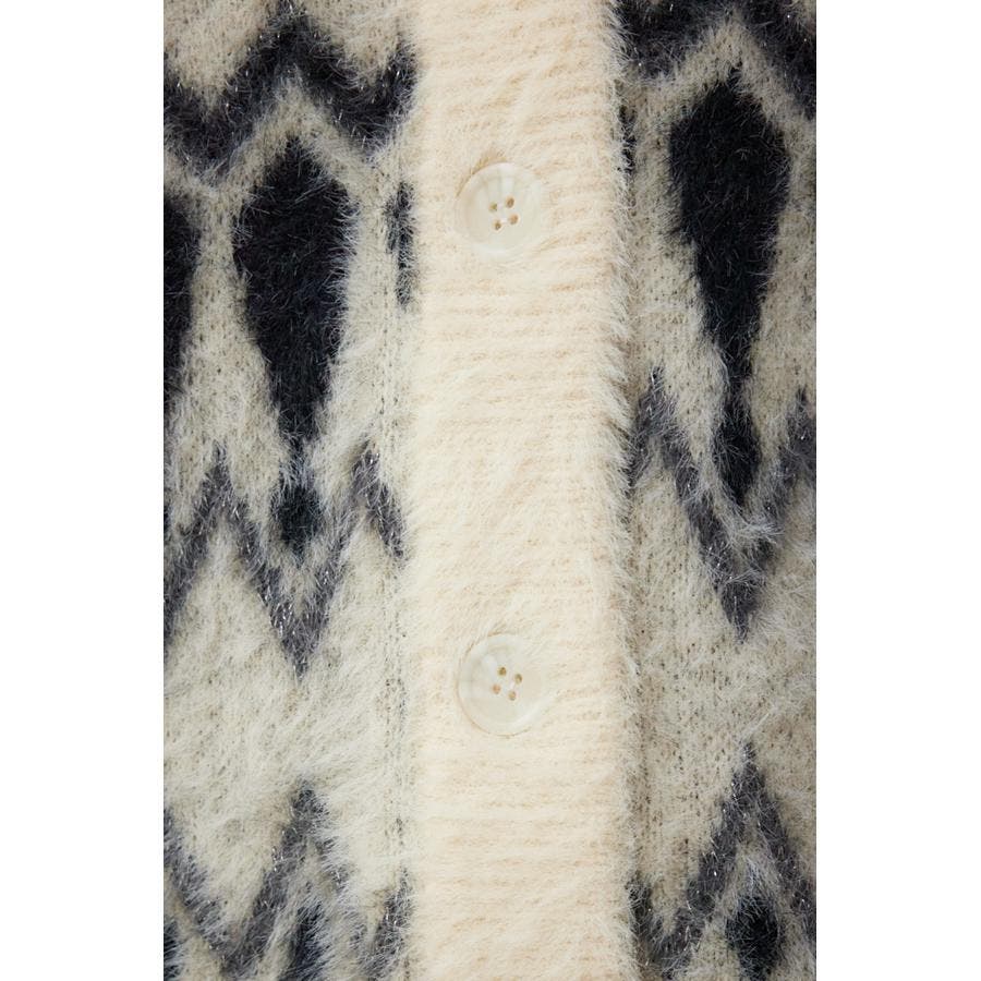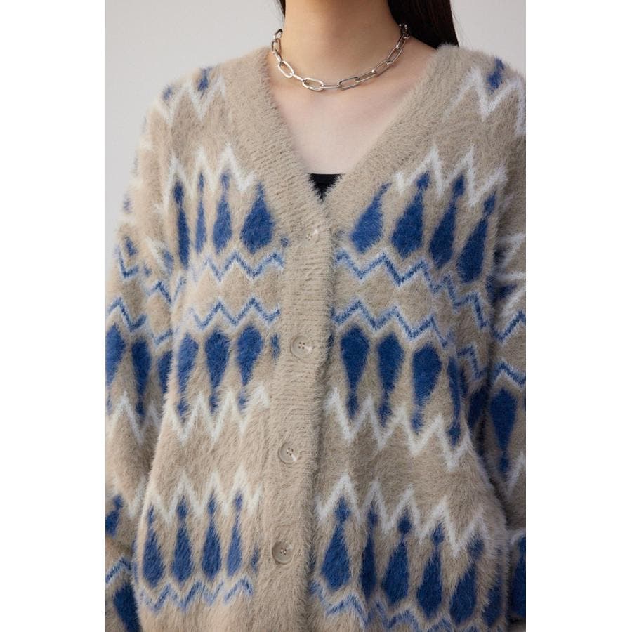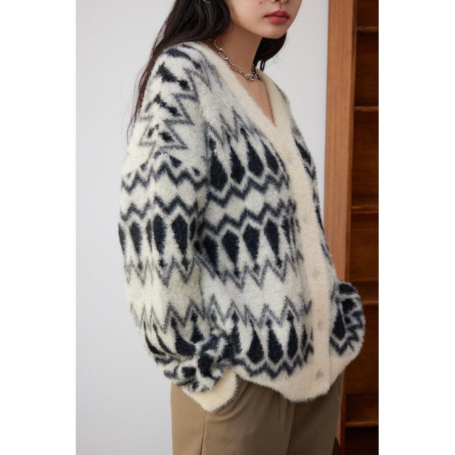 柄シャギーニットカーディガン