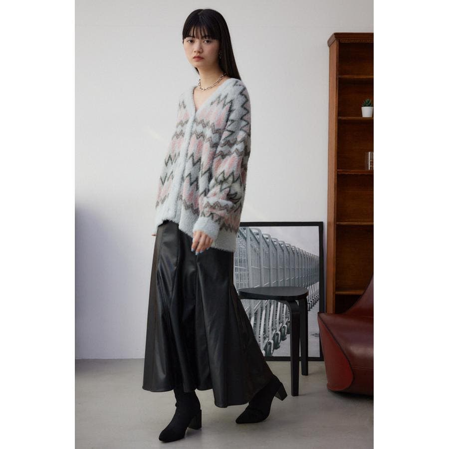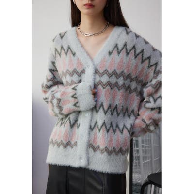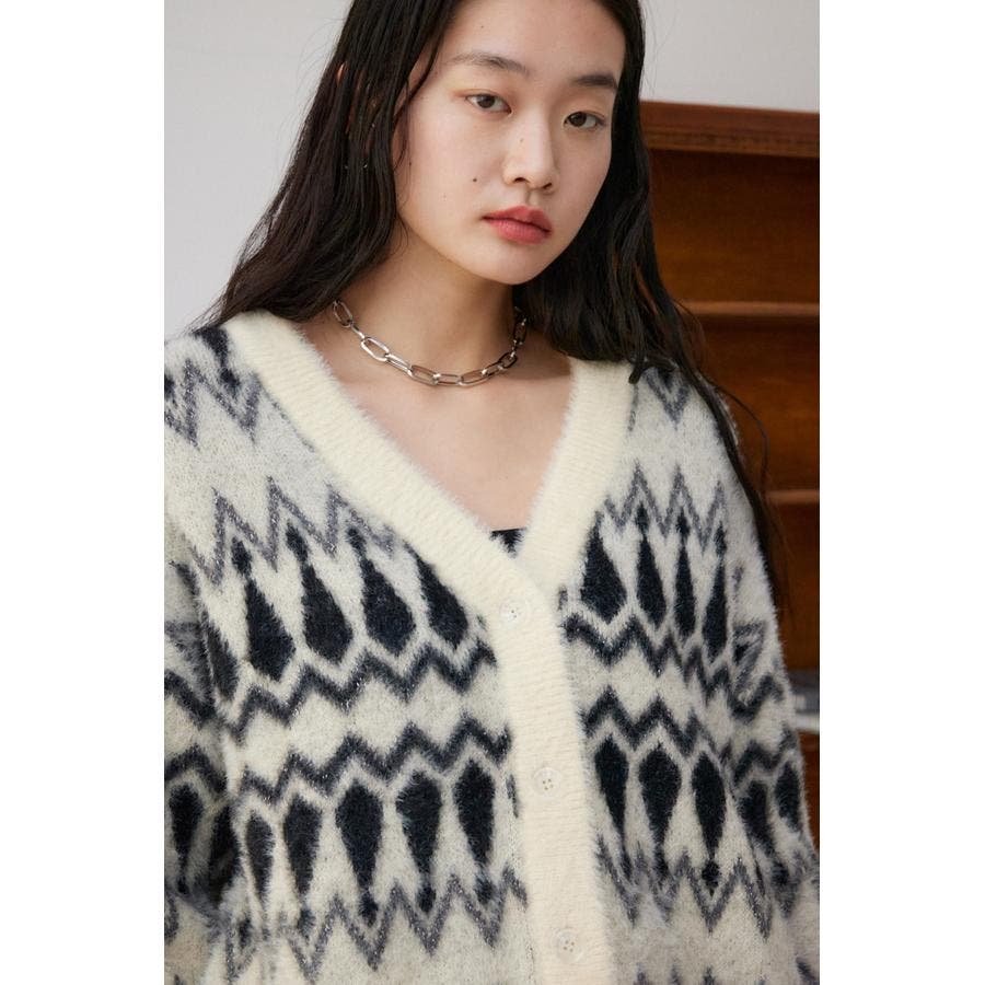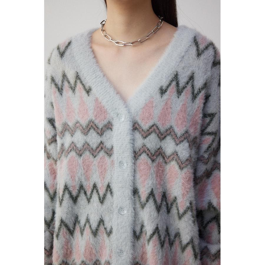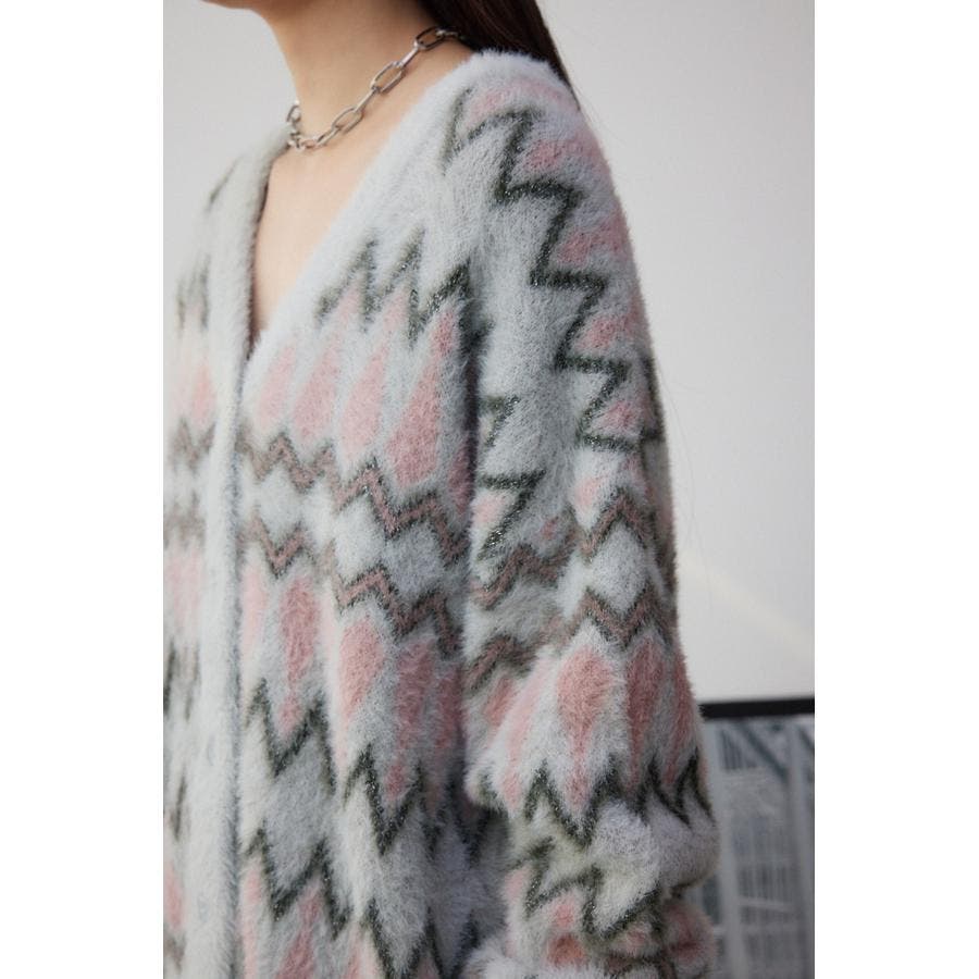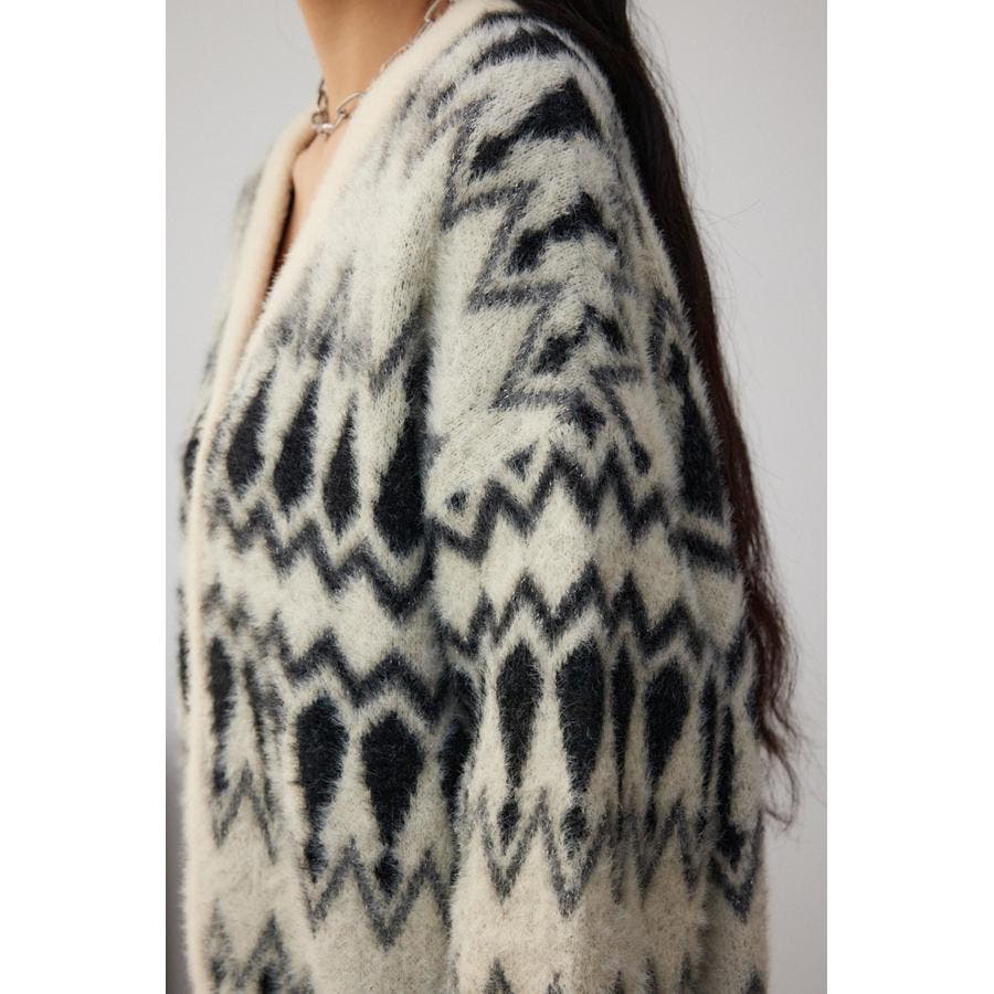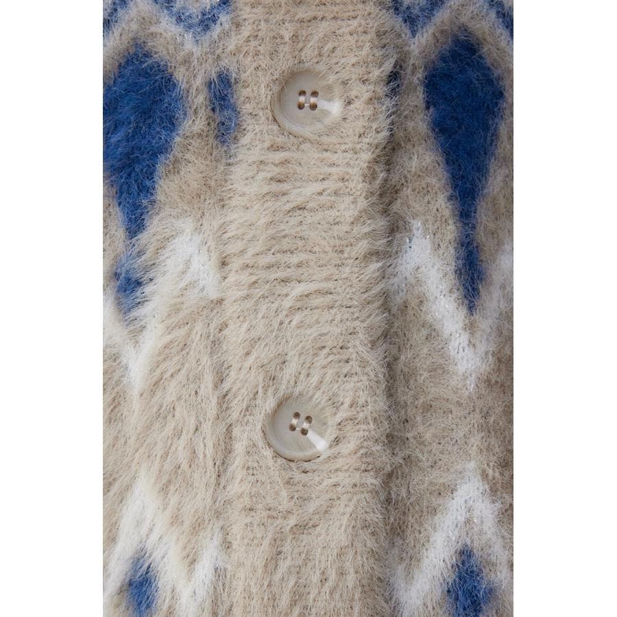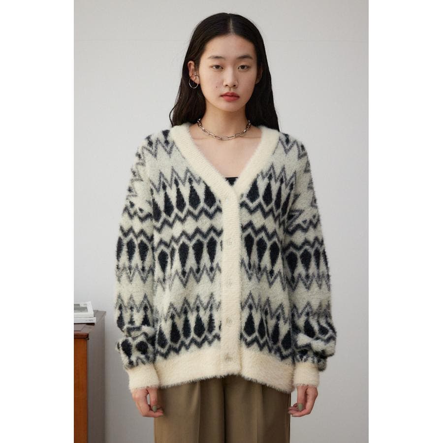 柄シャギーニットカーディガン