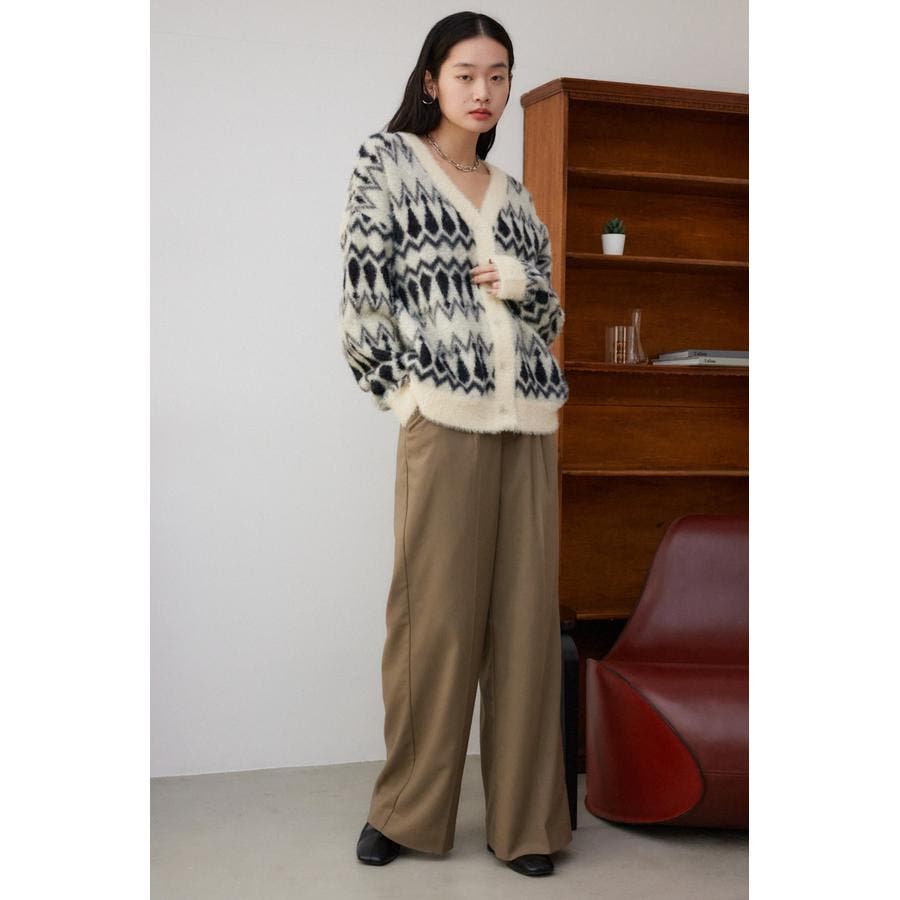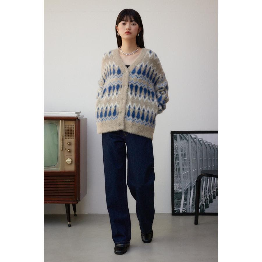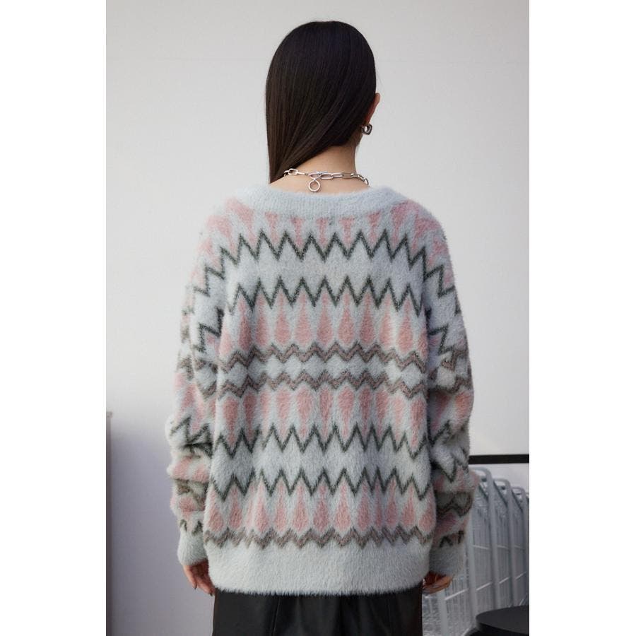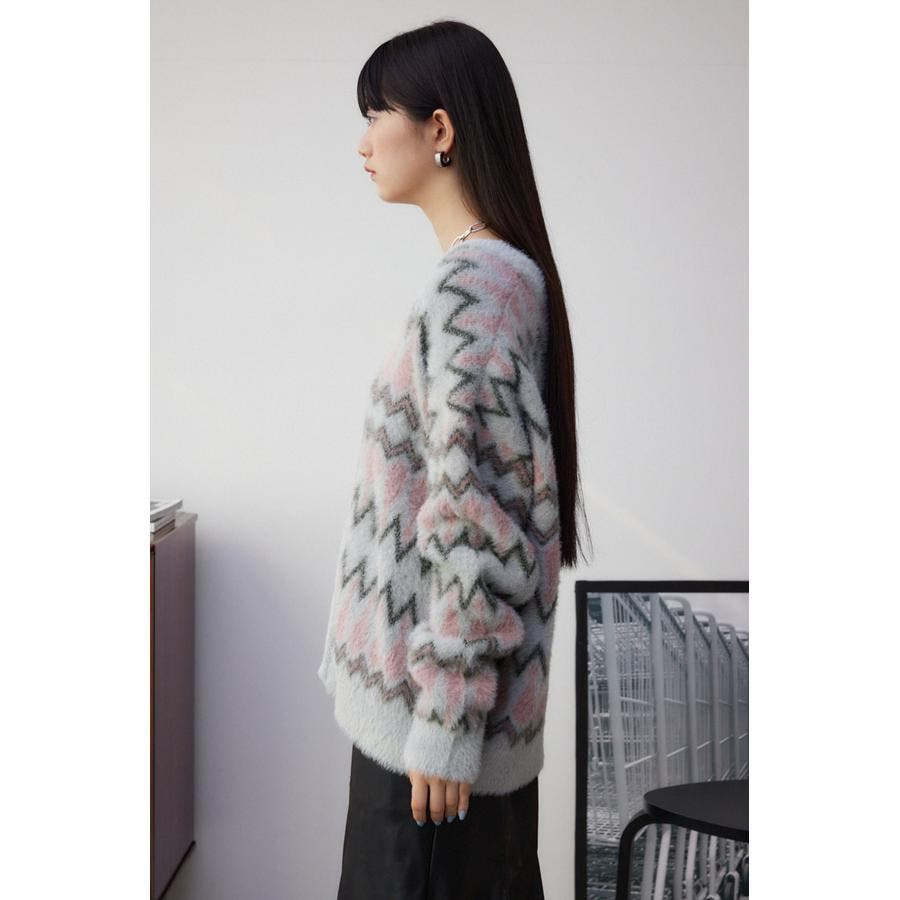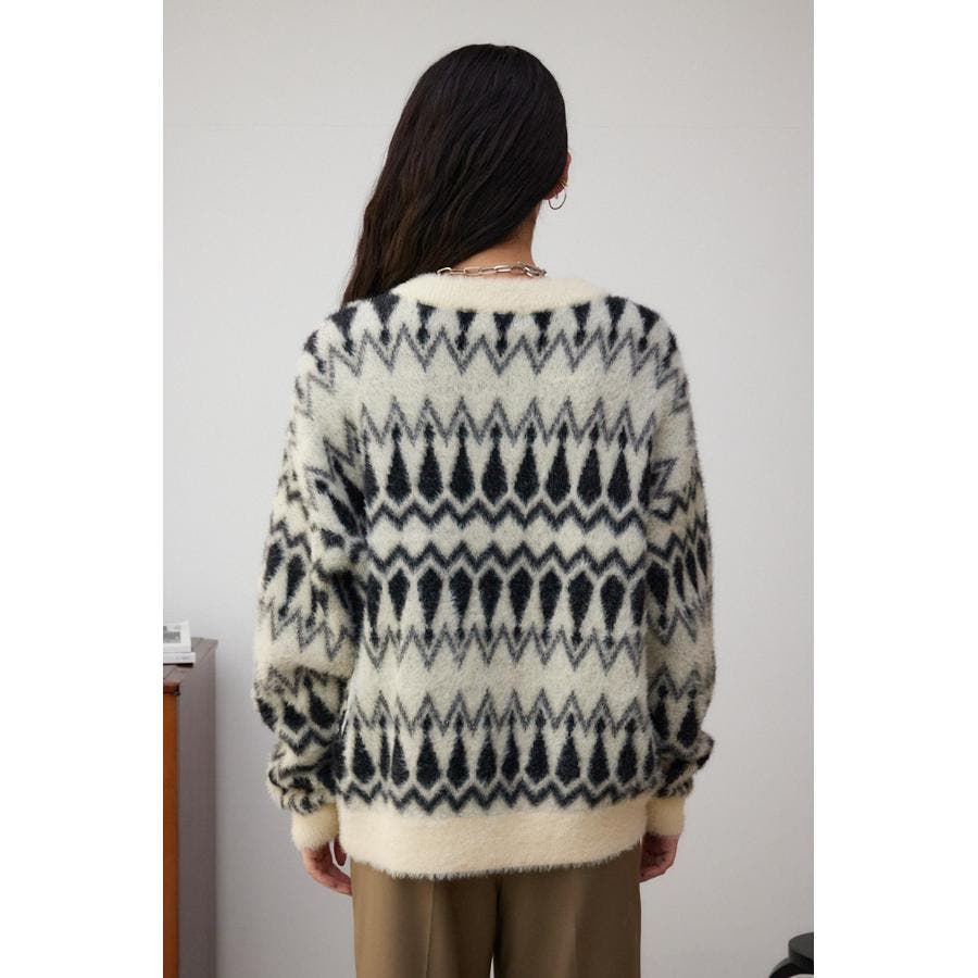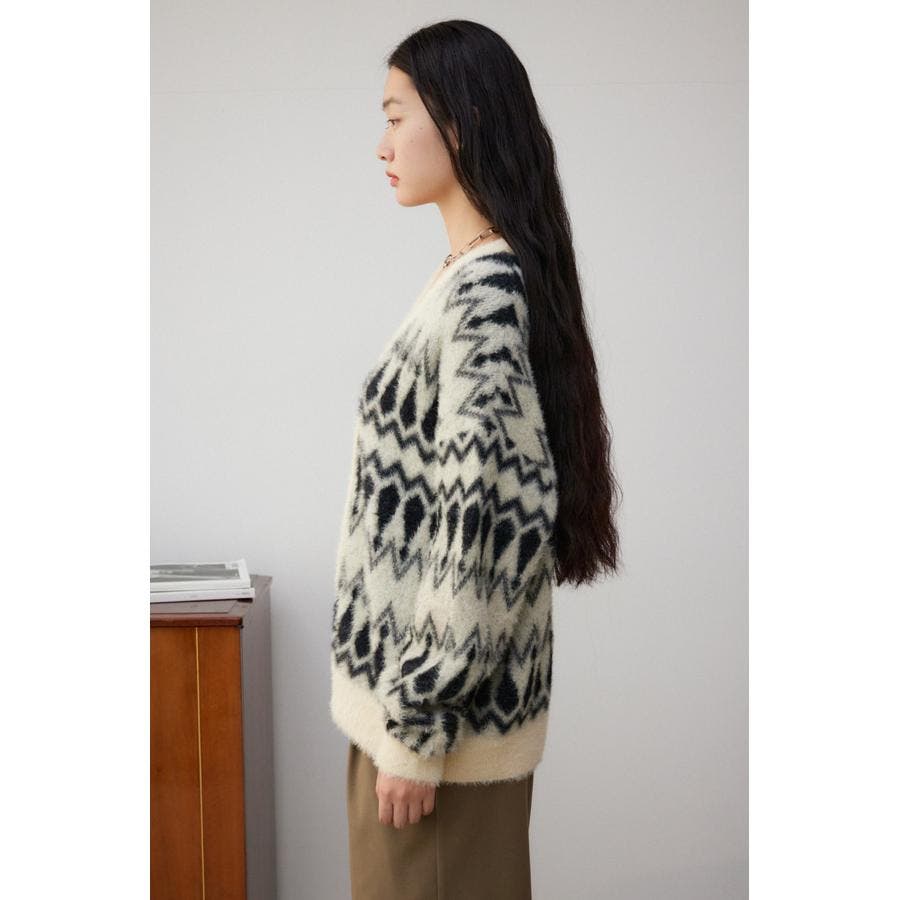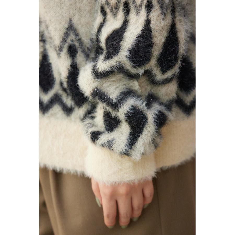 ・今季トレンドの毛足のあるシャギー素材で編み立てたオリジナルの柄に、ゆったりとしたオーバーサイズで抜け感のあるシルエットになっています。