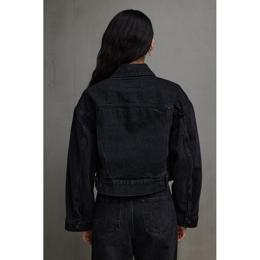 ・後ろ裾にタックを入れ、裾のサイズ感もタブで調整していただける為、コクーンシルエットでも着用していただける、モード且つ上品で洗練された一着です。