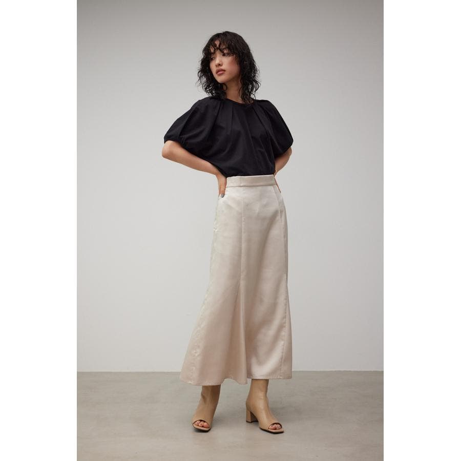 ・程よい光沢感が今年らしいサテンマーフレアスカートです。