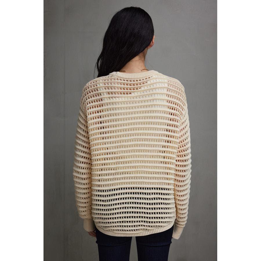 ・ 立体感のあるタック編みとメッシュ編みの組み合わせがポイントのニットです。