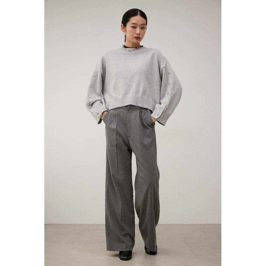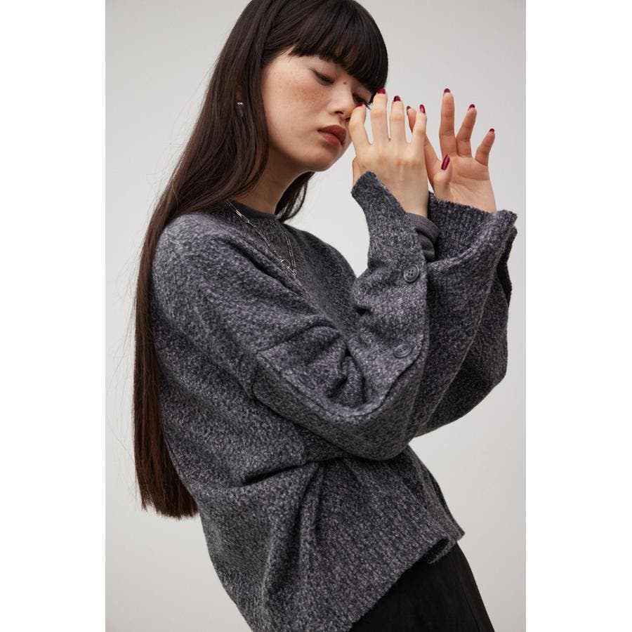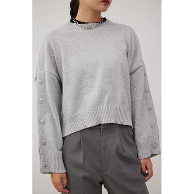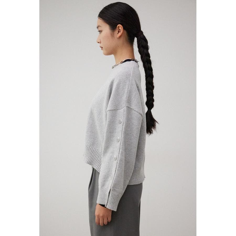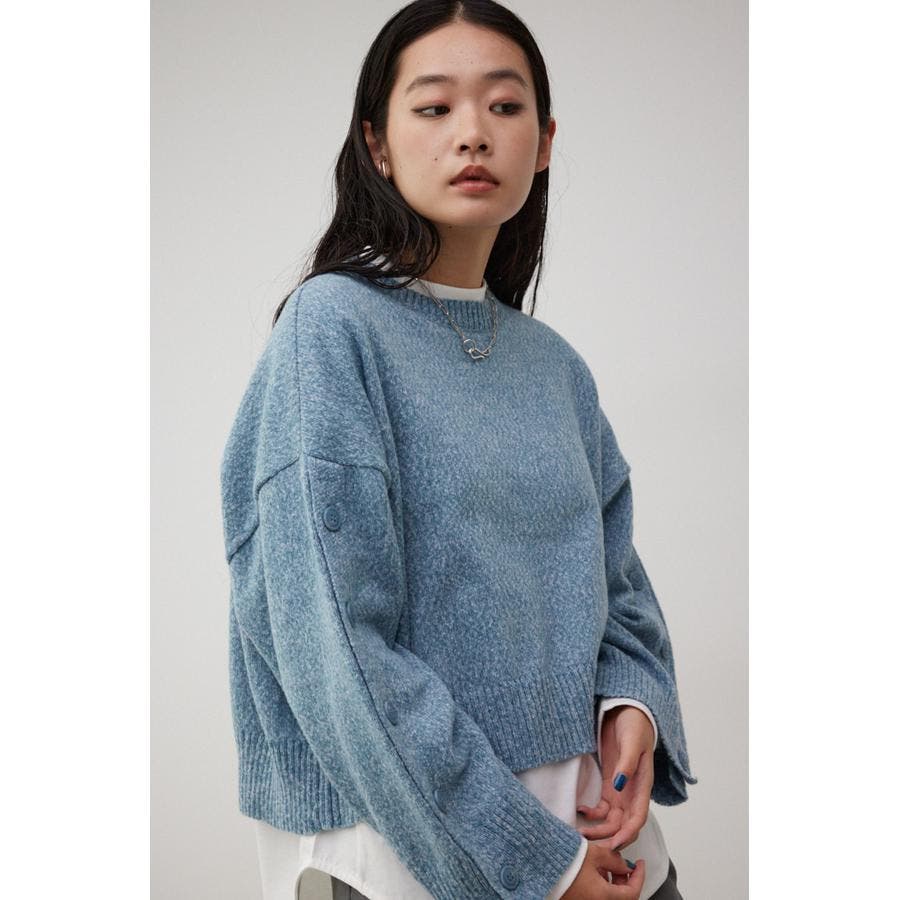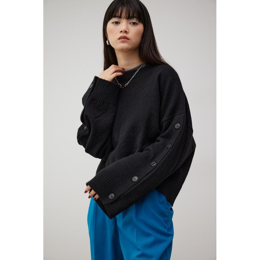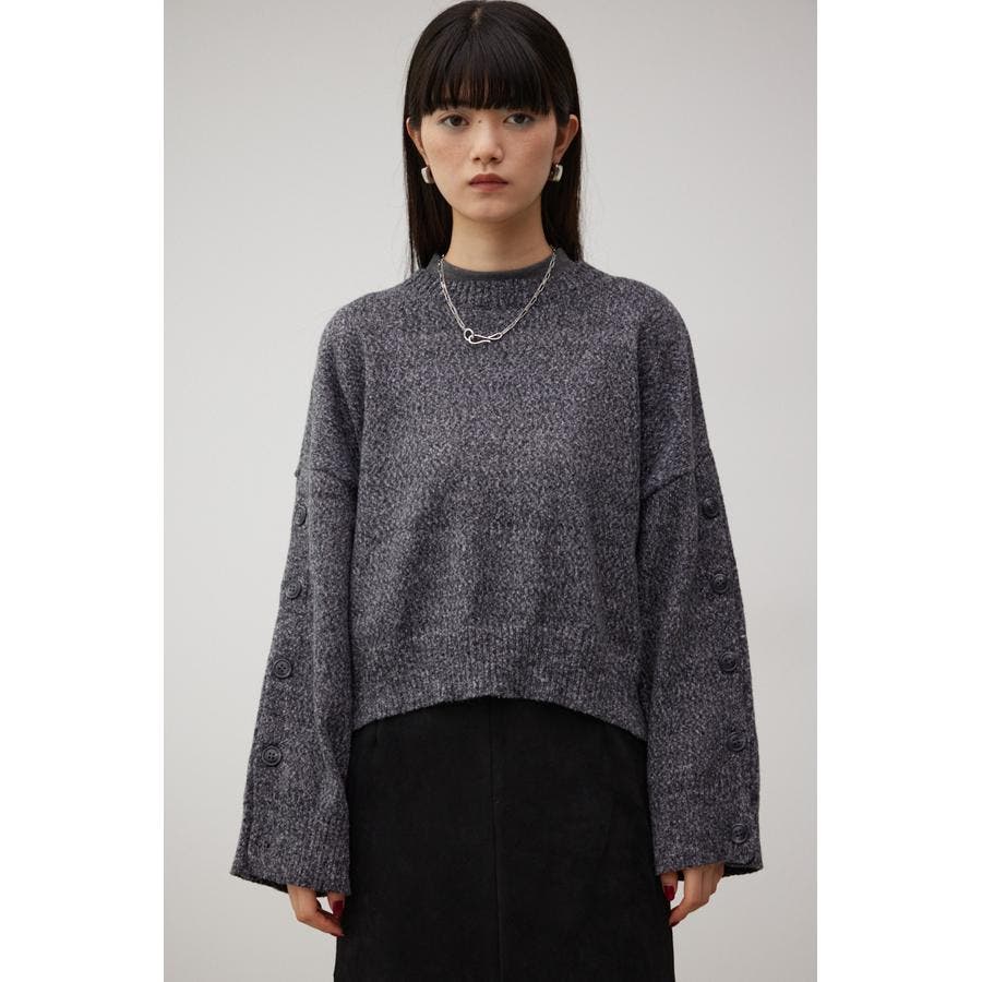 ボタンスリーブクロップドニットトップス