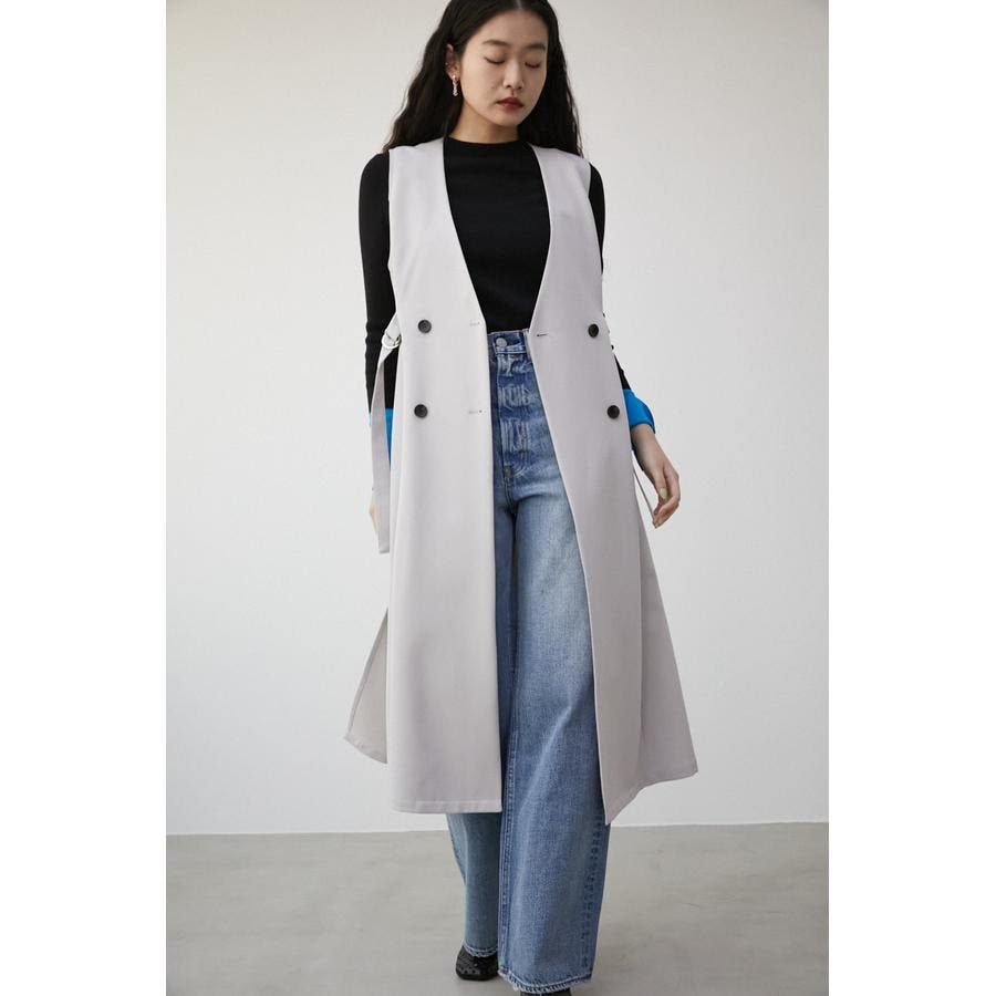 ・ウエストベルトを絞めて、ウエストマークすることで更にメリハリが効いたシルエットになるスタイルアップ効果抜群です。