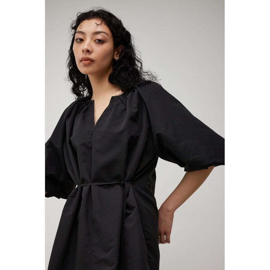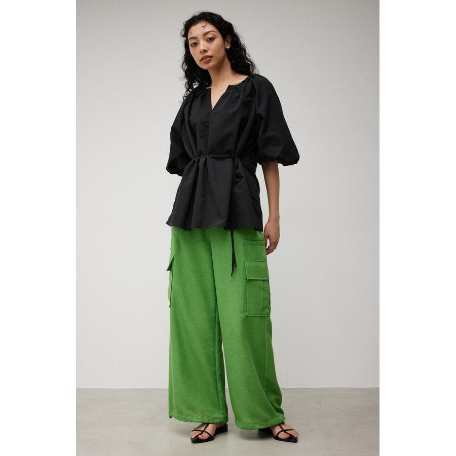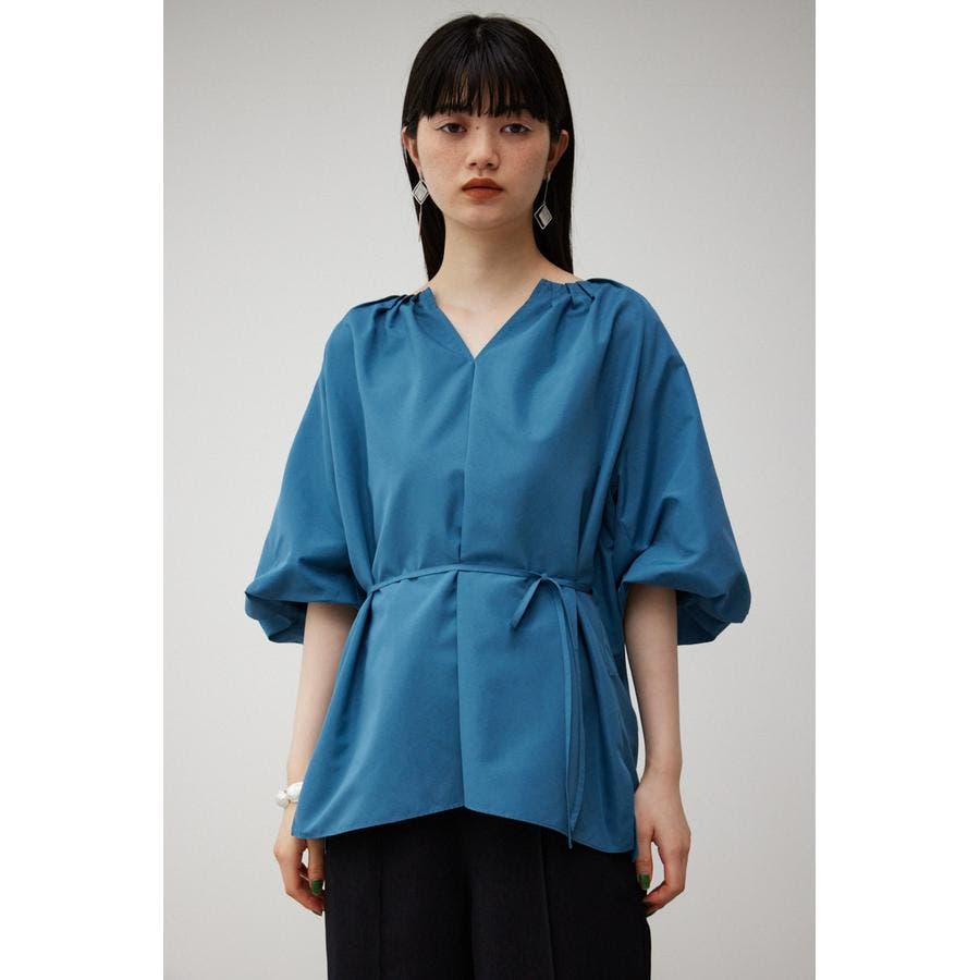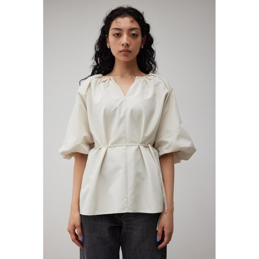 ・ネックのギャザーデザインとボリュームスリーブがトレンドライクなデザインです。