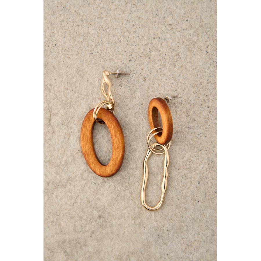 WOOD×METAL ASYMMETRY EARRINGS