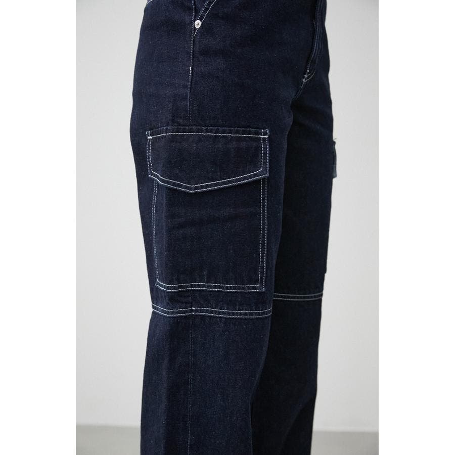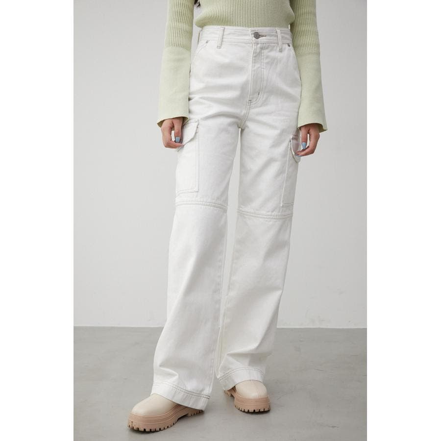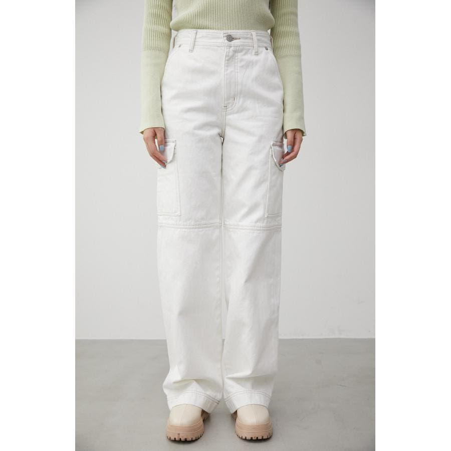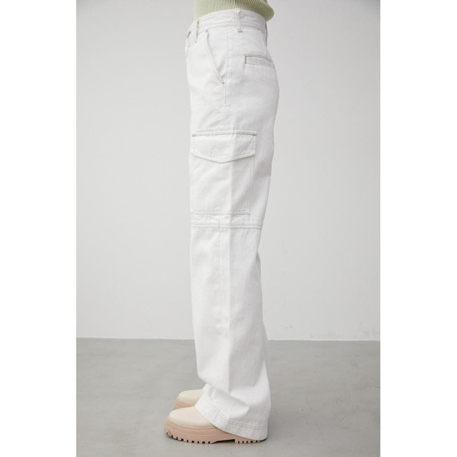 ・カジュアルなカーゴディテールがポイントのデニムですが、シルエットはストレート型に落とし込んでいるので、カジュアル過ぎず女性らしく穿いていただけます。