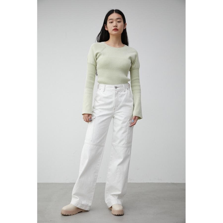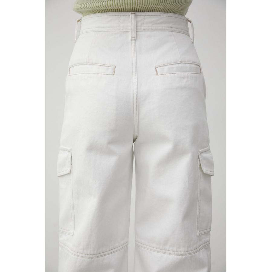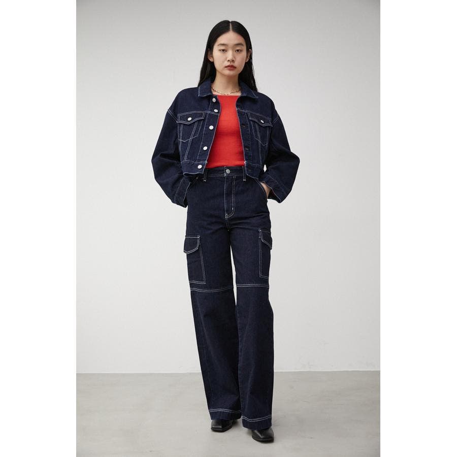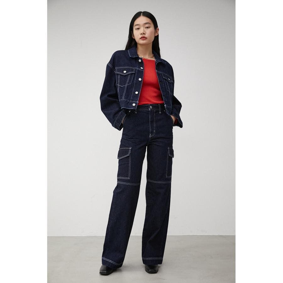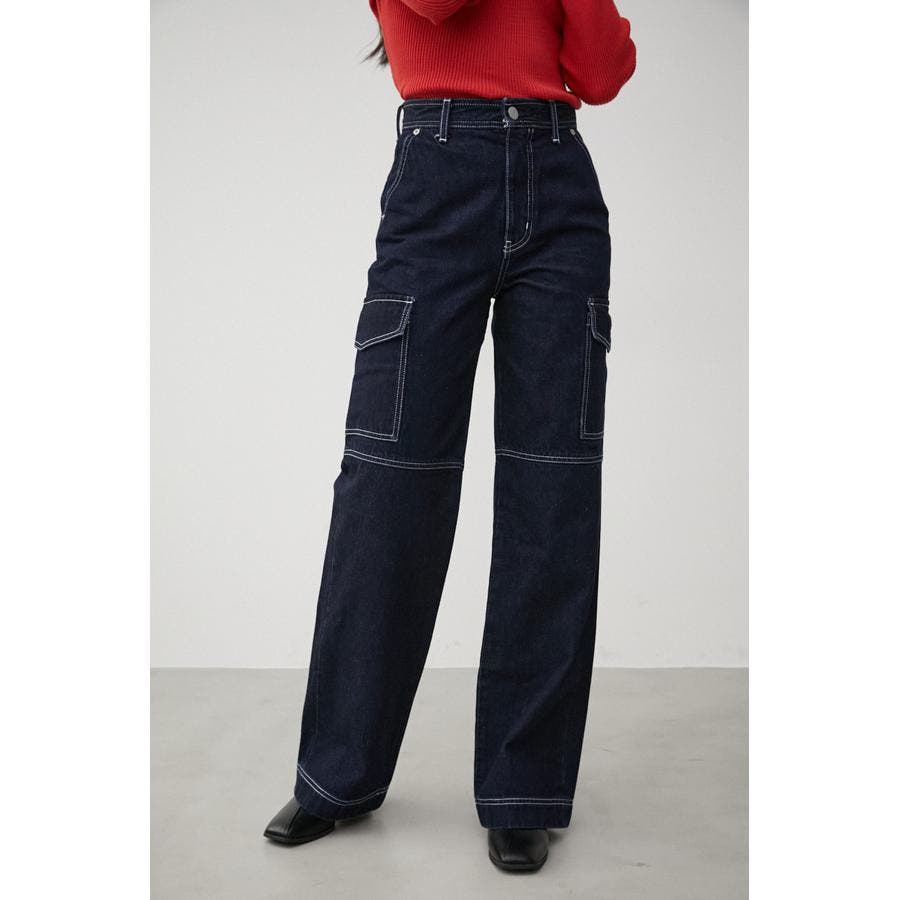 ・カジュアルなカーゴディテールがポイントのデニムですが、シルエットはストレート型に落とし込んでいるので、カジュアル過ぎず女性らしく穿いていただけます。