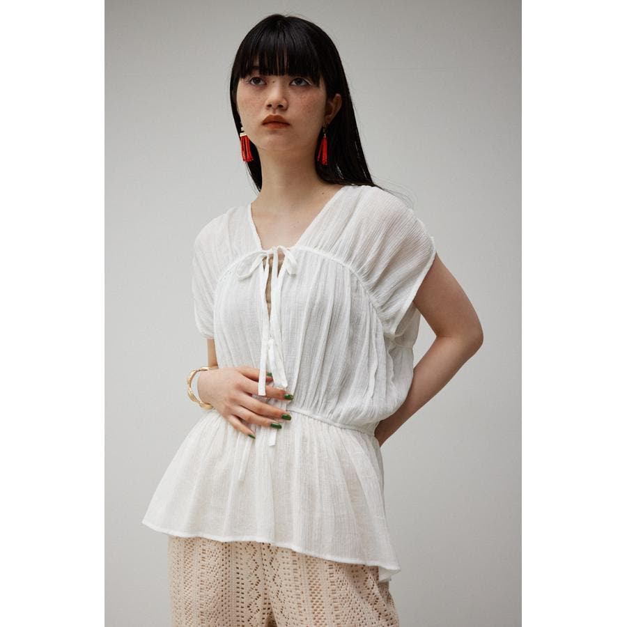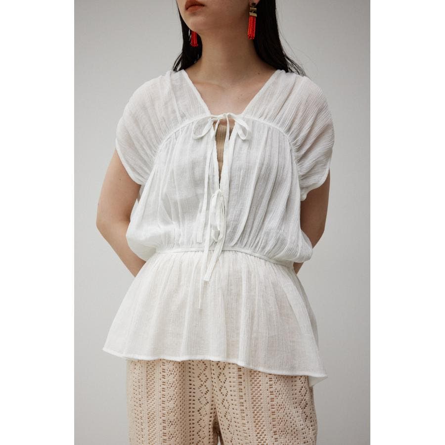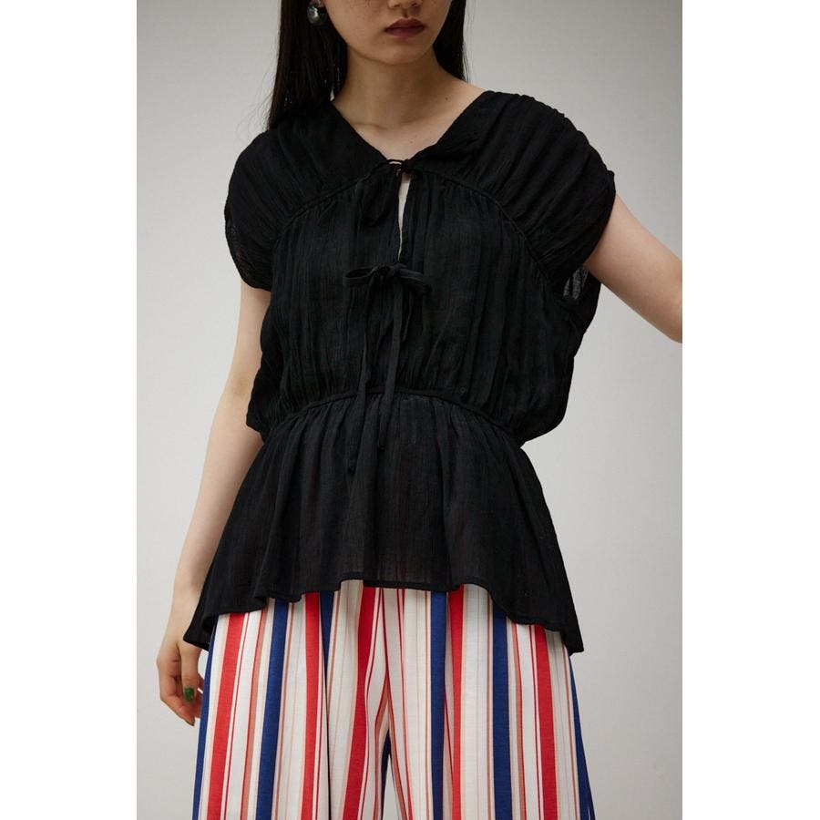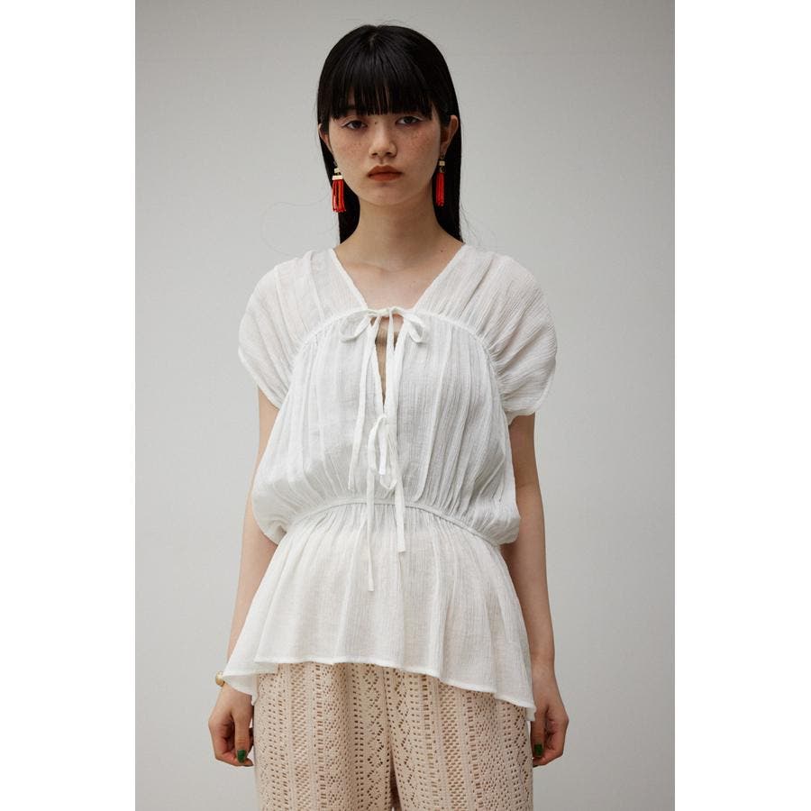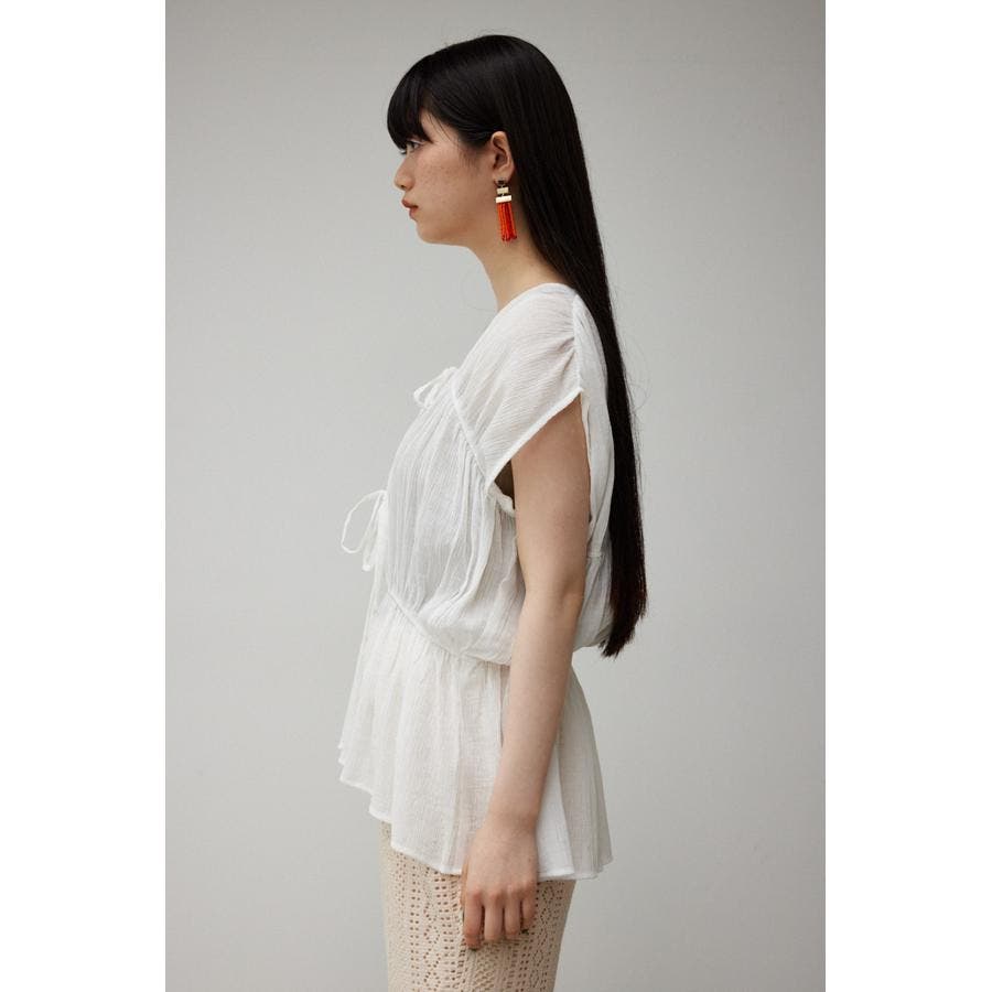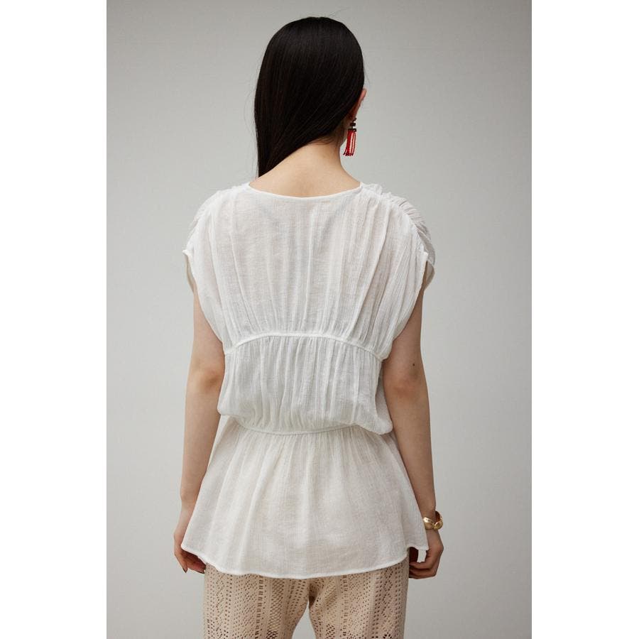 ・ トレンドのギャザーたっぷりの夏らしいペプラムブラウスです。