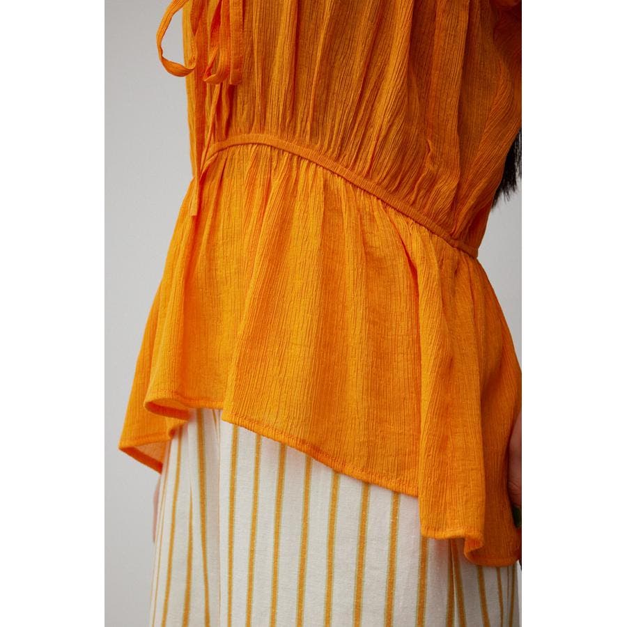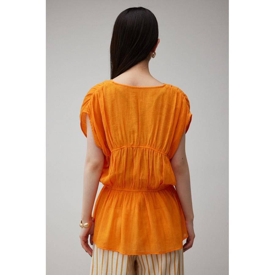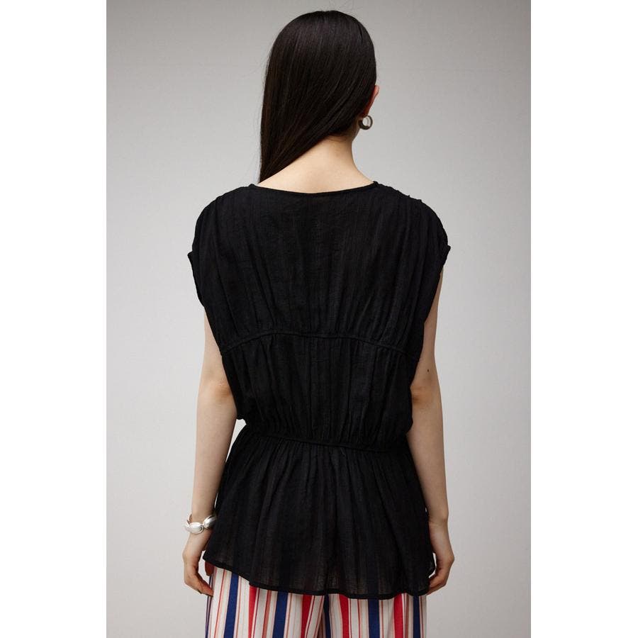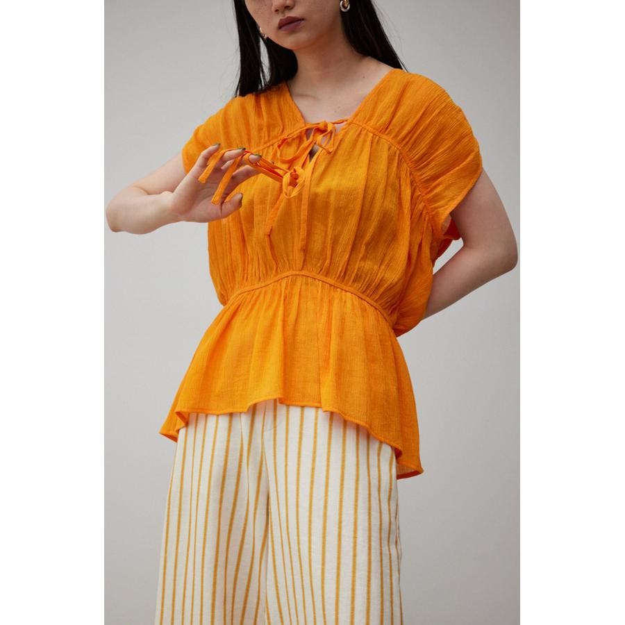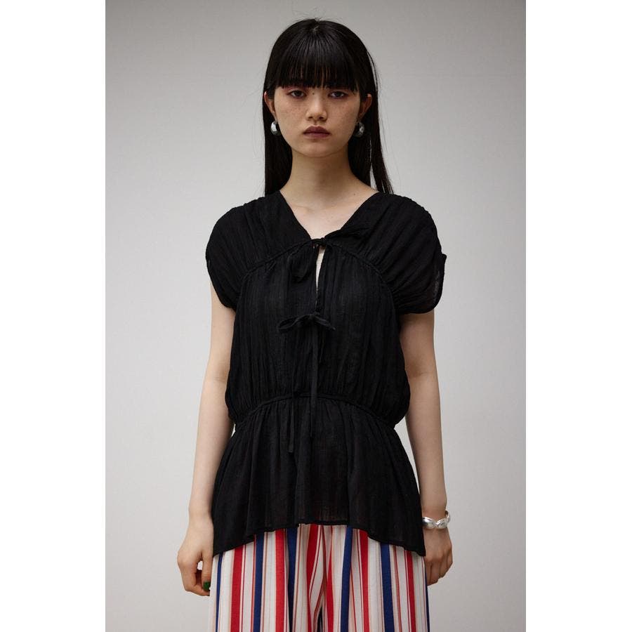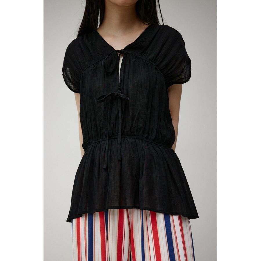 ・ トレンドのギャザーたっぷりの夏らしいペプラムブラウスです。
