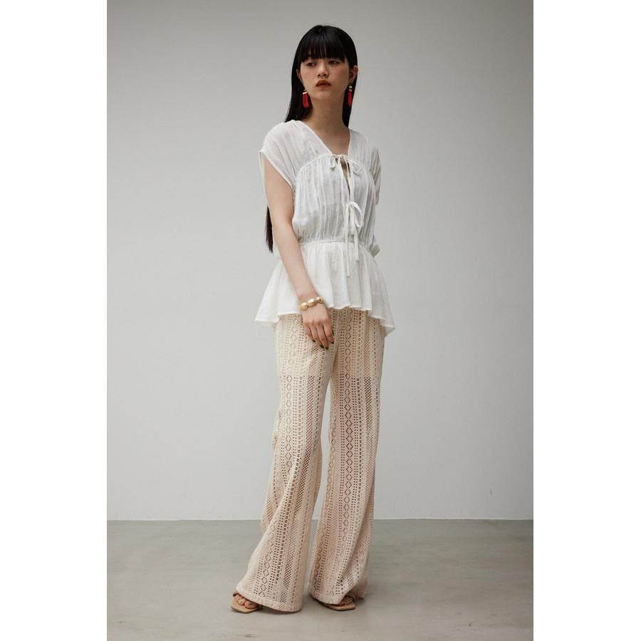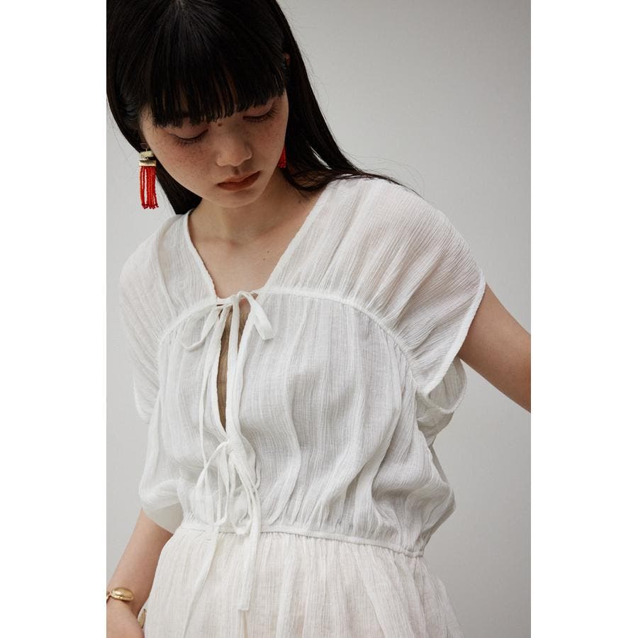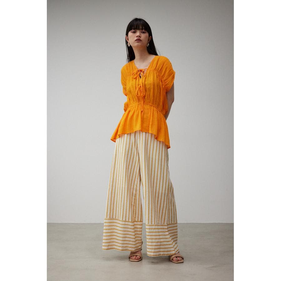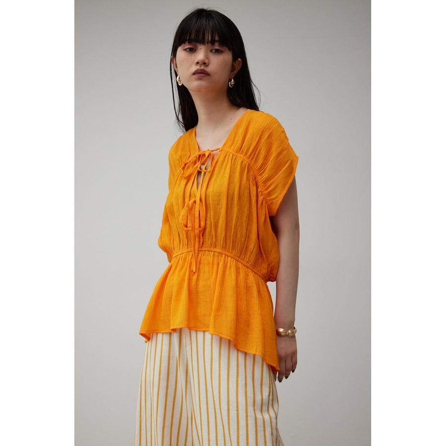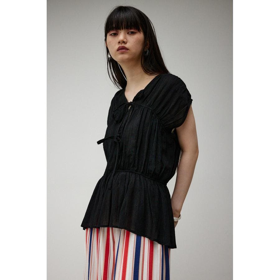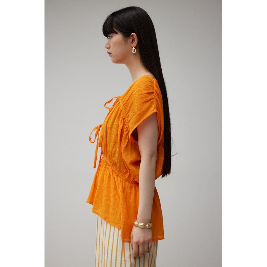 ・ トレンドのギャザーたっぷりの夏らしいペプラムブラウスです。