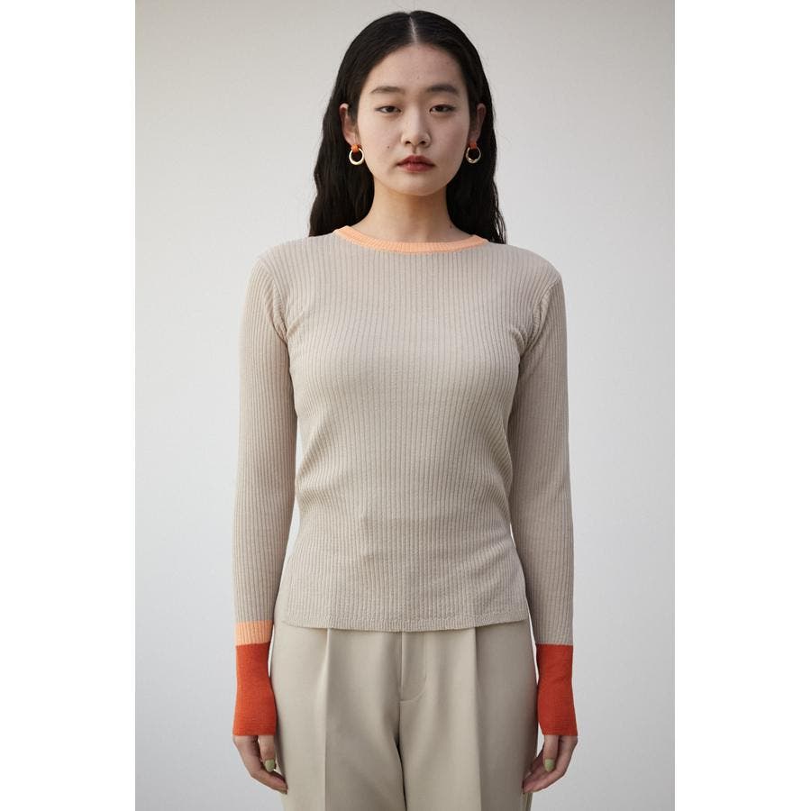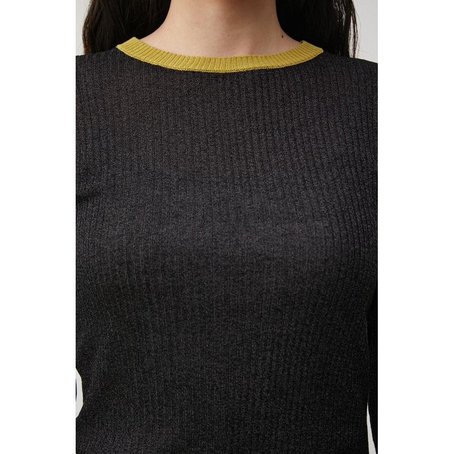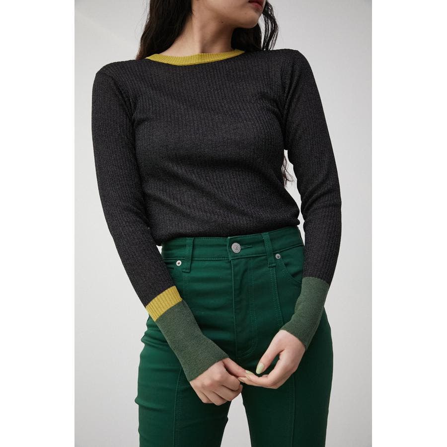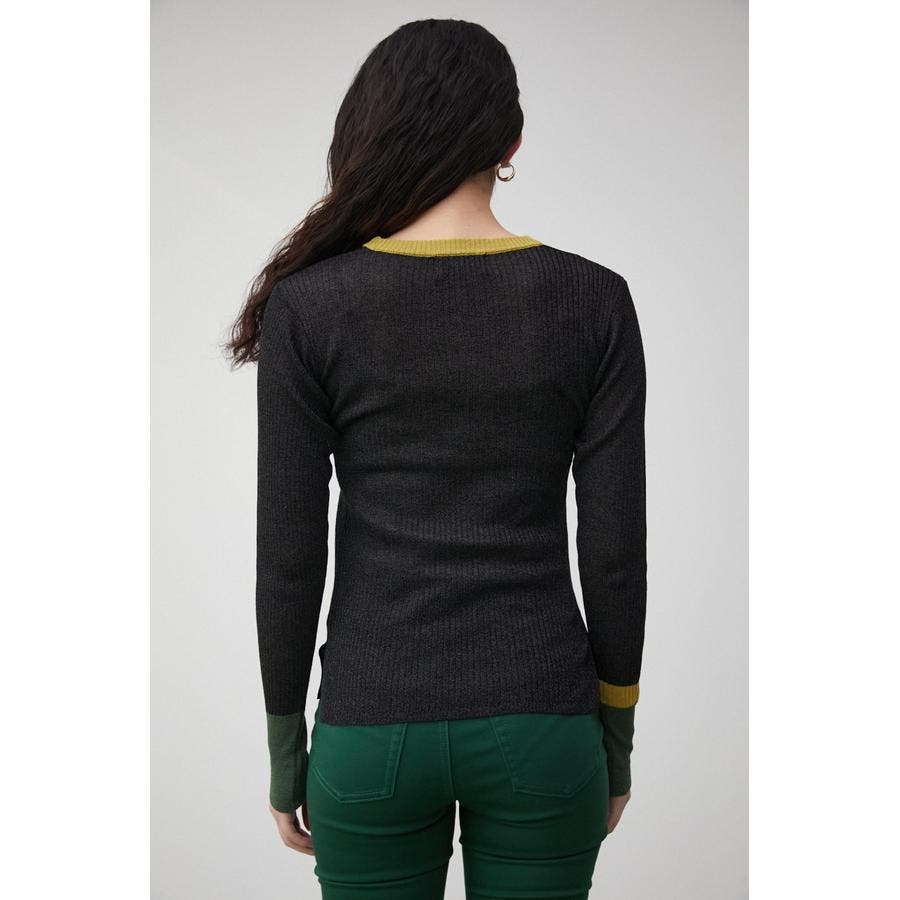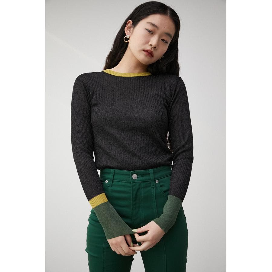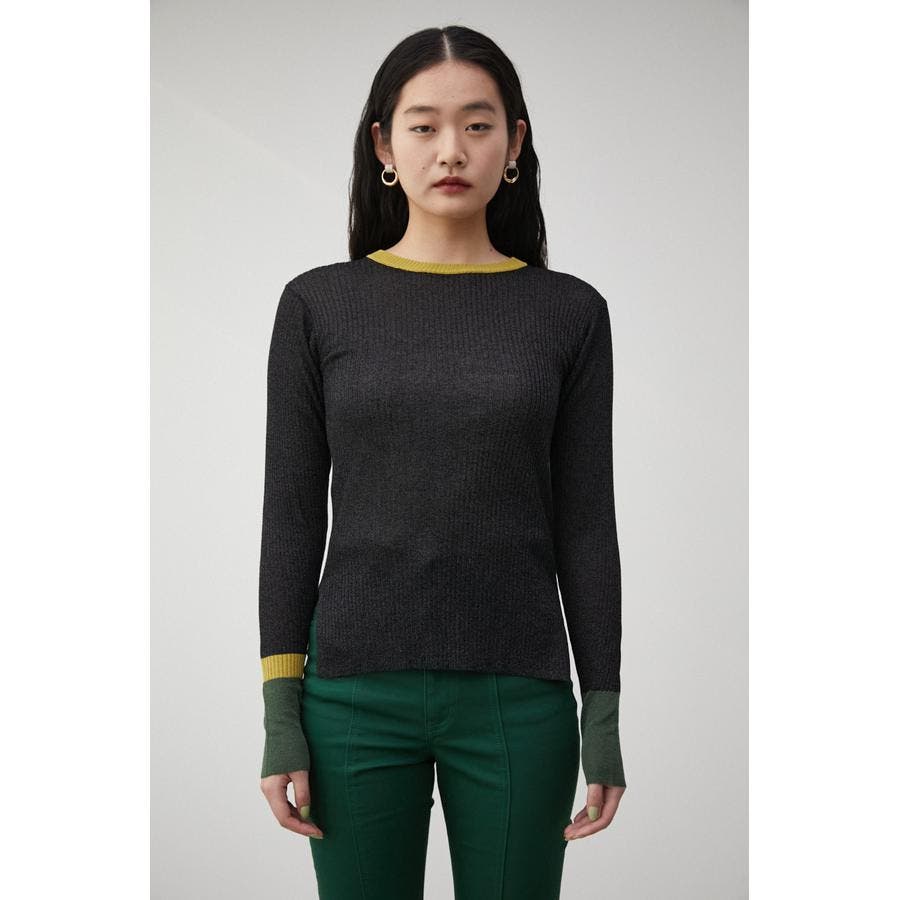 ・程よいラメ感と配色使いが特徴のシアーリブニットです。